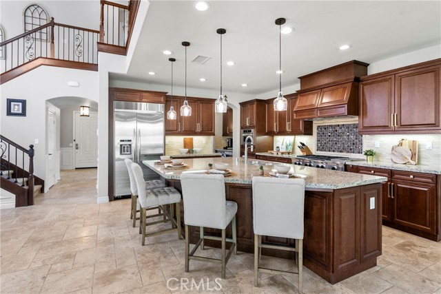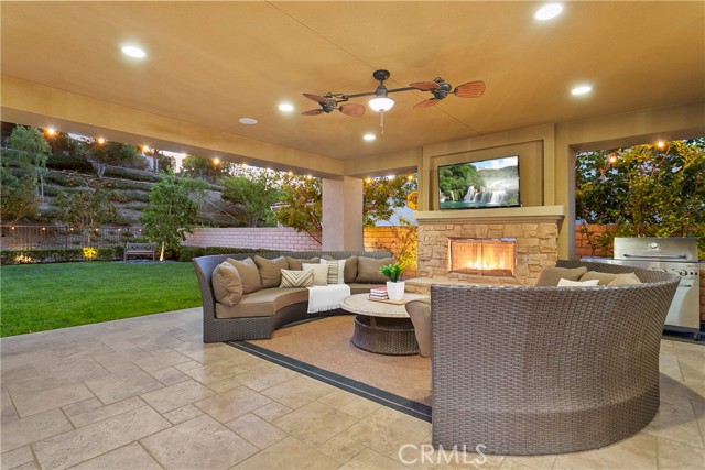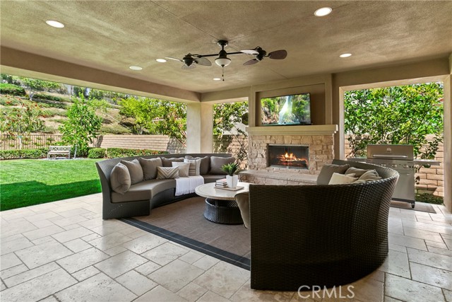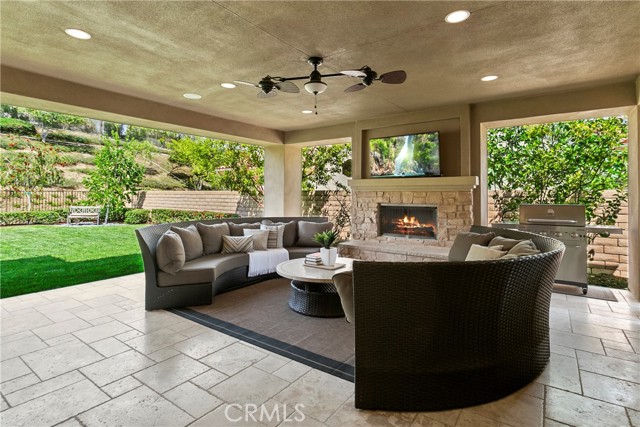 Welcome to an extraordinary residence nestled within the prestigious gated community of Whispering Hills, where unparalleled luxury meets refined sophistication. This stunning home is energy efficient and boasts 5 bedrooms and 4.5 bathrooms, along with a formal office, loft area, and super bonus family room. Enjoy seamless indoor/outdoor living with magnificent bi-folding doors that open to a spacious California Room, complete with fireplace, ideal for entertaining guests. The expansive backyard, one of the largest & most private in South Orange County, presents an exceptional opportunity to design your dream pool and outdoor oasis. As you step inside, you're greeted by an impressive foyer featuring exquisite French Versailles tumbled travertine floors, which gracefully guide you through the open and airy layout. Upgraded wood cabinetry and premium finishes throughout the home exude understated elegance. The expansive "super family room" is meticulously crafted for entertainment, providing ample space for a pool table, play room, or a second office. The thoughtful floor plan also includes a formal dining room, a private formal office or living room, while the gourmet kitchen seamlessly connects to the family room and opens to the outdoor California room; highlighted by soaring ceilings that enhance the sense of space. A convenient bedroom & bathroom on the main level, plus an elegant powder bath for guests. On the second floor, you'll find a luxurious primary suite featuring a spa-like bathroom, as well as walk-in closet. Three additional spacious bedrooms, two bathrooms, a versatile loft area with built-in desk, and a spacious laundry room with sink complete this exceptional home. This home features owned solar panels and a spacious three-car tandem garage & complemented by a long driveway. The spectacular backyard is expansive and provides a blank canvas for you to create your own outdoor oasis. The side yard is adorned with a variety of fruit & avocado trees, making it a delightful addition to your personal garden. This remarkable property is strategically located near esteemed educational institutions such as San Juan Hills High School, St. Margaret's, and JSerra. The community offers exclusive amenities, including tennis courts, outdoor BBQ and picnic area, playgrounds, and serene walking trails. Don t miss this opportunity, it won't last long!Interested in this Listing?