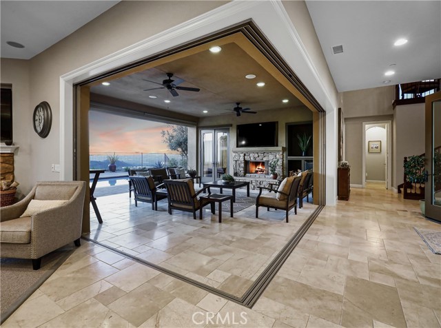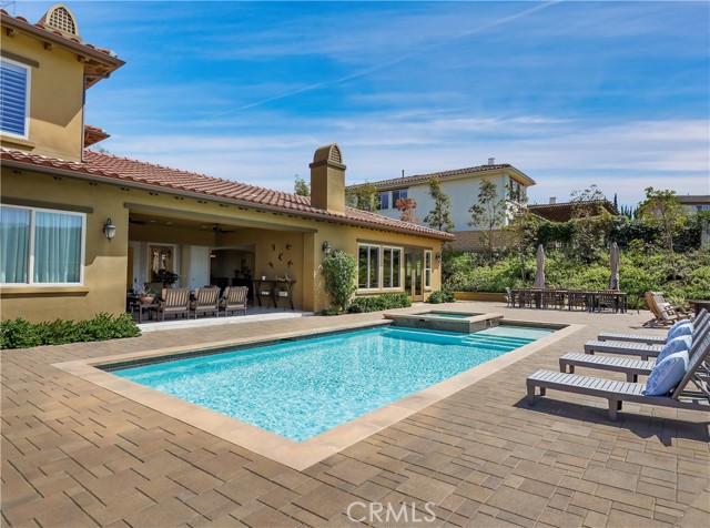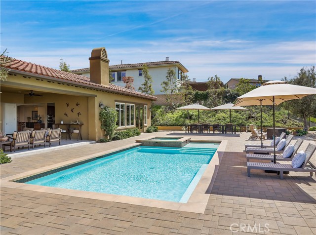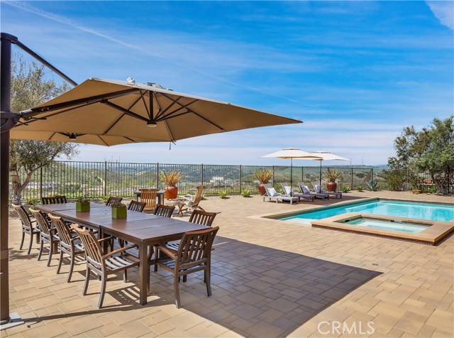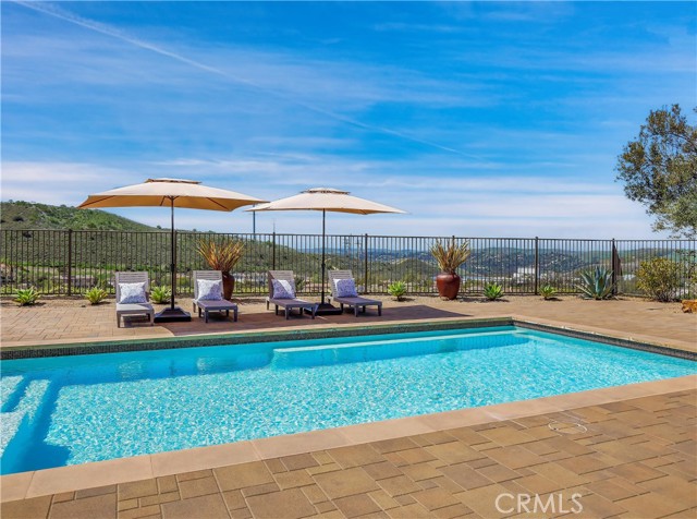 Breathtaking Whispering Hills Estate surrounded by picturesque rolling hills in a highly desirable gated community, superbly perched on a premium lot on a single loaded street and blessed with amazing 180-degree views of rolling hills and sunsets providing a serene setting for this spectacular oasis. Boasting a rarely available and arguably the most sought-after Residence Two floor plan in the community with 3 bedrooms on the main level, this stunning home has been meticulously maintained and is brimming with elegant custom features and upgrades. The classically designed exterior and manicured landscaping create a dramatic first impression. Enter through majestic stone archways into a tranquil courtyard and French doors opening to multiple living areas throughout this gracious home. A formal dining room opens to both the great room and the courtyard creating an elegant space for an Al-Fresco dining experience. The generous great room has ample living space for gathering around the cozy fireplace and is open to the dazzling kitchen with granite countertops, a graceful custom tile backsplash, elegant cabinetry, top of the line stainless steel appliances including a 48 Sub Zero Refrigerator, a huge center prep island with breakfast bar, and a sunny breakfast nook with French doors opening to the backyard and a generously sized walk-in pantry. Enormous 90 degree sliding pocket doors can be tucked away providing a spectacular transition to the prized Capistrano Room, romantic fireplace, built-in sound system, two ceiling fans and an ample seating area creating an ideal indoor-outdoor space for relaxing and entertaining friends and family. This amazing floor plan also includes a highly desirable main level Primary Bedroom Suite with French doors opening to the Capistrano Room and patio, gorgeous rolling hills views, and an elegant private bathroom with limestone floors and a huge walk-in closet with wood floors. Upstairs boasts a large bonus room with a built-in wet bar, a spacious media room or 5th bedroom, and an expansive bedroom suite with en-suite bath, and breathtaking views. The entertainer's dream backyard is a private oasis taking full advantage of the spectacular views, with a sparkling heated pool & spa, an ample patio finished in stylish pavers and 2 large olive trees. Home also includes a cost saving Solar System recently purchased, not leased, and 4 garage spaces, including a large 3 car garage and a separate single car garage.Interested in this Listing?