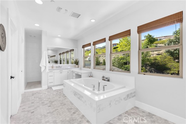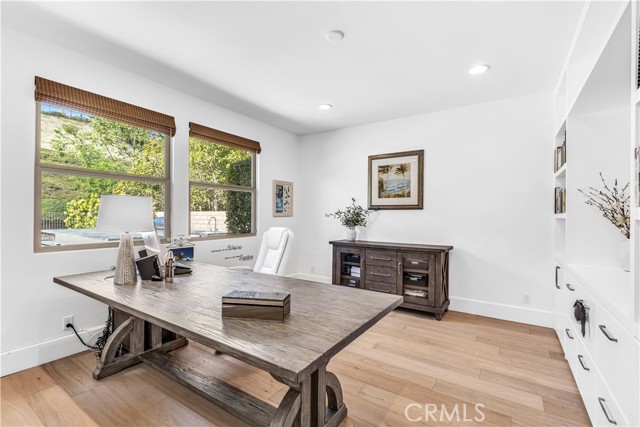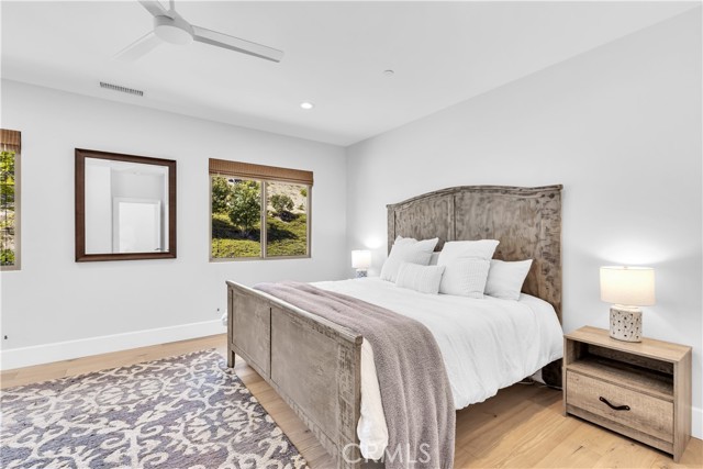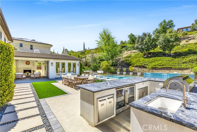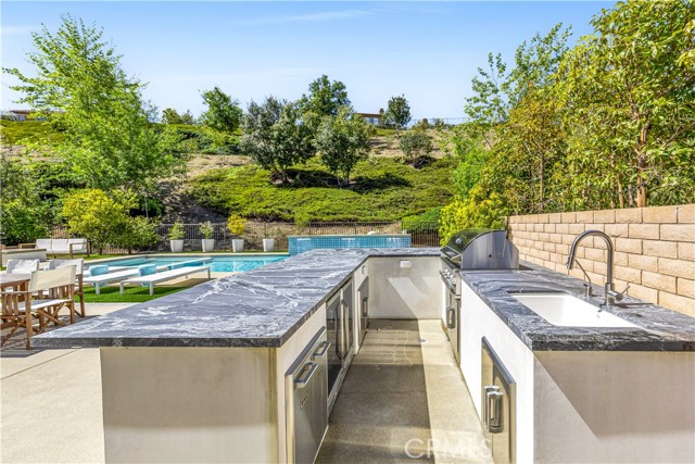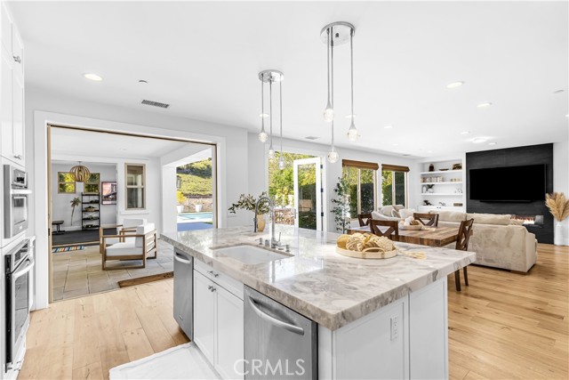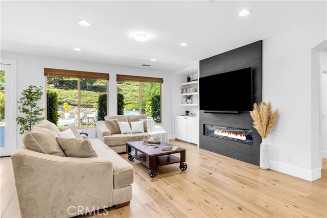 A masterfully remodeled sanctuary in the gated enclave of Whispering Hills minutes from the ocean. A majestic 6-bedroom all ensuite haven, with 7 bathrooms plus 2 multifunction rooms for bedroom/office/playroom. This property spans a 4,400 square feet of luxurious living space with wide plank European Oak wood floors, plus a 4 car garage on a secluded half-acre lot. The gourmet kitchen is a masterpiece of design with an enlarged marble slab island, high-end quartz countertops and a marble backsplash. Professional grade gas range with 6 burners compliment the kitchen s 3 ovens, 2 dishwashers plus prep sink with alkaline water system. The great room has views of the backyard oasis, sparking pool, and lush massive private hillside with French doors creating an indoor-outdoor experience. Past the kitchen you enter a large dining area and flow into your family room that s anchored by a grand 72" modern gas fireplace with slab-like floor-to-ceiling surround. The wet bar, crowned with high-end quartz, tile and marble backsplash and glass-fronted cabinets stands ready to entertain. Two non-primary bathrooms have been remodeled with floor-to-ceiling marble-like tile. The spa-like primary bathroom includes a large shower with two Rainheads plus one handheld, each with separate temperature control, architectural tiles and a one-of-a-kind Pebbelini floor & wall, a 2 person tub and 2 extra large walk-in closets. Glass pocket doors slide away to open the kitchen to your backyard oasis, entering the California Room with remodeled quartz and diamond glass fireplace. Cross over to your oversized saltwater pool (with automatic pool cover) with waterfalls, a large Baja shelf and spa that sits adjacent to a secluded fire pit lounge, draped in caf lights, nestled by a vast private hillside of lush greenery and trees. Across the backyard you see a remodeled hardscape where a massive 15-ft by 10-ft outdoor kitchen awaits, with leathered marble-like granite, a 36" ceramic sink, large in counter ice bin, double beverage centers, and trash & recycling pull outs. Savor al fresco meals prepared on the 42" grill/griddle with side burner, including multiple storage areas right next to your new extensive dining space. Newly painted in creamy white, the home's faade is accented by vibrant landscaping that bursts with lavender, white roses, and Mexican sage. This home includes dual tankless water heaters, dual HVAC systems, a paid solar system & battery wall, plus a new EV car charger.Interested in this Listing?