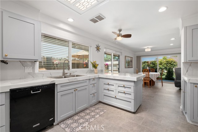 This single-level home in the San Juan Hills West community offers two bedrooms and three bathrooms. There is also a den/office which could be also a 3rd bedroom as it has a closet and en suite bathroom. The home is situated on a corner lot and is part of a 55+ community, providing a peaceful neighborhood setting. The corner location creates a serene and tranquil atmosphere with ample patios for al fresco dining and enjoying the outdoors. The interior of the home has been upgraded, offering a comfortable and updated living experience. The kitchen has porcelain tile counters and two sinks for ease in preparing meals. Other upgrades include: tankless water heater, newer HVAC, gas line installed for the outdoor BBQ, and newer front door. Amenities abound in San Juan Hills West complete with a swimming pool just steps away, nearby golf course, and conveniently located near the 5 Freeway.Interested in this Listing?