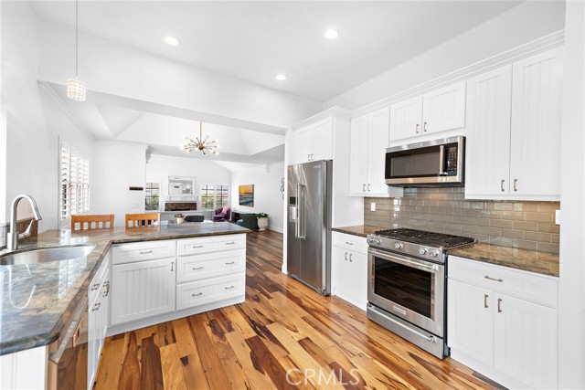 Set in a serene neighborhood, 26137 Via Monterey offers the ease of single-level living with thoughtful updates and timeless style. This inviting home blends comfort, functionality, and the laid-back elegance of Southern California living. A brick-paved entryway leads into a light-filled interior featuring hardwood flooring throughout, high ceilings, and an open layout that feels bright and welcoming. The living room is enhanced by a custom fireplace and a pony wall, adding architectural interest while maintaining an open flow. The kitchen is well-appointed with granite countertops, stainless steel appliances, ample white cabinetry, and a charming garden window overlooking the private brick patio perfect for entertaining or relaxing outdoors. The adjoining dining area features a custom light fixture, tying the space together with a touch of character. The primary suite offers generous space, including two mirrored closets one in the bedroom and one in the en-suite bath. The primary bathroom includes dual sinks and a soaking tub, offering a spa-like retreat. The second bedroom features custom shutters and sliding door access to the patio. A nearby guest bath is updated with a walk-in shower, custom tilework, and a modern vanity. Additional features include a two-car garage with built-in cabinetry, washer and dryer, and pull-down attic stairs for extra storage. The home also enjoys access to a community pool and spa, adding to its year-round livability. Surrounded by the beauty and history of San Juan Capistrano, this home is just minutes from the Mission, Los Rios Historic District, local shops, restaurants, and trails. Coastal destinations like Dana Point Harbor and San Clemente beaches are just a short drive away.Interested in this Listing?