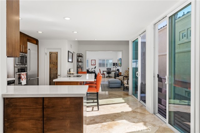 Just steps from the beach and the charm of Main Street, this beautifully designed home blends luxury with laid-back coastal living. Featuring a unique reverse open floor plan, the upstairs living area is filled with natural light and ocean breezes perfect for relaxing or entertaining. The gourmet kitchen boasts custom cabinetry, high-end finishes, and a spacious walk-in pantry, while the adjacent living room includes a cozy fireplace and a custom bar with wine fridge, sink, and ice maker. Step outside to an oversized deck, ideal for morning coffee or evening gatherings. Elegant details like travertine floors, plantation shutters, and wrought iron accents add timeless style throughout. The first level features a tranquil primary suite with a private patio, two additional bedrooms with built-in storage, a full bath, and a convenient laundry room with garage access. New engineered wood flooring enhances the space, and an outdoor shower offers the perfect way to rinse off after a day at the beach. Located in the heart of the picturesque Old Town Seal Beach community, this impeccably maintained home offers more than just a residence it s a lifestyle defined by charm, comfort, and the beauty of the coast.Interested in this Listing?