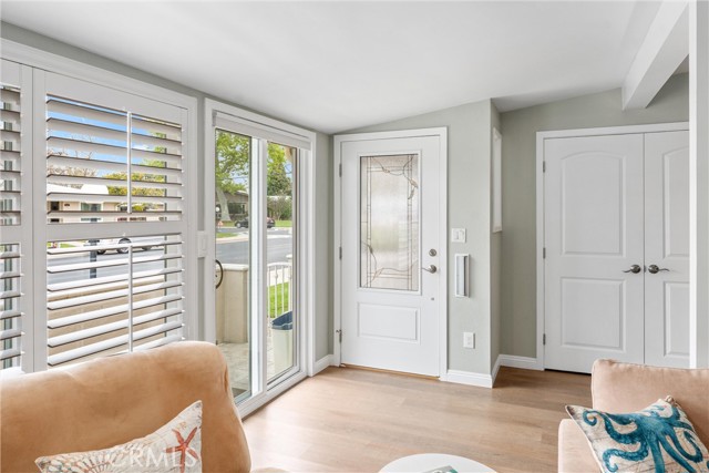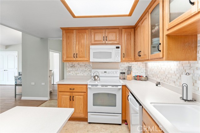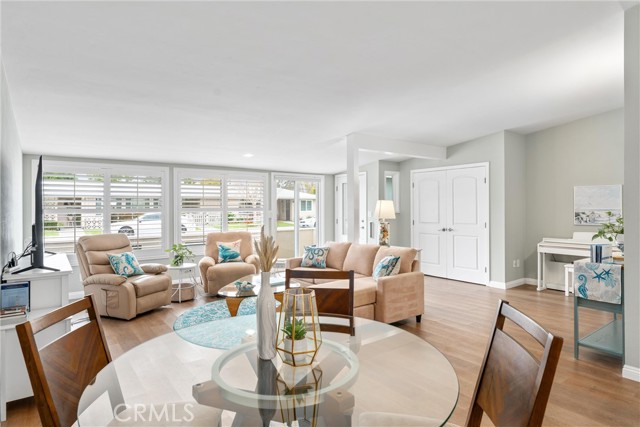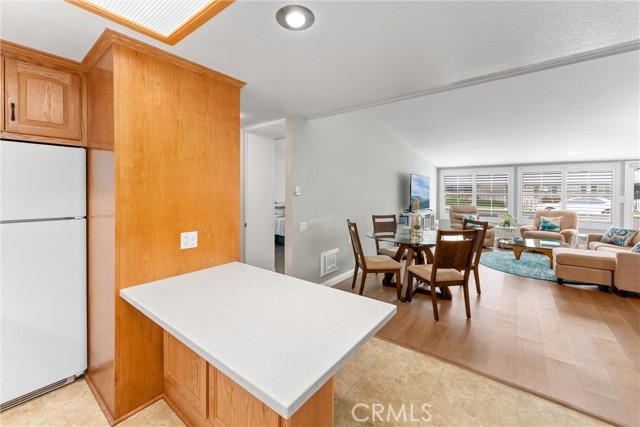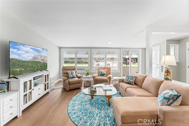 Mutual 14 of Leisure World has one of the lowest monthly fees in the community. Fully expanded, remodeled 2 bedroom, with a large primary bedroom, 1 bath unit with a beautiful patio. Completely remodeled kitchen with a standard sized convection range and oven, flared skylight and high end cabinets and countertops. Primary bath has been remodeled and comes with an IN UNIT, newer, large, washer/dryer. It comes with a double headed, ductless, split system heat pump, A/C, dual pane windows w/plantain shutters, smooth ceilings, beautiful flooring and lots of storage. The home has CONVENIENT drive up parking making unloading groceries easier and easy access parking for your guests. It is in a great location where homes rarely come on the market, close to the front gate and a short walking distance to the Leisure World Golf Course. It is located in a closed street with a round about at the end. This home is turn key and move in ready! This community features a 9 hole golf course, 6 clubhouses, gym, aquatic center, multiple clubs to join, medical center, pharmacy, outdoor ampi-theatre, post office, and so much more!Interested in this Listing?