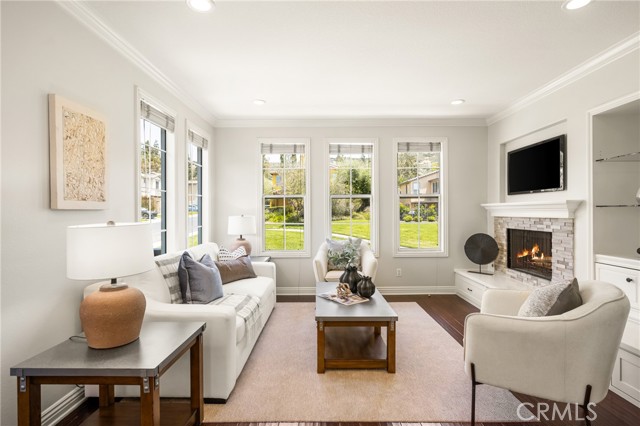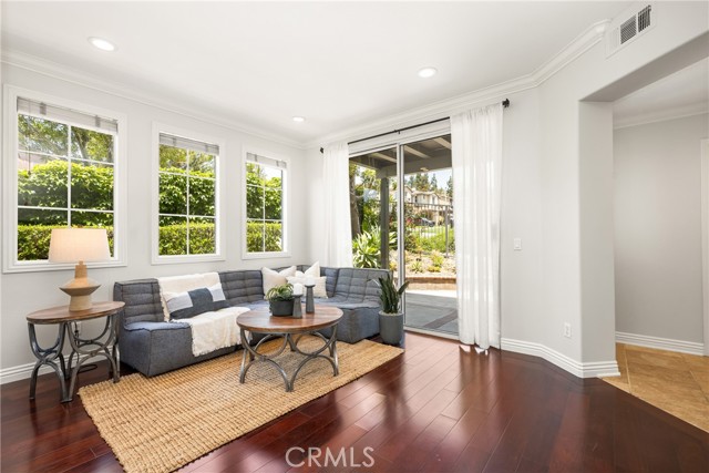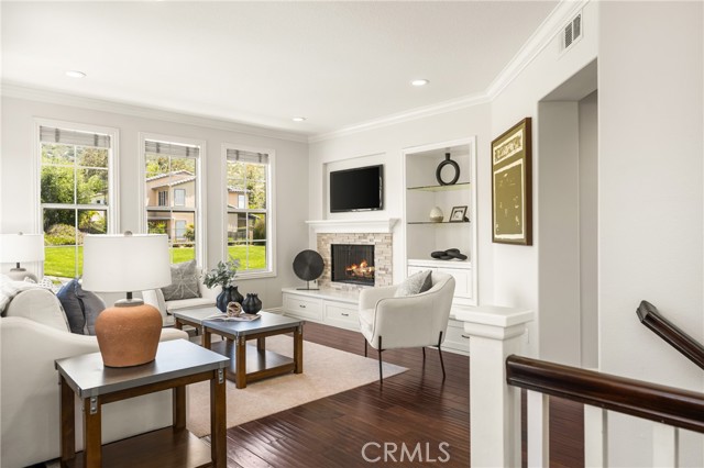 Gorgeous Turnkey Home in the Highly Sought-After Gated Community of Vidorra in Tustin Ranch! Located on a Prime Corner Lot with no homes directly in front and no neighbors behind, this home boasts stunning views of the canyons, mountains, and lush greenbelt, providing exceptional privacy and a serene setting. This move-in-ready residence offers the perfect blend of style, comfort, and functionality. Step into the formal foyer and experience an open-concept floor plan with high ceilings, dark wood flooring, and an abundance of natural light throughout. The bright and airy Chef s kitchen features white shaker cabinets, new marble-like Quartz countertops, Moroccan tile backsplash, stainless steel appliances, and ample counter space. The Kitchen opens to a charming Dining area with direct access to a spacious balcony - ideal for indoor/outdoor entertaining, grilling, or taking in tranquil greenbelt and mountain views. The Dining area flows seamlessly into the spacious Great Room and includes a cozy fireplace, custom media built-ins, and large windows that frame beautiful lush views. A stylish powder room serves guests on the main level. The Luxurious Primary Suite is a serene retreat with a large walk-in closet with custom built-ins and a beautifully upgraded spa-inspired bath featuring dual vanities, an oversized walk-in shower, and picturesque views. Two additional spacious bedrooms are located on the lower level and share a full bath. A versatile lower-level Loft offers additional space for lounging, a home office, or a playroom - with direct access to the low maintenance backyard. Additional upgrades include fresh interior paint and new carpeting. The home also offers direct access to Peters Canyon hiking trails from within the community and is just minutes from lots of shopping and dining. Zoned for award-winning Tustin Unified Schools, including Beckman High. Low HOA and no Mello Roos. Don t miss this rare opportunity - this home will go fast!Interested in this Listing?