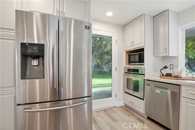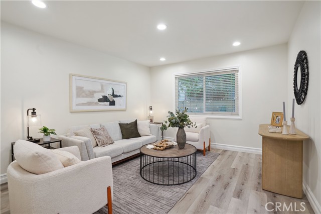 This beautifully updated single-level home with four bedrooms and a family room, situated on a peaceful cul-de-sac, offers a great sense of privacy and quiet. From the moment you see the property, you ll notice the large, well-maintained green grass front yard featuring mature landscaping, leading to a very welcoming front porch. The spacious 3-car attached garage has been upgraded with epoxy flooring, custom built-in white storage cabinets providing ample organization space, separate attic area and a recently installed ventilation fan to ensure it stays cool. Inside, the home boasts a bright and open-concept layout that feels airy and is filled with natural light, enhanced by a skylight, thoughtfully placed recessed lighting, and energy-efficient double-pane windows throughout. The newer laminate wood flooring adds a touch of warmth and continuity to the living spaces. The living room is inviting with its built-in shelving and a charming bay window, seamlessly flowing into the dining area and a kitchen that s perfect for entertaining. You ll also appreciate the cozy fireplace for those cooler evenings and the French doors that open to the outdoor patio, creating a wonderful indoor-outdoor flow. The kitchen is equipped with sleek stainless steel appliances, quality custom cabinetry offering storage, and elegant quartz countertops with generous workspace. The spacious primary suite provides a true retreat, featuring recessed lighting and a sliding glass door that offers direct access to the backyard. The en-suite bathroom has been designed with a spa-like feel, including dual sinks and a convenient vanity area. Further enhancing the home's value are a fully remodeled hallway bathroom, complete home repipe and water heater, new ceiling insulation for energy efficiency, water softener system, and a brand-new HVAC system. The backyard is an absolute dream for anyone who loves to entertain. It features a lush lawn and an impressive variety of fruit trees, including dragon fruit, pomegranate, apple, sapote, mulberry, and blackberry bushes, as well as vines adorning the covered patio, offering fresh produce right in your own yard. There's ample space to add an ADU, Pool w/spa or maybe an outdoor room. This home also benefits from newly installed solar system/panels for energy savings, all-new interior electrical outlets for added safety and convenience, and the added bonus of no HOA fees. Situated in a prime location, this turnkey property truly is a rare find.Interested in this Listing?