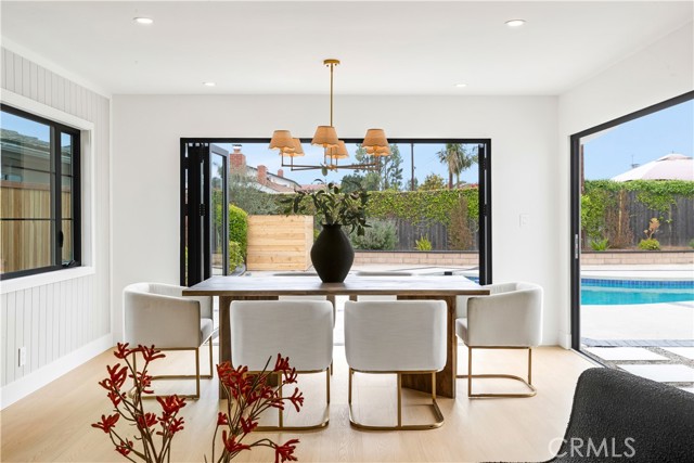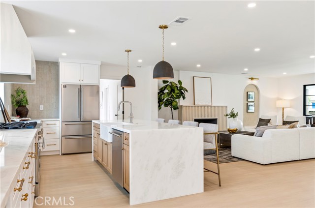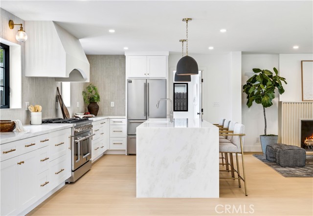 Welcome to 14711 Mimosa Lane a completely reimagined masterpiece of modern luxury living. This stunning 2,443 square foot, 4 bedroom, 3 bathroom home offers the epitome of elegance, sophistication, and Southern California living. Every detail has been carefully curated to create a seamless blend of style and comfort. Nestled on a quiet tree-lined cul-de-sac, you're welcomed by natural wood touches, newly landscaped grounds, and a charming curb appeal. Step inside through the custom doors and enter a light-filled great room featuring two cozy fireplaces to gather around and an effortless indoor-outdoor flow. The heart of the home is the gourmet kitchen, centered around a breathtaking waterfall natural stone island, complemented by bespoke lighting, high-end appliances, walk-in pantry and top-tier finishes. Two sets of bi-fold doors open completely off the dining room and formal living area, creating a true indoor-outdoor living experience, perfect for entertaining or relaxing in the California sun. A bedroom, full bathroom with curated finishes and chic mudroom and laundry area round out the downstairs interior. Retreat upstairs to the primary suite with walk-in closet and a spa-like bathroom adorned with designer tile and premium fixtures. An additional bathroom and two more bedrooms complete the upstairs living area. The serene backyard is your own private oasis, complete with a sparkling pool and spa and ample entertaining space. Expertly designed touches are found in every corner, from the lighting selections and custom wallpaper to the detailed woodwork. Major upgrades include new plumbing, electrical, and luxury finishes throughout. Ideally located near parks, popular shopping and dining destinations and zoned for Foothill High School, 14711 Mimosa Lane offers the ultimate in modern Tustin living.Interested in this Listing?