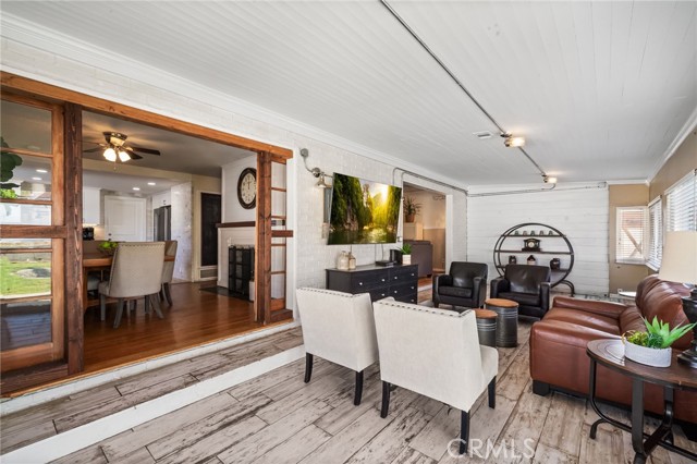 Welcome to 17581 Brent Lane, a charming single-story home located on a quiet cul-de-sac in a friendly Tustin neighborhood. This charming 3-bedroom, 2-bathroom home offers an estimated 1,700 square feet of living space on a spacious 8,100 square foot corner lot with rare RV access. Inside, you ll find original hardwood floors throughout, an updated kitchen with stainless steel appliances and quartz counters with an eating bar. The kitchen opens to the dining area that is warmed by a cozy fireplace, perfect for family meals and entertaining guests. Step down from the living and dining rooms into an expansive bonus room addition ideal for a game room, home office, or second living space. Patio doors from the bonus room open to the backyard designed for both relaxation and functionality, featuring an above-ground pool, dog run, grassy play area, and multiple patio spaces for outdoor living. For those with adventure in mind, the property also offers a 40-foot gated RV parking area perfect for boats, trailers, or motorhomes.Adding to the home's appeal is a newer AC unit, solar panels, two Tesla battery storage walls, and a new electrical panel for modern energy efficiency. Located within the award-winning Tustin Unified School District and just minutes from parks, shopping, and freeways, this home offers the ideal blend of charm, space, and convenience. Don t miss your chance to make this Tustin gem your own!Interested in this Listing?