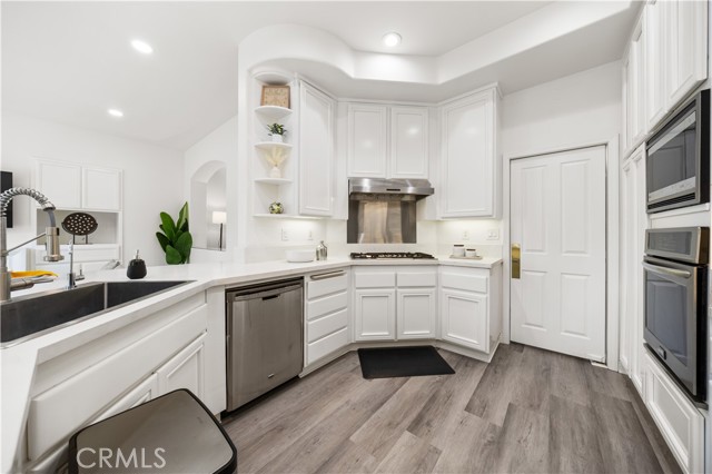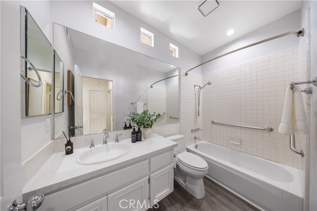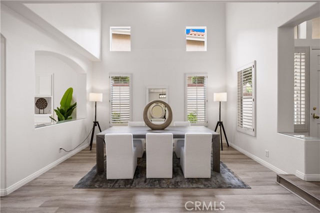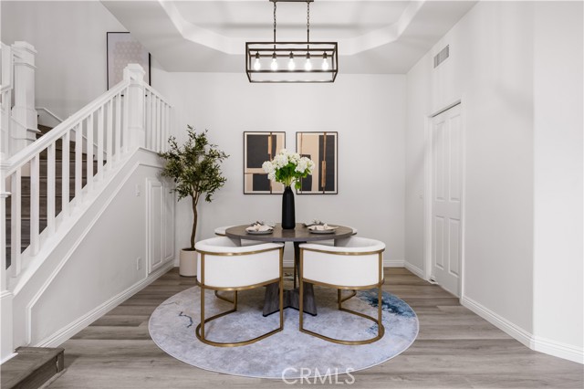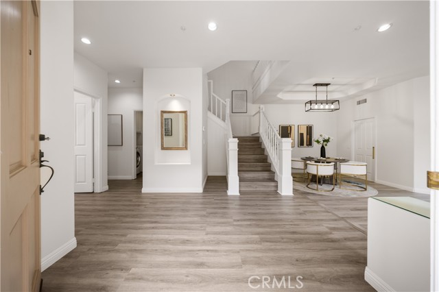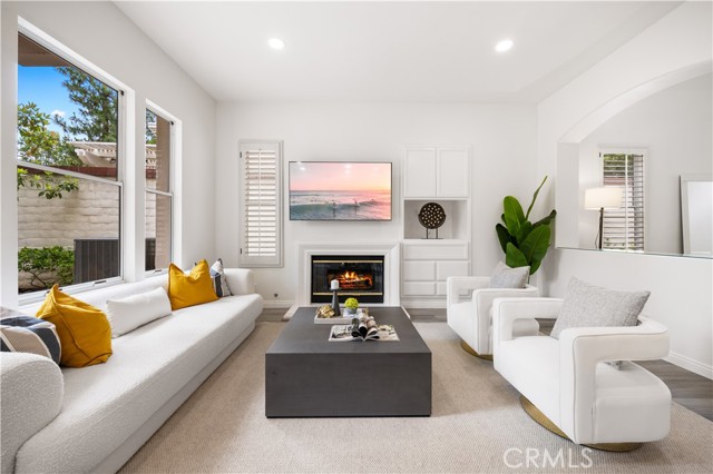 Welcome to this lovely home in the gated community of Corte Villa, right next to Tustin Ranch Golf Course. This spacious 4 Bed + loft, 3 Bath end-unit offers an open floor plan with high ceilings, recessed lighting, vinyl flooring, and plantation shutters throughout. The main floor features a remodeled kitchen with built-in stainless steel appliances, quartz countertops, backsplash, and a breakfast nook that opens to a peaceful, beautifully landscaped yard. The formal living and dining rooms are great for entertaining, while the cozy family room with a fireplace is perfect for relaxing. There s also a spacious bedroom with a full bath on this level, plus a separate laundry room with a sink, folding counter, and plenty of storage. The direct access 2-car garage has epoxy floors and built-in cabinets. Upstairs, the luxurious master suite features a private balcony overlooking the backyard an ideal spot to unwind or entertain. The updated, modern-style ensuite bathroom includes dual vanities, makeup vanity, walk-in shower, separate tub, and a large walk-in closet. Two spacious guest bedrooms, an upgraded guest bathroom with a walk-in shower and dual vanity, and a versatile loft that complete the second floor. Residents enjoy resort-style amenities like pools, a spa, tennis courts, and parks. The home is close to top-rated schools, Tustin Marketplace, hiking and biking trails, and offers easy access to the 5 and 55 freeways, plus the 241 and 261 toll roads. With a low property tax rate of about 1.05%, this home perfectly blends style, comfort, and convenience for Southern California living.Interested in this Listing?