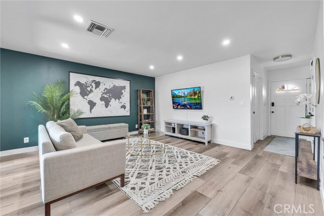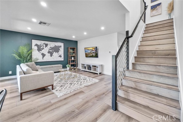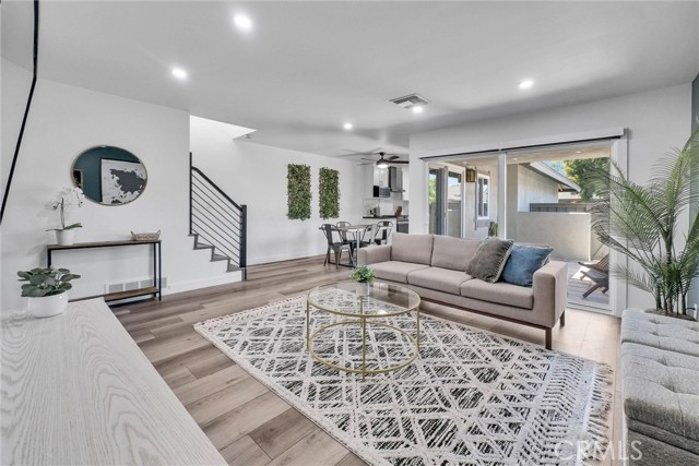 Welcome home to this gorgeous move-in ready end unit condo in Park Tustin. The entire home was recently renovated from top to bottom in 2021-2022 with a newer HVAC system from 2020 and brand new water heater from 2024. The home boasts one bedroom downstairs with double door entry, warm sandstone LVP flooring throughout and stylish shaker doors with black hardware throughout, motorized blinds downstairs for privacy, shutters upstairs for privacy and energy efficiency, recessed lights and ceiling fans throughout, all upgraded bathrooms, double closets and sitting area in master bathroom, upscale sliding closet doors in guest bedrooms, large coat closet under the stairs for storage, upgraded kitchen with tile backsplash and newer stainless steel appliances, direct access to the finished garage from the kitchen, laundry hookup and EV charging outlet in the garage, community pool and spa, and guest parking located next to the unit. The location is superbly nestled close to the 55 and 5 fwy. This home is tastefully renovated and is ready for you to move right in and enjoy!Interested in this Listing?