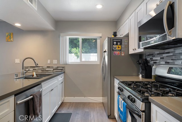 Motivated Seller! This nicely upgraded 2-bedroom, 2-bathroom condo welcomes you home. Perfectly positioned near premier shopping, delectable dining, and the bustling Tustin Market Place, with seamless access to the 5 and 55 freeways, convenience is at your doorstep. Step inside to a turnkey unit, with laminate wood flooring throughout, complemented by an upgraded open kitchen boasting sleek cabinets, shimmering quartz countertops, and stainless appliances. The fully updated bathrooms feature chic vanities, while custom LED lighting casts a warm glow across every room. Upgraded doors, windows, and a wall AC unit ensure year-round comfort, blending style with functionality. Cozy up by the fireplace, enjoy the convenience of in-unit washer and dryer hookups, and step outside to your private backyard perfect for savoring Southern California s idyllic weather. Beyond your door, indulge in resort-style amenities, including a sparkling community pool, inviting clubhouse, and playful playground. Perfect 2 bedroom starter home in the Heart of OC!Interested in this Listing?