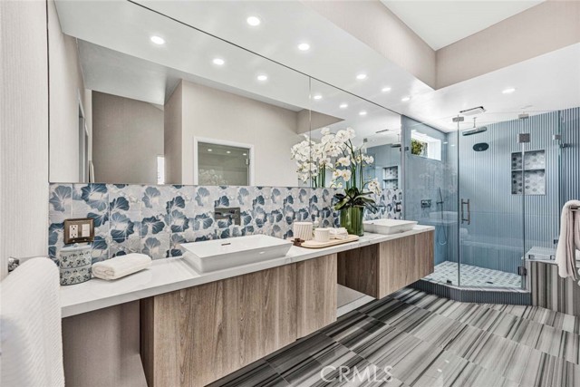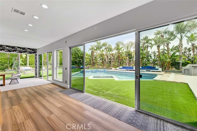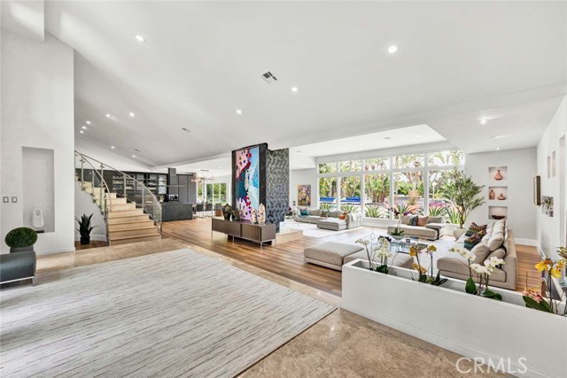 With a prime peaceful location, this masterpiece of modern design with approximately 5888 sq. ft., is a statement of avant-garde sophistication. Defined by bold, clean lines and a radiant interplay of light, it is more than a residence it is a gallery, a sanctuary for its owners and the collector who appreciates space as an expression of creativity. The feeling of space and light is all encompassing. The entrance sets the tone, opening to a huge breathtaking great room where a striking fireplace anchors the space, flanked by expansive walls of glass that frame a stunning, flat and usable yard with views looking out to expansive space. The huge and gorgeous back yard offers a shimmering pool and spa inviting relaxation, and is seamlessly integrated with the home's effortless indoor-outdoor flow. The yard can easily accommodate a few, or even a few hundred! Elegance continues into the dining room, where generous windows and direct access to the yard enhances its atmosphere of refined simplicity. A stunning architectural light fixture surrounded by custom wall paper treatment are the focus of the this room. The kitchen is a study in European craftsmanship, featuring sleek Italian Snaidero cabinetry, a premium Bulthaup range, and top-of-the-line Wolf appliances, including a dedicated coffee station. Adjacent is a nook with a table for eight. With regular and steam ovens and a thoughtfully positioned casual dining nook, this culinary space is both functional and impeccably stylish. On the first level, the primary suite is a retreat of luxury, boasting two spacious walk-in closets, designer tile, and mirrored walls in the spa-like bath. A freestanding tub and separate shower create an oasis of relaxation. Four additional en-suite bedrooms provide both privacy and connection, with two of them sharing an exclusive living room that overlooks the great room below. A four-car garage with attractive circular drive from the street completes this exceptional property, designed to impress, inspire, and elevate the modern aesthetic.Interested in this Listing?