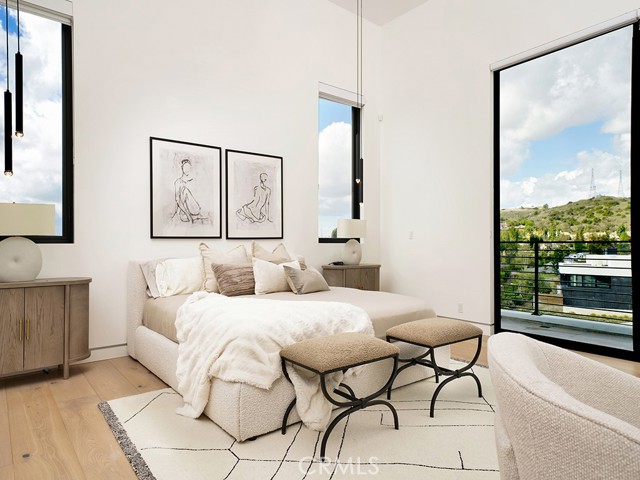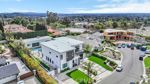 SELLER FINANCING MAY BE AVAILABLE! A Modern Masterpiece of Luxury Living. Nestled at the end of a quiet cul-de-sac in an exclusive neighborhood, this 2021-built estate offers unmatched luxury and stunning views. Set on a 21,000 sq ft elevated lot, the home spans approximately 7000 sq ft and boasts exceptional craftsmanship, sleek design, and high-end finishes throughout. Step into the grand foyer with soaring 27-foot ceilings and a floating staircase leading to the open-concept Great Room, featuring walls of glass, telescoping doors, and French oak hardwood floors. The chef s kitchen is equipped with dual-waterfall islands, Thermador appliances, custom cabinetry, and a separate prep kitchen. A private office, guest suite, and powder room are located on the main level. The luxurious primary suite offers panoramic views, a private terrace, and a spa-like bathroom with designer tiles, freestanding tub, and dual walk-in closets. Two additional en-suite bedrooms are tucked away in a separate wing for added privacy. The resort-style backyard includes a pool, spa, fireplace, built-in BBQ, fire pit, and putting green, making it perfect for entertaining. A detached guest house with a full kitchen, living room, two bedrooms, and a bath offers 2,000 sq ft of additional space, ideal for guests or multi-generational living. This modern estate combines unparalleled luxury with the ultimate in comfort and style, offering an extraordinary lifestyle.Interested in this Listing?