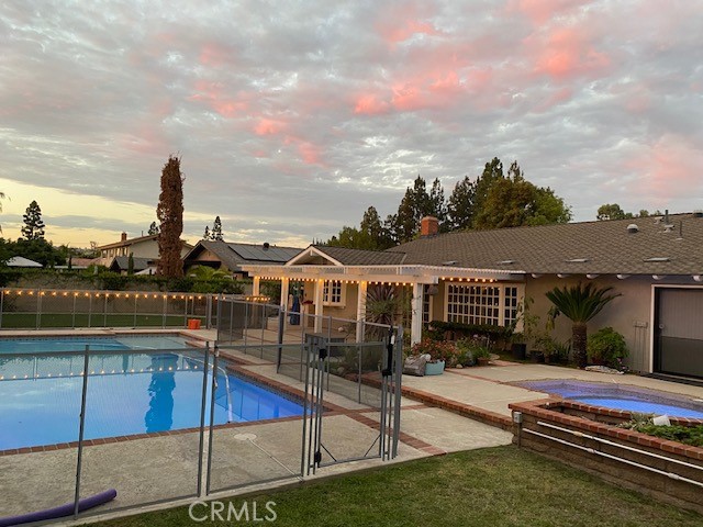 Located on a quiet cul de sac, this charming 4 bedroom 2 bath home is just a short walk to Villa Park Elementary. Remodeled in 2022, the kitchen shines with custom wood work, quartz countertops and top of the line Bosch appliances. The kitchen opens to the family room and has views of the yard. Both bathrooms were also updated during the remodel and include a Toto bidet, heated floors, in-cabinet electrical, and Graff and Gessi fixtures. Inside, all bedrooms have organized closets, ensuring comfort and luxury. Set on over a quarter acre, the backyard is an entertainer s dream. Enjoy separate patio areas, a fenced grassy space, an inviting, large in-ground, fenced pool, complete with a baja shelf and umbrella stand. There is also a separate in-ground spa. For evening entertaining there are colored pool lights and separate heaters to maximize efficiency and comfort. The lush garden boasts orange, grapefruit and lemon trees, and the yard is perfect for enjoying gorgeous sunsets. Three car garage with automatic openers. Enjoy a quiet location and the convenience of being close to the Villa Park Center shops and schools. Please do not disturb tenant.Interested in this Listing?