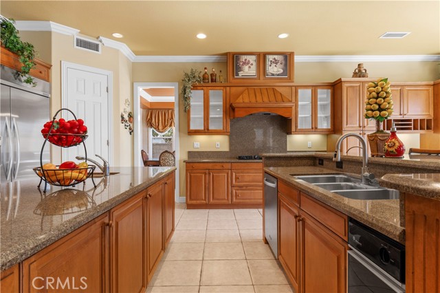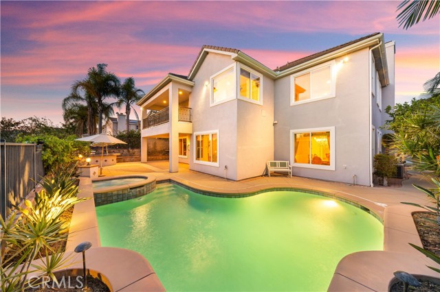 Luxury executive estate with 5 bedrooms, 4.5 bathrooms (1 bedroom 1.5 bathroom downstairs), plus a home office downstairs, large loft and bonus room upstairs, and 3-car garage. Welcoming double-door entryway with high ceiling. Living room with fireplace, features comfortable seating and a warm, inviting atmosphere. Large formal dining room with custom crystal chandelier. Stunning gourmet kitchen is the heart of the home featuring rich custom cabinetry, sleek granite countertops, and not one but two expansive center islands, ideal for entertaining and everyday living. Equipped with upgraded appliances, including KitchenAid built-in refrigerator, built-in microwave, double-ovens, and trash compressor. Natural light floods through the large windows, illuminating the cozy breakfast nook. The family room seamlessly connected to the kitchen, with fireplace, built-in media center, offers the perfect space for relaxation and gatherings. Downstairs home office with premium wall paper. This super large primary suite offers an elegant retreat, featuring plush carpet flooring, custom window treatments, spacious walk-in closet and a private balcony to enjoy the panoramic city lights views. The spa-inspired en-suite primary bathroom featuring dual sinks, large shower room, separate soaking tub with scenic views. The kids bedrooms are designed with fun and functionality in mind! Each room offers generous closet space, perfect for all their outfits and essentials. The junior suite has a balcony with wrought iron railings. The upstairs loft is ideal for a dedicated office setup. The bonus room could be the 6th bedroom. Other features include: Custom two-tone paint, bamboo floor in office, living room, family room and downstairs bedroom. Custom window curtains and blinds, recessed lights, chandeliers, and crown moldings. The entertaining back yard boasts swimming pool & spa, BBQ island ideal for outdoor cooking, a lot of fruit trees, provides a fantastic space for recreation. Fantastic city lights views, enjoy the Disneyland fireworks. Great location, close to markets and shopping centers, easy access to freeways.Interested in this Listing?