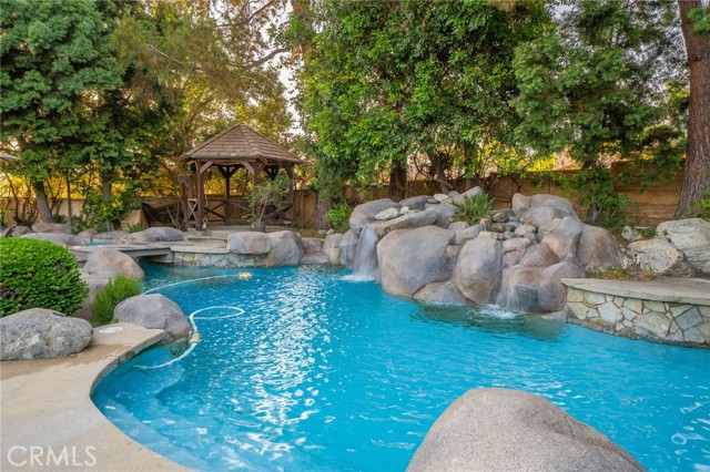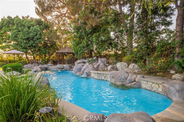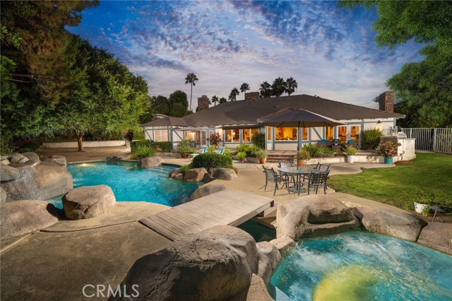 Discover this unique property featuring two single-story custom homes, each with its own address, situated on a sprawling 38,333 SF lot and accessed by a private driveway offering privacy and seclusion. Nestled in a serene area, this estate offers a private backyard oasis with a stunning rock pool and spa, complete with a soothing waterfall. Enjoy the expansive deck, charming gazebo, built-in BBQ, and lush lawn area perfect for relaxation and entertaining. The property also includes a versatile open space with fruit trees, planting beds, zoned for horses, and a basketball court area, plus gated RV parking for added convenience. Whether you're seeking a family compound or additional space for guests, this property provides ample space and endless possibilities. Main House (18105 Bastanchury Rd.) This 1986 custom-built gem boasts 3,609 SF of living space with three bedrooms, a private office, and three bathrooms. The home greets you with a spacious driveway leading to a charming brick porch and double doors. Inside, enjoy high ceilings, wood and marble flooring, and stunning pool views. The formal living room features a cozy fireplace and built-ins, while the formal dining room showcases hardwood floors and custom drapery. The family room, with wood-beamed ceilings and French doors, includes a built-in bar with a Scotsman refrigerator, ice maker, and glass cabinets. The gourmet kitchen is a chef s dream with a Wolf six-burner range, Viking trash compactor, Sub-Zero refrigerator, and more. The luxurious primary suite with a fireplace, walk-in closet, and remodeled bathroom add to the allure. Two additional bedrooms, two additional bathrooms, a large laundry room, and ample storage complete this magnificent home. 2nd Home (18107 Bastanchury Rd.) Built in 2005, this 1,235 SF home features three bedrooms and two bathrooms. The open living area includes a fireplace and slider door to the outside. The spacious kitchen offers white cabinets, granite counters, and stainless appliances. The primary suite comes with a walk-in closet and a bathroom with a spa bathtub. Additional amenities include a hallway bathroom with a large shower, an inside laundry room, and an attached one-car garage with a private driveway. This unique property offers privacy, spacious living, and a beautiful setting an opportunity not to be missed!Interested in this Listing?