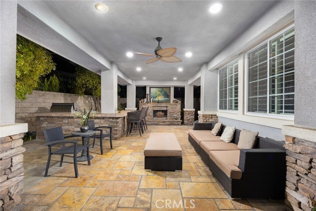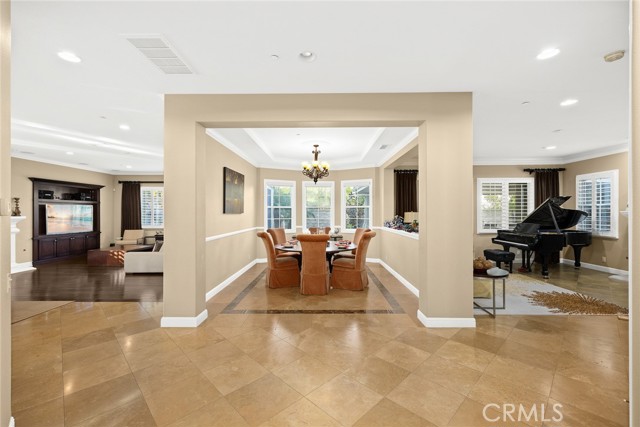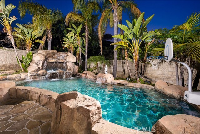 An amazing school district with views from the balcony! Discover the ultimate luxury living in Yorba Linda s premier neighborhood.This stunning residence was customized to offer the perfect blend of elegance and modernity, with exquisite details and spacious design. As you approach the property, you will be captivated by theimpressive curb appeal, featuring a stacked stone and paver walkway, a serene pond under a shady tree, and a grand entrance. Step inside the foyer and marvel at thespectacular spiral staircasethat leads to a gorgeous rotunda hall on the second floor. The tray ceiling above echoes the circular motif, creating a harmonious and refined atmosphere. Beyond the foyer, you will find agenerous and invitingfloor plan encompassing the family, living, and formal dining rooms. Whether you are hosting a dinner party or relaxing with your loved ones, you will enjoy theconvenience and comfortof this layout. Thegourmet kitchenis a chef s dream, equipped withtop-notch stainless steel appliances, including dual ovens, a warming drawer, a built-in microwave, a matching earthtone refrigerator with ice maker and filtered water line, and a dishwasher. The kitchen also boasts a large island for casual dining, ample cabinet space, andbay windowsoverlooking the pool area. On the first floor, you will also find a cozy bedroom, a 3/4 and a 1/2 bathroom, and a study for work-at-home professionals. The second floor features alavish master suitewith a tray ceiling, wood flooring, and a sitting room. The master bathroom is aspa-like retreat with marble vanities, a drop-in tub, a private shower room, and separate/walk-in closets. This home also offers acustomizable flex roomwith a view of city lights for more versatility and entertainment. The flex room can be used as a children s play area, a home gym, a game room, or another bedroom. Theresort-style, chic rock pool and covered patioare ideal for summer BBQs and parties. You ll find a built-in stainless BBQ and fridge on a stack-stoned island and an outdoor fireplace. Enjoy your days alongside the swimming pool waterfall, then dip in the spa at sundown. Elevate your lifestyle with this impressive home!
