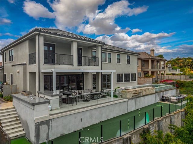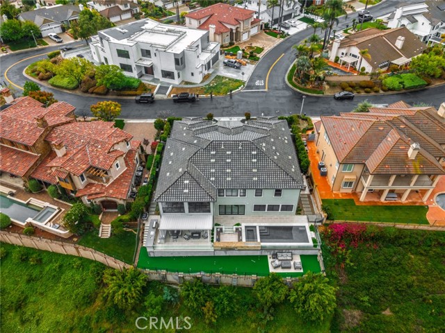 Nestled within one of Yorba Linda s most prestigious and secluded enclaves, this exquisite custom estate masterfully blends luxurious living with everyday comfort. Re-Built in 2017 and thoughtfully elevated with almost $700,000 in enhancements since, every detail has been curated to deliver a truly unmatched indoor-outdoor lifestyle experience. Step through the impressive new custom front door into a world of elegance, where a dual staircase, gorgeous marble and wood flooring, and coffered ceilings immediately capture your attention. The open-concept living spaces flow seamlessly, centered around a spectacular great room featuring a state-of-the-art projector and a chef s kitchen featuring gleaming Quartz countertops, double oversized islands, a built-in Thermador refrigerator, top-tier stainless steel appliances, and a secondary Wok kitchen for effortless entertaining. A full wall of accordion glass doors invites you to the ultimate private backyard sanctuary complete with a resort-style pool and spa, sunken firepit lounge, built-in outdoor kitchen with BBQ and beverage centers, putting green, and multiple covered seating areas for year-round al fresco living. This is true Southern California luxury at its finest. The first floor also offers a private guest suite and a custom wine room, perfect for showcasing your collection and entertaining guests in an intimate, sophisticated setting. Upstairs, you'll find three secondary bedrooms, the newly built laundry room, and an inviting loft. The primary suite is its own oasis, featuring a private balcony with breathtaking canyon views, an oversized walk-in closet, and a spa-caliber primary bath complete with steam shower, separate sauna, dual vanities, and luxurious soaking tub. Additional upgrades include custom-built garage cabinetry, upgraded garage doors, designer window treatments throughout, and a full Sonos sound system seamlessly integrating both indoors and outdoors. Located within minutes of Yorba Linda s premier attractions including the award-winning Yorba Linda High School, the Black Gold Golf Club, and the upscale dining and shopping of Yorba Linda Town Center this home perfectly balances privacy and convenience. Miles of equestrian trails, parks, and preserved open space are just moments away, allowing you to enjoy the natural beauty that defines this coveted community. 21895 Heatheridge is more than a home it s a private luxury retreat where every day feels like a vacation.