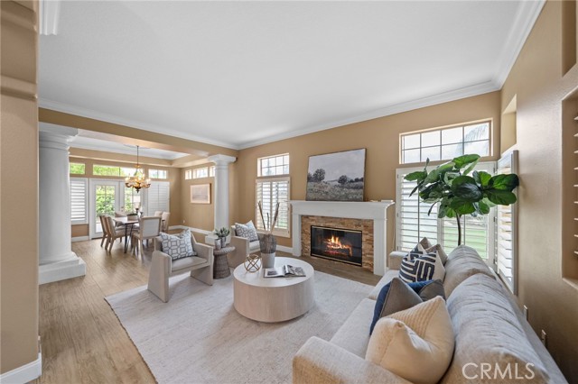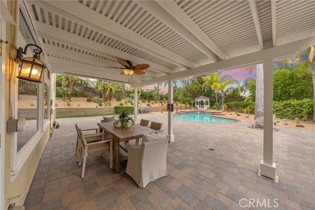 Luxury abounds in the stately home located in the desirable Brighton Ridge development of Bryant Ranch neighborhood. This wonderful residence offers the elegance, comfort, and functionality you have been yearning for. As you step through the entry, you'll be greeted by two story voluminous ceilings and dual paned windows that permeate natural light throughout. Just off the formal entry is the executive office with custom built-ins followed by the formal living room and dining room with fireplace and French door access to the rear yard. Making your way to the kitchen you will find the open-concept layout seamlessly combining the family room and kitchen areas, creating an inviting space for gathering with friends and family. The spacious kitchen is a culinary treat, featuring stainless appliances, Sub Zero refrigerator, sleek granite countertops, center island cooktop with 6 burner, sunny breakfast nook, and walk-in pantry. The expansive family room, anchored by an entertainer's wet bar, with stacked stone is bathed in natural light, thanks to large windows that overlook the backyard. Additionally, the main level features a coveted main floor bedroom with a private bath that boasts convenient pool access, a laundry room, and powder room. As you make your way upstairs, the luxurious primary suite is a true sanctuary with its generous size, private sitting area with cozy fireplace, and intimate viewing balcony that affords breathtaking views of the pastoral hillsides. The primary bathroom boasts a sumptuous soaking tub, dual sided remodeled walk in shower, multiple vanities and toilets, and two large walk-in closets. The open loft area is the perfect space for a secondary family room or flex space. In addition, there are three secondary bedrooms, two of which share access to a remodeled dual vanity bathroom while the other bedroom offers a private en-suite bath. Step into your private backyard oasis where you'll find the centerpiece is a sparkling pool/spa and private gazebo. Enjoy the spacious patio ideal for outdoor al-fresco dining. The spacious side yard is the perfect setting for additional relaxation. This luxurious home boasts remodeled bathrooms, new carpet, central vacuum, crown molding, planation shutters and gorgeous Italian tile flooring in the downstairs. All of this with just a short stroll to Box Canyon Park and walking trails. Area boast highly acclaimed Yorba Linda schools.Interested in this Listing?