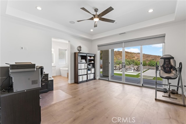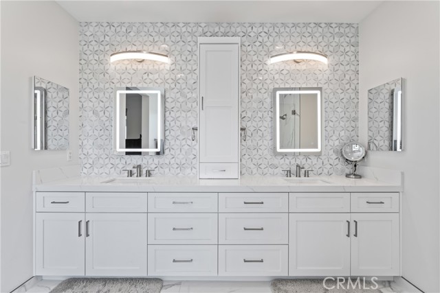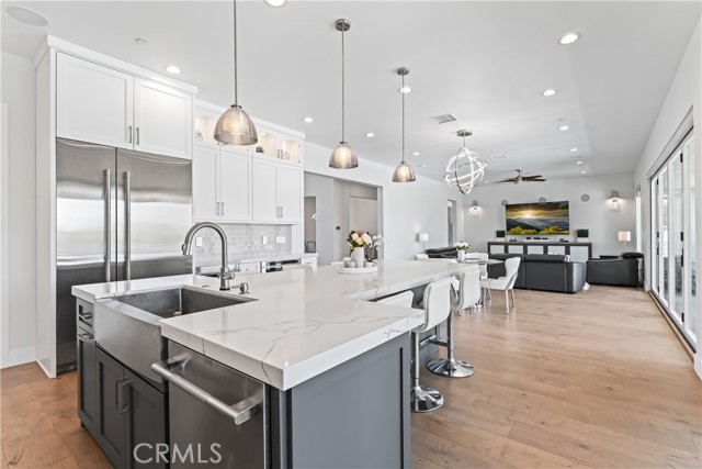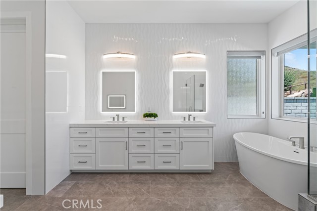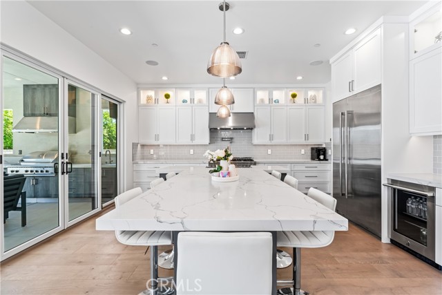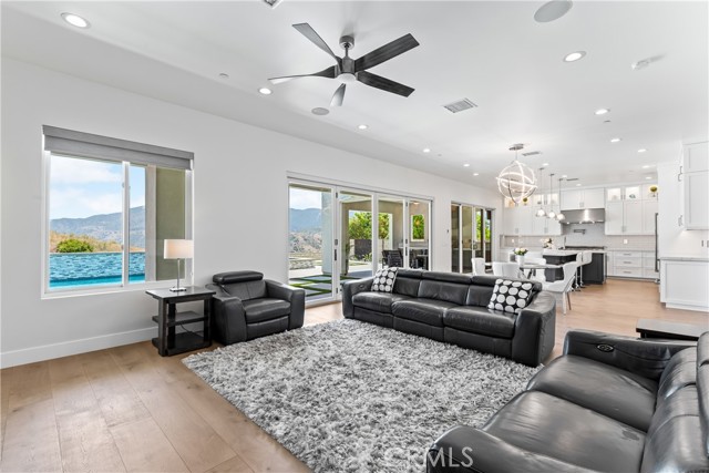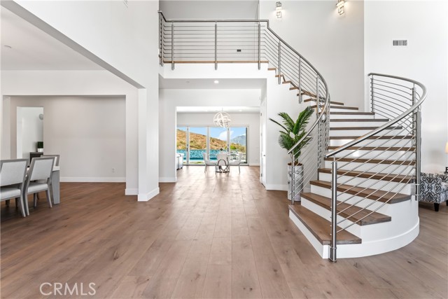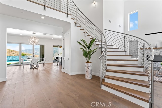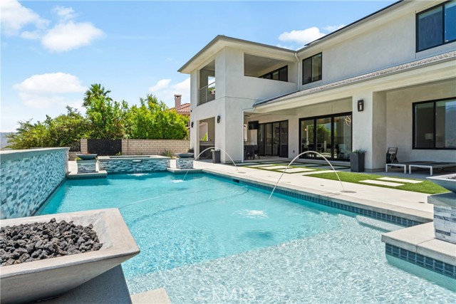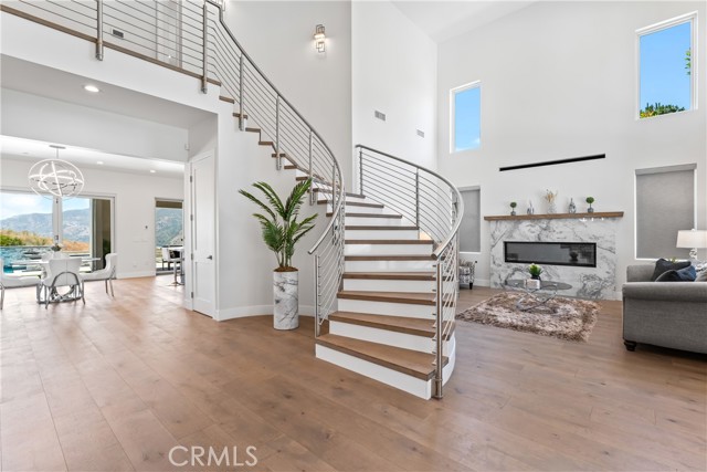 Beautifully designed home completed in 2020. This 2-story home offers 5 bedrooms, 7 bathrooms, and a loft for a total of 4763 sqft. The downstairs features a formal dining room, a formal living room with a gas fireplace, a circular staircase, a modern kitchen with a walk-in pantry, an oversized island and built-in appliances. Additionally, the downstairs offers a large family room with built-in entertainment system, laundry room, powder room, and a primary downstairs bedroom, with a walk-in closet. At the upstairs level, you will find 4 additional bedrooms and a loft. There is a second primary bedroom upstairs with two walk-in closets. Each bedroom has its own full bathroom. The oversized 3 car garage has epoxy flooring, lots of built-in cabinets, 2 water heaters, finished walls and glass roll-up garage doors. Central vacuum unit is also located in the garage. The backyard presents a built-in pool with a baja, a spa, 4 fire bowls, a fire pit, a built-in barbeque, custom cabinets, beverage fridge and a sink. The unobstructed, private and forever view give this backyard a resort like atmosphere, perfect for entertaining. The view, the privacy and the location make this beauty a hard to find in Orange County. The solar system is owned and included in the price. It is located on a 24,200 sqft lot. It has a surround system installed throughout the house and outside. Property is sold in its "AS-IS" present condition. Public record information provided by third party. Brokers and agents have not verified public records, including but not limited to permits, lot size, number of rooms, age of property, zoning of property, use of property or square footage. Buyer assumes all such investigations.Interested in this Listing?