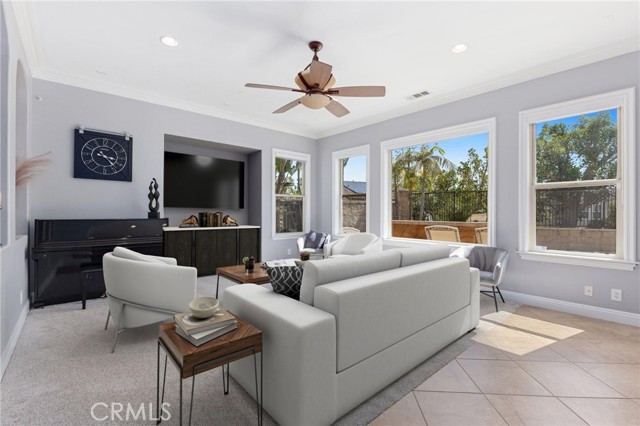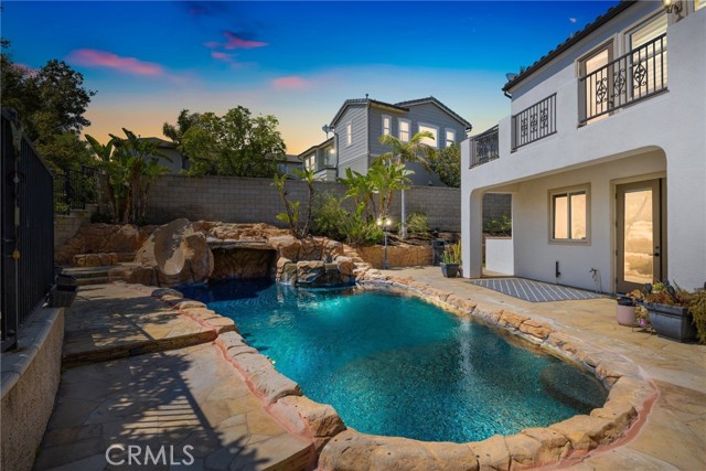 Experience luxurious living at 4155 Churchill Downs Dr, Yorba Linda, where comfort meets elegance in this beautifully upgraded home. The open floorplan is designed for both entertaining and everyday living, featuring a crown-molded living room with a cozy fireplace and a spacious family room that seamlessly flows into the gourmet kitchen. Enjoy granite countertops, a large center island with prep sink, stainless steel appliances, and an adjacent formal dining room, perfect for hosting. A main floor bedroom with en suite bath offers ideal guest accommodations, complemented by an additional powder room. Upstairs, a grand open loft with plantation shutters provides versatile living space, while the primary suite impresses with a spa-like bathroom, dual vanities, soaking tub, walk-in shower, massive closet, and a private balcony overlooking the lush backyard. Three additional bedrooms share a dual-sink hall bath. Step into your own backyard paradise complete with a sparkling rock pool and spa, fire pit, built-in BBQ island, and ample parking with a three-car garage, extended driveway, and room for RV parking. Enjoy the nearby parks, horse trails, excellent schools. This Yorba Linda gem is truly an entertainer s dream.Interested in this Listing?