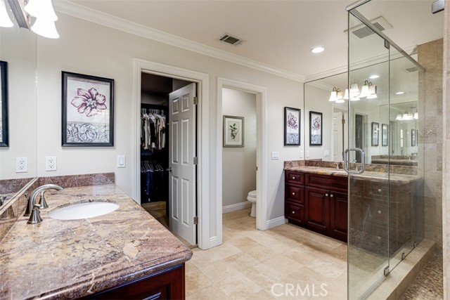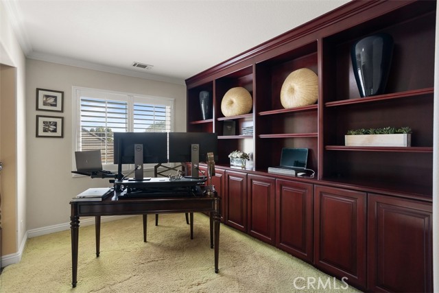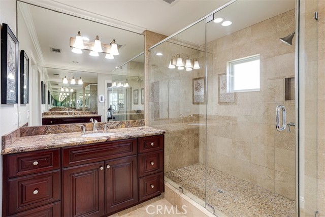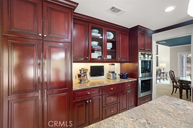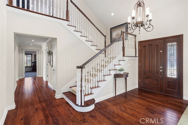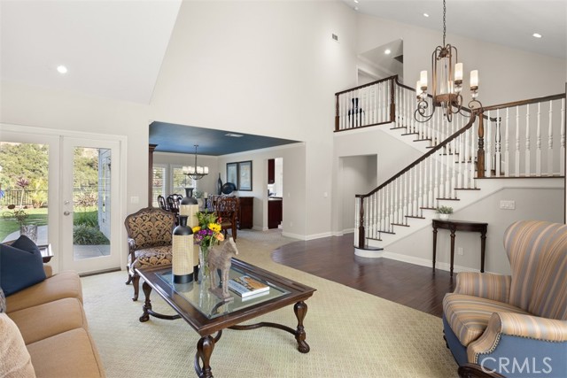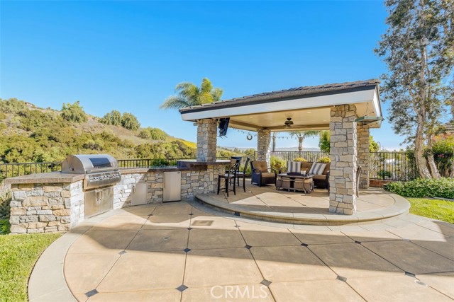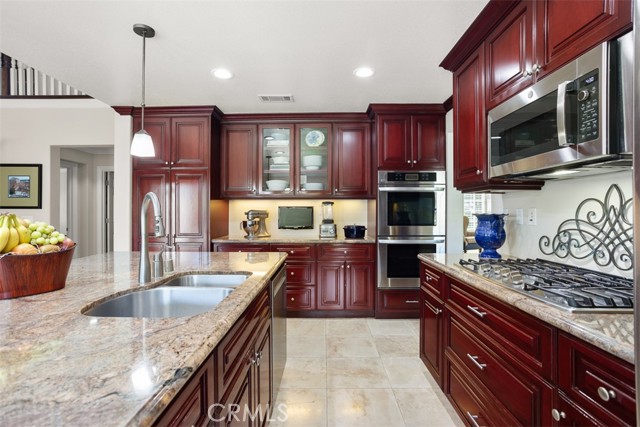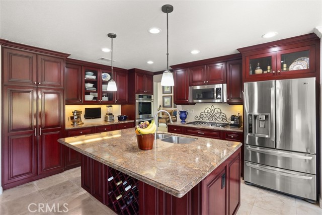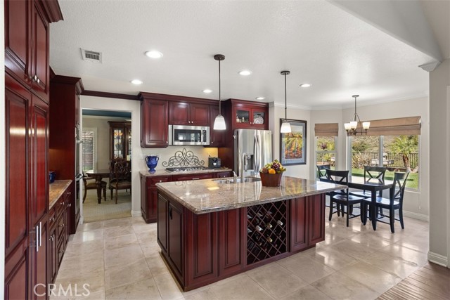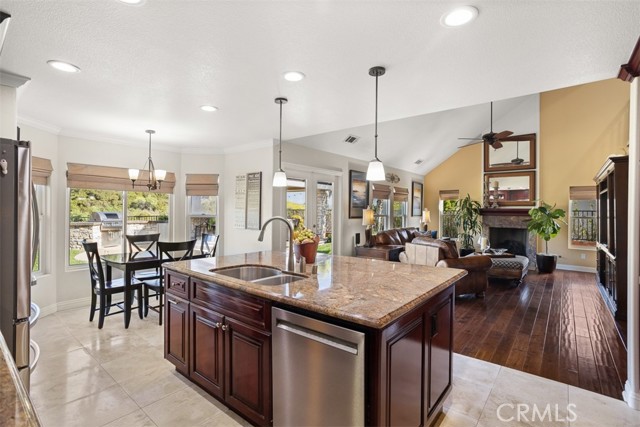 First time on the market! This custom-built estate in Yorba Linda offers privacy, quality craftsmanship, and panoramic canyon views all set on a sprawling 20,000+ sq ft lot in one of California s safest and most desirable communities. With 4 bedrooms, 3 bathrooms, and approximately 3,000 sq ft of thoughtfully designed living space, this home is rich in luxurious details. From the moment you enter, you re greeted by two-story vaulted ceilings, a Venetian plaster accent wall, antique walnut distressed hardwood flooring, and a striking 75-lb optic crystal chandelier. The formal living room features a large bay window with views of the bridal trail and opens to the elegant dining room, which offers ample space for entertaining with canyon vistas and a dimmable chandelier. Plantation shutters throughout the home enhance its classic appeal. The gourmet kitchen is outfitted with solid cherrywood cabinetry, granite counters (Typhon Bordeaux), a large island with seating, soft-close drawers, a built-in wine rack, and top-tier appliances including an LG double oven, 5-burner cooktop, KitchenAid dishwasher, and GE microwave. The adjacent breakfast nook features a bay window that frames stunning views. Open to the kitchen, the family room is the perfect gathering space, highlighted by vaulted ceilings, a solid cherrywood and Italian marble fireplace (Opera Fantastico), French doors to the backyard, and built-in surround sound wiring. Upstairs, the versatile library loft overlooks the family room and is fully wired for a professional office setup with built-in cabinetry. The primary suite is a tranquil retreat with vaulted ceilings, bay window seating, canyon views, walk-in closet with built-ins, and a spa-like bathroom featuring travertine finishes and dual marble vanities. The backyard is an entertainer s dream featuring a raised 30-ft cabana with built-in TV, WiFi, Fire Magic BBQ island, circular seating bar, and granite tile counters. Multiple fountains, lamp posts, and a flagstone path lead to "Pointe Vista," a serene canyon-view retreat planted with aromatic florals and roses. Additional features include a 3-car garage with built-in storage, extensive data and coax wiring, copper plumbing, crown molding, travertine flooring, and dual-pane windows. Located near 30+ parks, 100 miles of trails, and top-ranked public and private schools this is a rare opportunity to own a legacy home in the heart of Yorba Linda.Interested in this Listing?