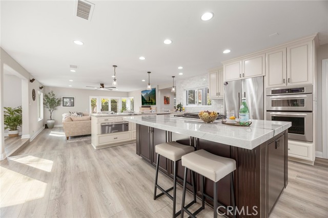 Newly Remodeled with Over $300,000 in Upgrades! Welcome to this gorgeous, open-concept home in one of Yorba Linda s most sought-after neighborhoods. Listing Price is Ranged: $2,699,000 to $2,750,000. This home sits on a spacious, park-like lot, offering elegance, privacy, and plenty of room to enjoy. As you approach, a charming front courtyard with a covered walkway and brick embellishments leads you to a private double-door entry. Step inside to soaring ceilings and brand-new cathedral-height windows, filling the home with natural light. Formal Living Room, Grand in size, featuring a stunning Eldorado rough-cut stacked stone fireplace from floor to ceiling. Formal Dining Room, Centrally located, open to the Living Room, Family Room, and Kitchen, surrounded by picturesque windows overlooking the serene backyard. Dream Kitchen, Completely remodeled with two-tone cabinetry, quartzite countertops, high-end stainless-steel appliances, and a massive peninsula seating for six. A large six-burner cooktop island with additional seating and an in-kitchen dining is perfect for entertainment. Remodeled Laundry Room/Butler s Pantry, Featuring a coffered ceiling & ample space for a second refrigerator. Family Room, Showcasing a stacked stone fireplace, a wet bar with a wine refrigerator, and direct backyard access. Main Floor Study, Optional Bedroom, With access to a full bathroom. Second Level Features, Dramatic Curved Staircase leading to a catwalk-style hallway- separates the Primary Suite from the additional bedrooms. Primary Suite, is a grand retreat with vaulted ceilings, a built-in entertainment center with a refrigerator, & ample space for a sitting area. Luxury Primary Bath, Featuring a spa-like ambiance with a freestanding tub, bay window views of the backyard, an oversized dual-head shower, and a seamless glass enclosure. The walk-in closet is a dream. Three Additional Bedrooms, Spacious with unique architectural accents from the gable roofline and vaulted ceilings. Upstairs Hall Bath, Includes a walk-in shower & dual-sink vanity. Outdoor Oasis, is Resort-style backyard with a pool, spa, and lush landscaping perfect for entertaining. High-Value Upgrades Include: Upgraded electrical panel, Owned Solar System with two Tesla Back Up batteries, Brand-new windows, New flooring, New landscape lighting, mature trees, Water softener system, private cul-de-sa, option for multiple RV parking. Truly a one-of-a-kind home blending luxury, elegance, and modern upgrades.Interested in this Listing?