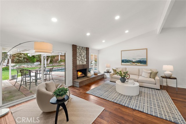 Embrace the best of Southern California living in this stunning single-level ranch pool home on a quiet cul-de-sac in Yorba Linda. This 3-bed, 2-bath home offers 2,202 SF of well-designed living space on a spacious 10,086 SF lot. The expansive great room features beamed cathedral ceilings, a stone fireplace, and a built-in bar perfect for entertaining. The kitchen boasts granite countertops, stainless steel appliances, new cooktop and range, a walk-in pantry, and custom oak cabinetry. Enjoy beautiful tile and hickory hardwood flooring throughout, plus a large living room with vaulted ceilings and a second fireplace. The primary suite offers mirrored wardrobe doors and a remodeled bath with dual copper sinks and a walk-in shower. The third bedroom is ideal as an office or guest room. Step outside to your private backyard oasis with a heated in-ground pool/spa, waterfall feature, covered patio, trellis, and built-in BBQ island with granite countertops. Other highlights include an attached 3-car garage, double-pane windows and sliders, crown molding, skylights, and a custom solid wood/glass entry door. No HOA or Mello Roos. Located near award-winning schools, shopping, and dining. A must-see!Interested in this Listing?