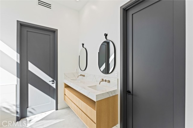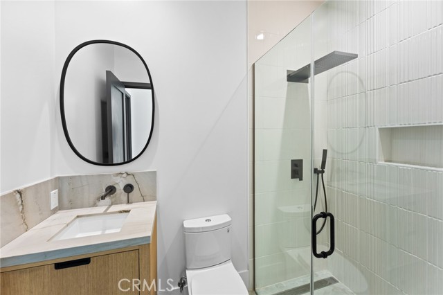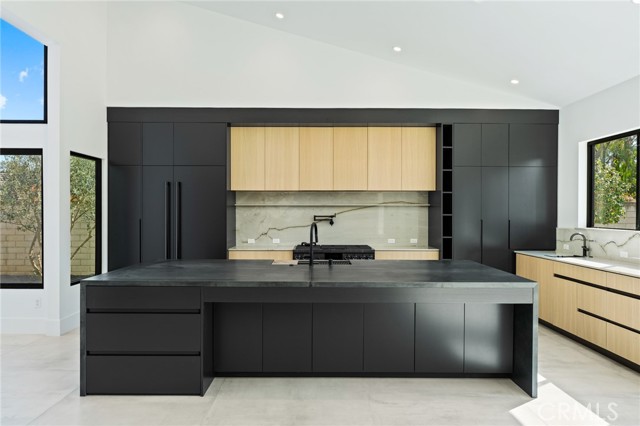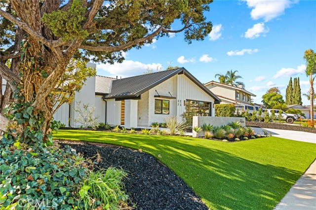 A bespoke modern architectural masterpiece, newly constructed from the prior footprint. This single level 3574 square foot home is almost entirely NEW CONSTRUCTION, retaining only a portion of the existing front and side walls. It includes an attached 800 square foot ADU with a separate address. The property boasts new foundation, windows, framing, massive modern metal roof, plumbing, electrical systems, hand-selected wood veneer custom millwork, level 5 drywall, chevron wood and 48-inch tile flooring, modern interior gas fireplace, glass garage door, frameless showers with curbless entry, new 6 car driveway, and designer finishes throughout. The chef-inspired kitchen features an expansive 12-foot island, Dacor appliances, a 48-inch refrigerator freezer, main modern farmhouse sink with separate vegetable sink, and quartzite stone countertops. The great room includes a custom TV wall with built-in shelves, additional cabinetry, and a separate wet bar with granite countertop and cantilevered wood bar top. The front of the home is adorned with stone veneers, wood paneling, a grand mahogany and glass entry door, and custom aluminum window valance. The side yard opens through large glass 4 panel sliding doors to a plumbed natural gas firepit, ideal for entertaining guests. The ADU is attached but features a private grand entry door on the side of the property. It offers its own kitchen with all new appliances and island, spa-inspired bathroom, 16-foot ceilings, walk-in closet, its own laundry closet, and a separate address. The ADU is ready to be a second master bedroom, in-law suite, or its own rental income opportunity. This residence includes two tankless gas water heaters and two HVAC units, ensuring comfort and efficiency. Only the finest designer finishes are found throughout this home, with no expense spared. All work was completed with Orange County permits over a period of 16 months. This home is truly remarkable.Interested in this Listing?
