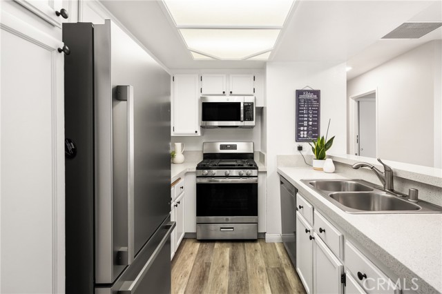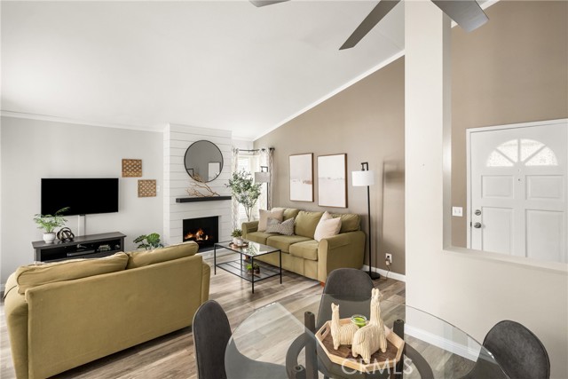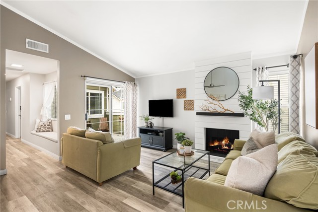 Tucked away in the peaceful canyons and surrounded by lush trees, this beautiful upstairs, renovated 2-bedroom, 2 bathroom condo in Yorba Linda Villages offers the perfect mix of modern comfort. This spacious layout, is an end unit that let's in tons of light and creates a brite and airy vibe! The remodeled kitchen has a newer gas stove and microwave, pull out drawers in the cabinets with an opening to enjoy a view of your patio balcony. From your living room step out to your private patio balcony to relax and enjoy the fresh air and sunshine. The living room has a cozy gas fireplace, crown moldings and custom paint. Heading down the hallway is a very cute window seating area to again, enjoy the patio balcony. The first bedroom boasts a 3 door oversized closet, window blinds, ceiling fan and laminate flooring. The hall bath has a tub/shower and has been remodeled. The large primary bedroom with crown molding, custom shutters, ceiling fan, laminate flooring and a large walk in closet. The primary bathroom remodeled with a separate toilet room and a large walk in shower. The home has been updated with style and thoughtfulness to ensure a comfortable living space. In this quite community you can enjoy the sparkling pool, spa, clubhouse and tot lot area. Located next to walking trails, Santa Ana River Trail for biking and walking. Yorba Linda award winning school district. Plus, a detached 2-car garage with plenty of storage cabinets and parking. This condo is the ideal retreat for anyone looking to enjoy a peaceful lifestyle with easy access to nature and all the comforts of modern living!Interested in this Listing?