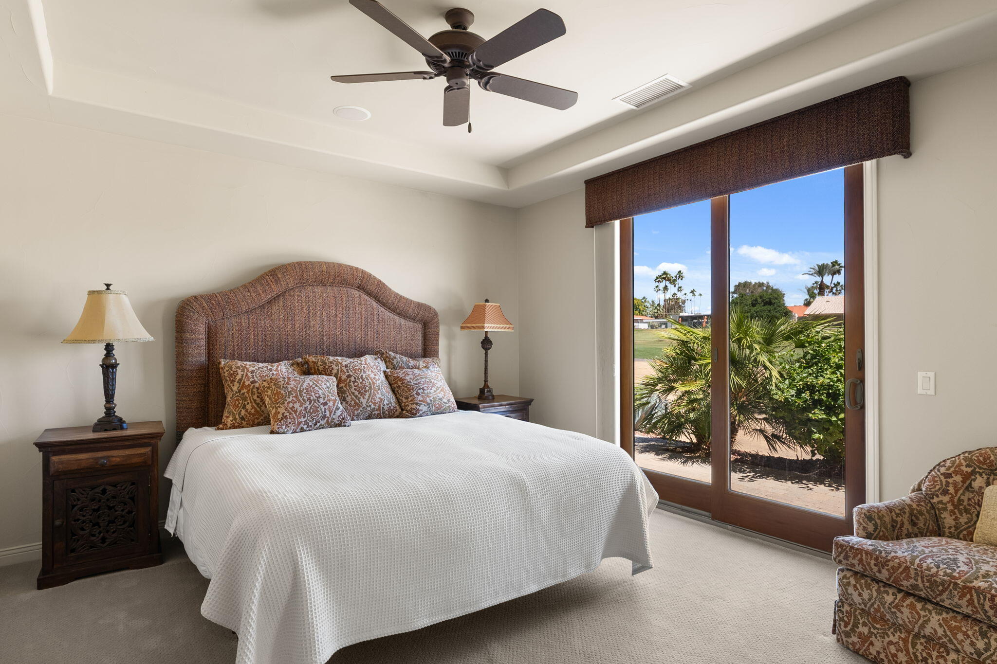 Located in the exclusive gated enclave of Castle Harbor--an esteemed collection of estate properties--this custom-built residence is positioned on a lot that juts out to capture panoramic views of the seventh hole of the Classic Course at Bermuda Dunes Country Club.Highlights include a spacious and private outdoor area featuring a PebbleTec pool and spa with waterfall features, an entertainer's bar, and a large fireplace gathering space. A wraparound back patio provides the perfect vantage point for watching golfers or simply spreading out and relaxing.The expansive primary retreat boasts a fireplace, sitting area, dual walk-in closets, and a fitness room. A long driveway creates a grand entrance to the three-car garage. Inside, the home offers a generous living space with a striking fireplace and an inviting bar with ample seating. The chef's kitchen features stainless steel appliances, walk-in pantry, and abundant counter and storage space. Additional amenities include a huge laundry room and a detached casita with kitchenette, located just steps from the pool.Spanning over 4,300 square feet, this four-bedroom, five-bathroom residence was thoughtfully designed for comfortable living and seamless entertaining. It is located within the IID district for lower electricity costs, with no membership requirement for BDCC. The property is also conveniently close to Palm Desert, La Quinta, and Indian Wells, so there is no shortage of shopping and dining optionsInterested in this Listing?