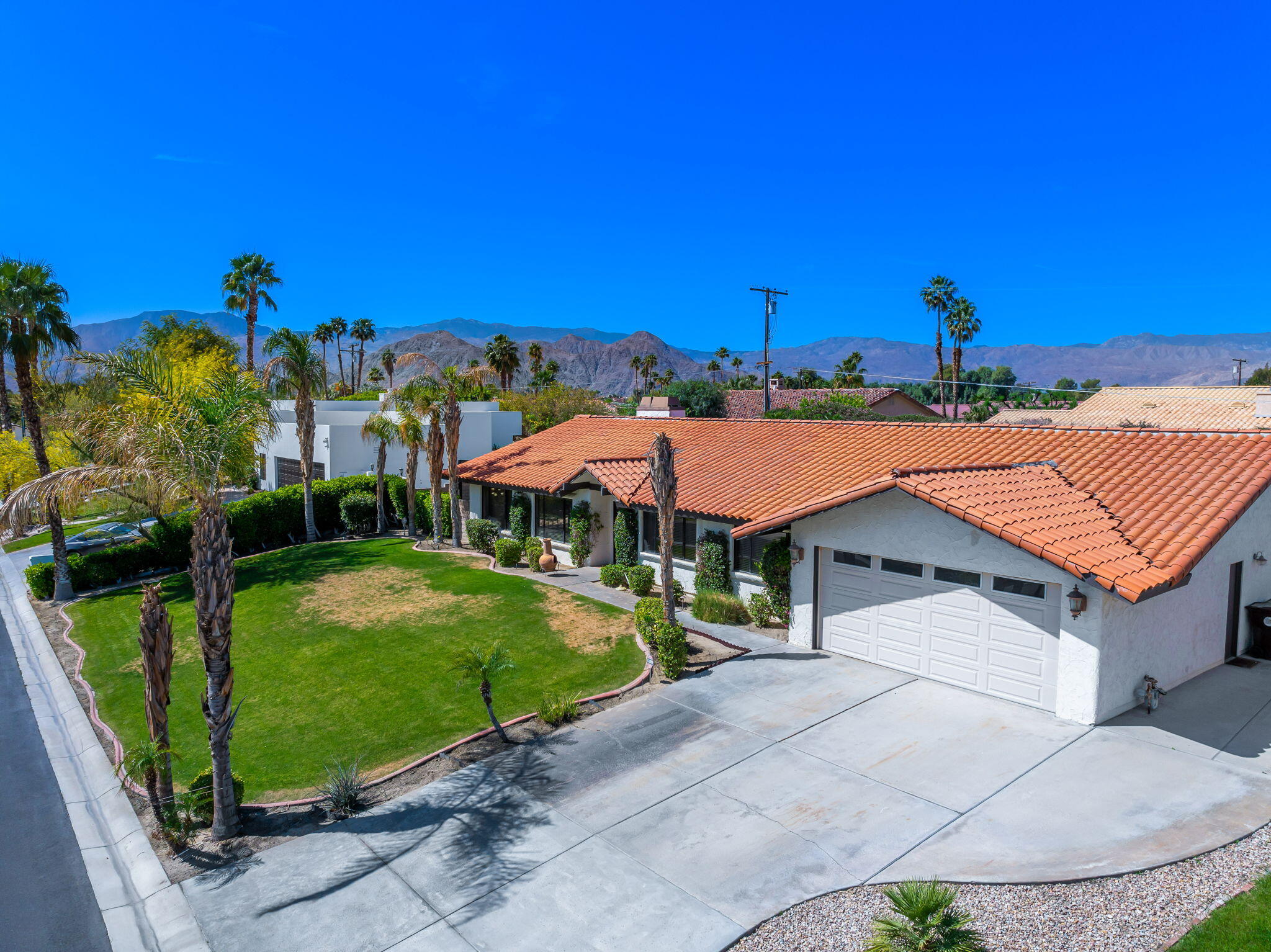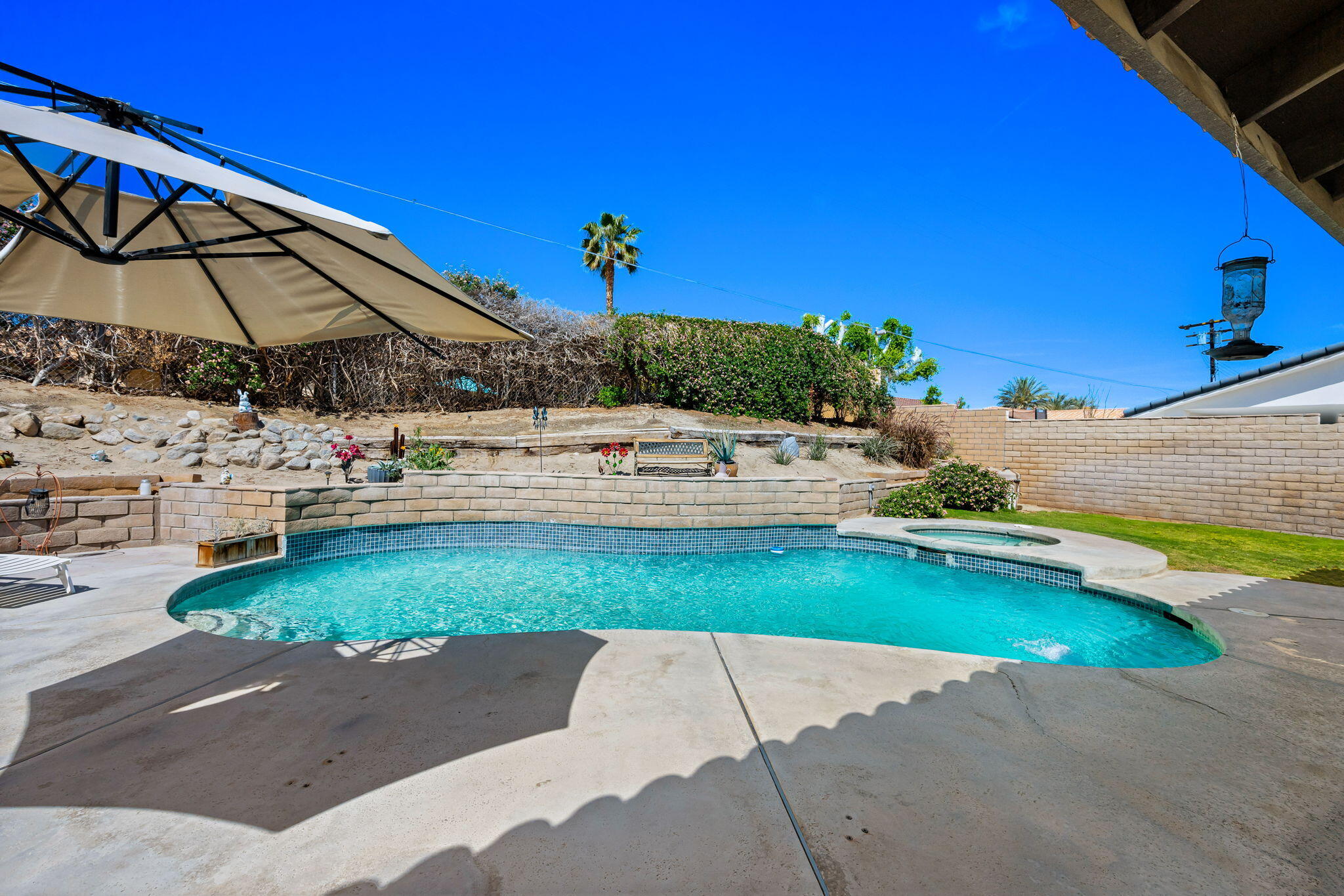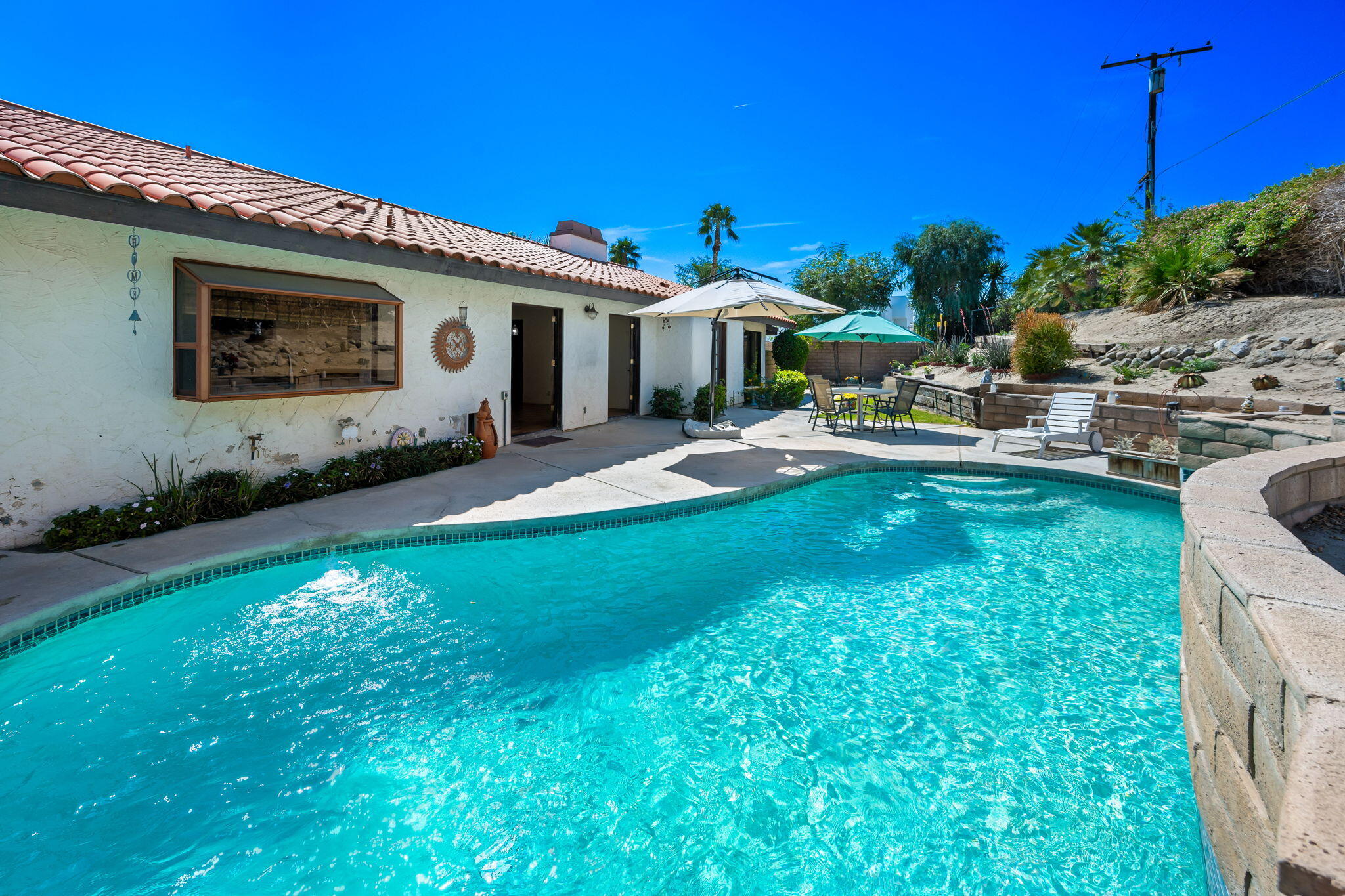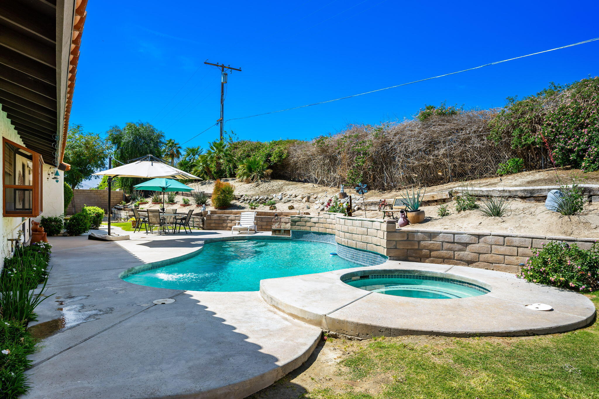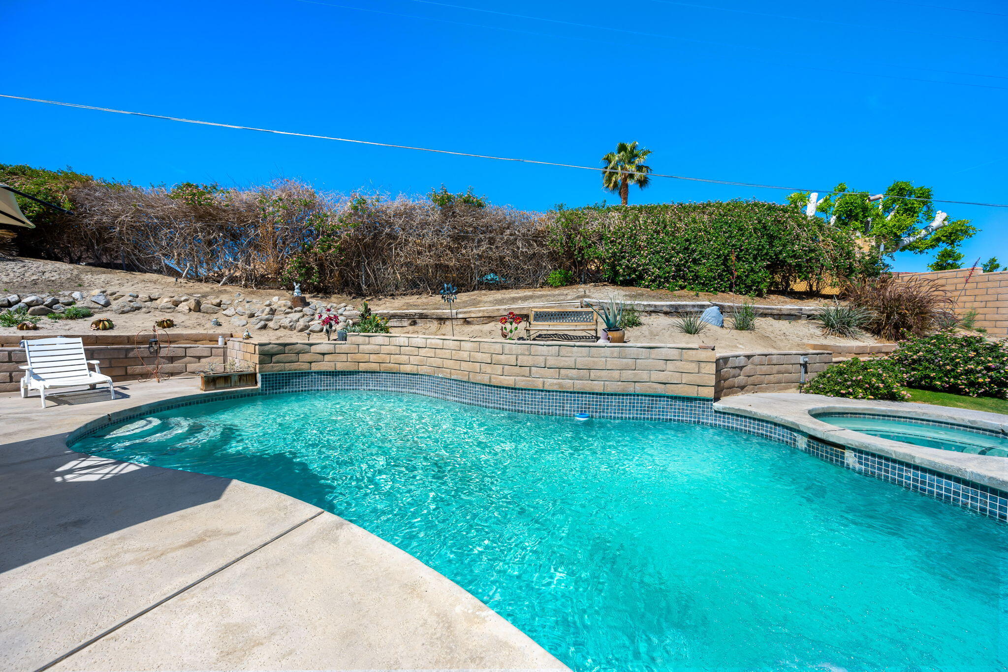 Welcome to Bermuda Dunes Country Club!!! This beautiful custom built home resides on the desirable street of Saint George within the club. Featuring 3 large bedrooms, 2 1/2 baths, 2,253 square feet of living space, 3 car attached tandem garage, additional parking on the side of the home, and a swimming pool and jacuzzi is just some of the features that makes this a must see. As you enter the double door entrance you are immediately welcomed into your living room featuring polished concrete floors, huge 10 foot slider which paves the way to a large private side patio, two large bay windows, custom bar, vaulted ceilings and fireplace. The gourmet kitchen features stainless steel appliances, walk in pantry, large picture box window and plenty of cabinet storage space. Perfect for entertaining the dining room leads off to the expansive backyard through the two french doors. The gorgeous private pool and jacuzzi is large for the family, but with this huge lot there is still plenty of room for other activities. The side yard is large and serene with its vast patio cover providing shade for outdoor meals or a secondary entertaining area. The primary suite features a fireplace, 3 large sliding glass doors, vaulted ceilings, walk in closet, double sink vanity, and a large shower with entrance to the backyard. This home is an oasis within the desert with it's quiet country club location yet close to all the best activities the desert offers from tennis tournaments, golfing, concerts, ice hockey games and hiking to name a few.Interested in this Listing?