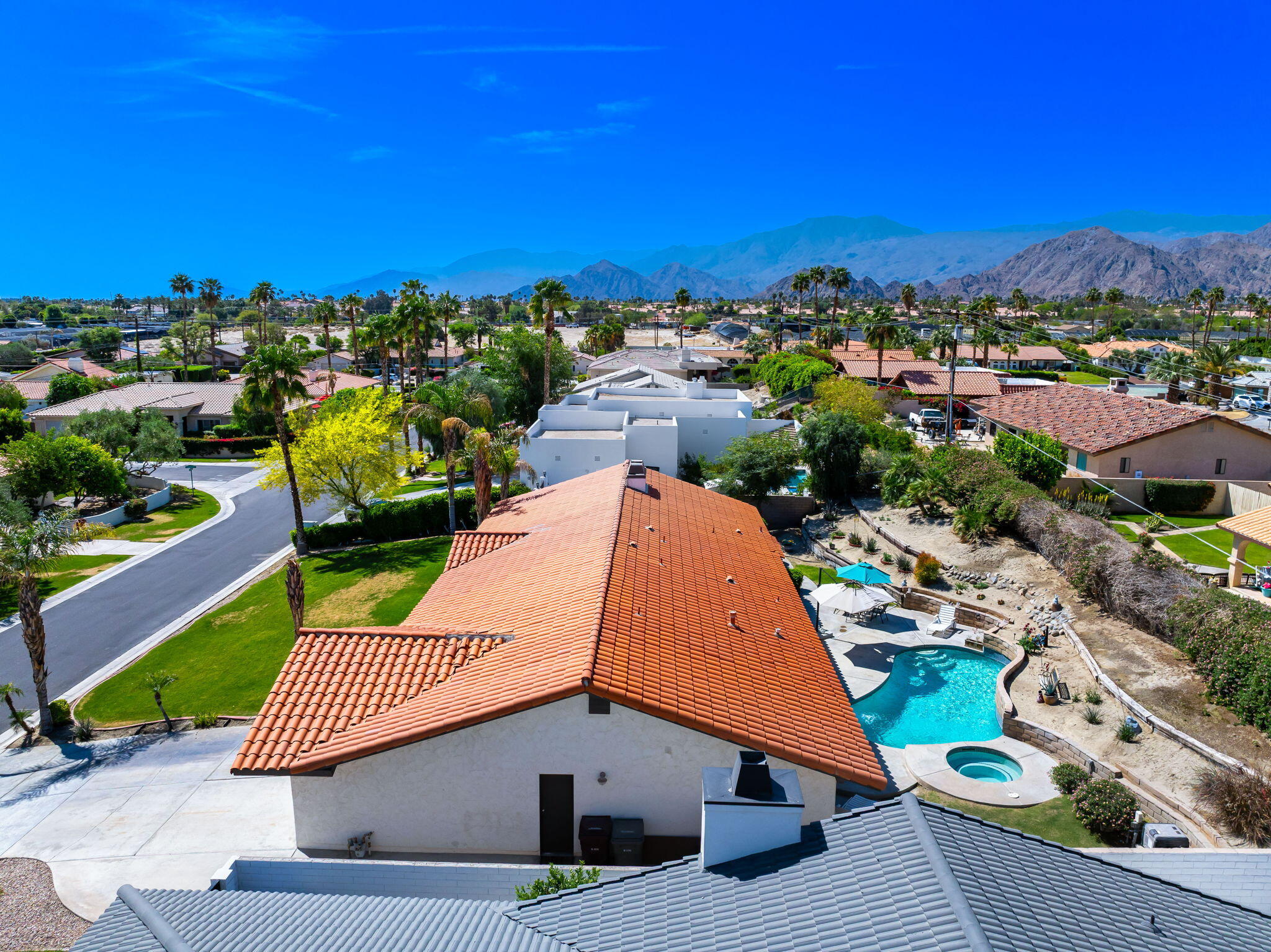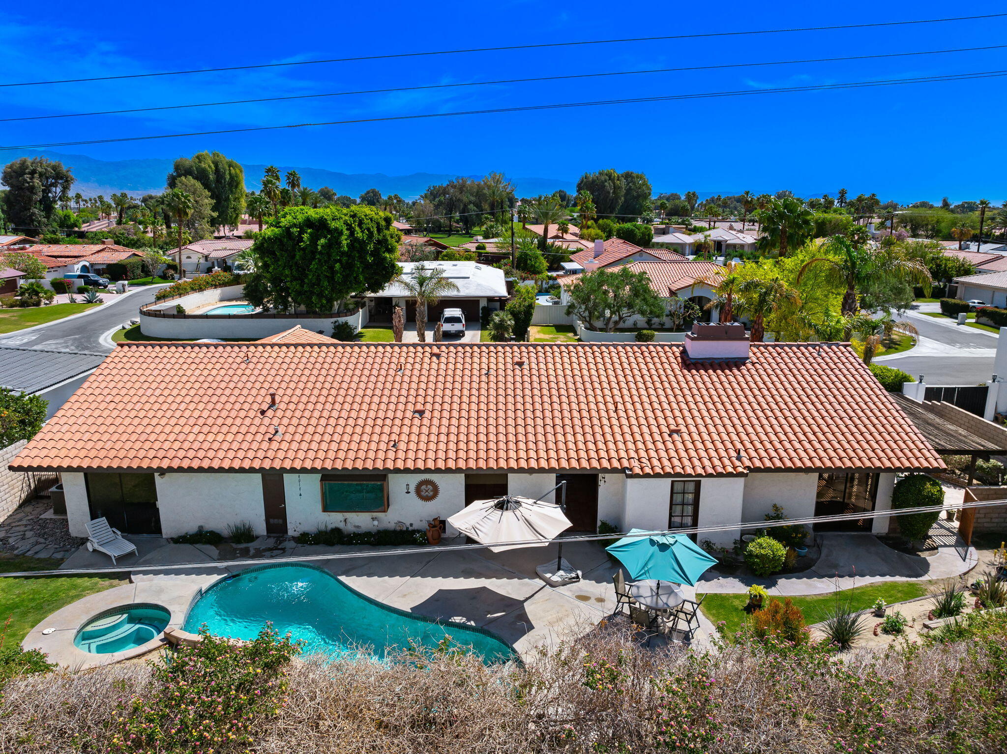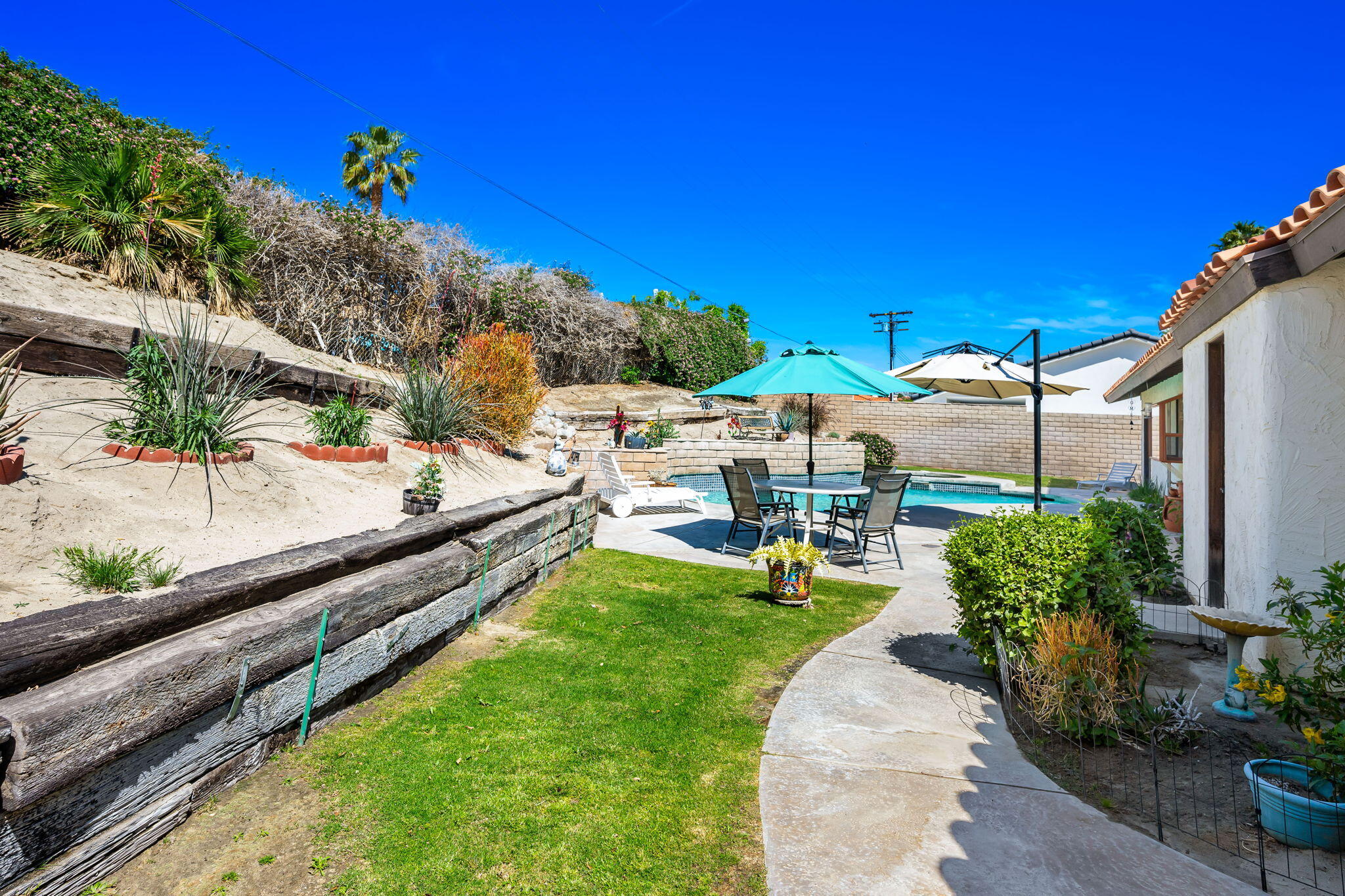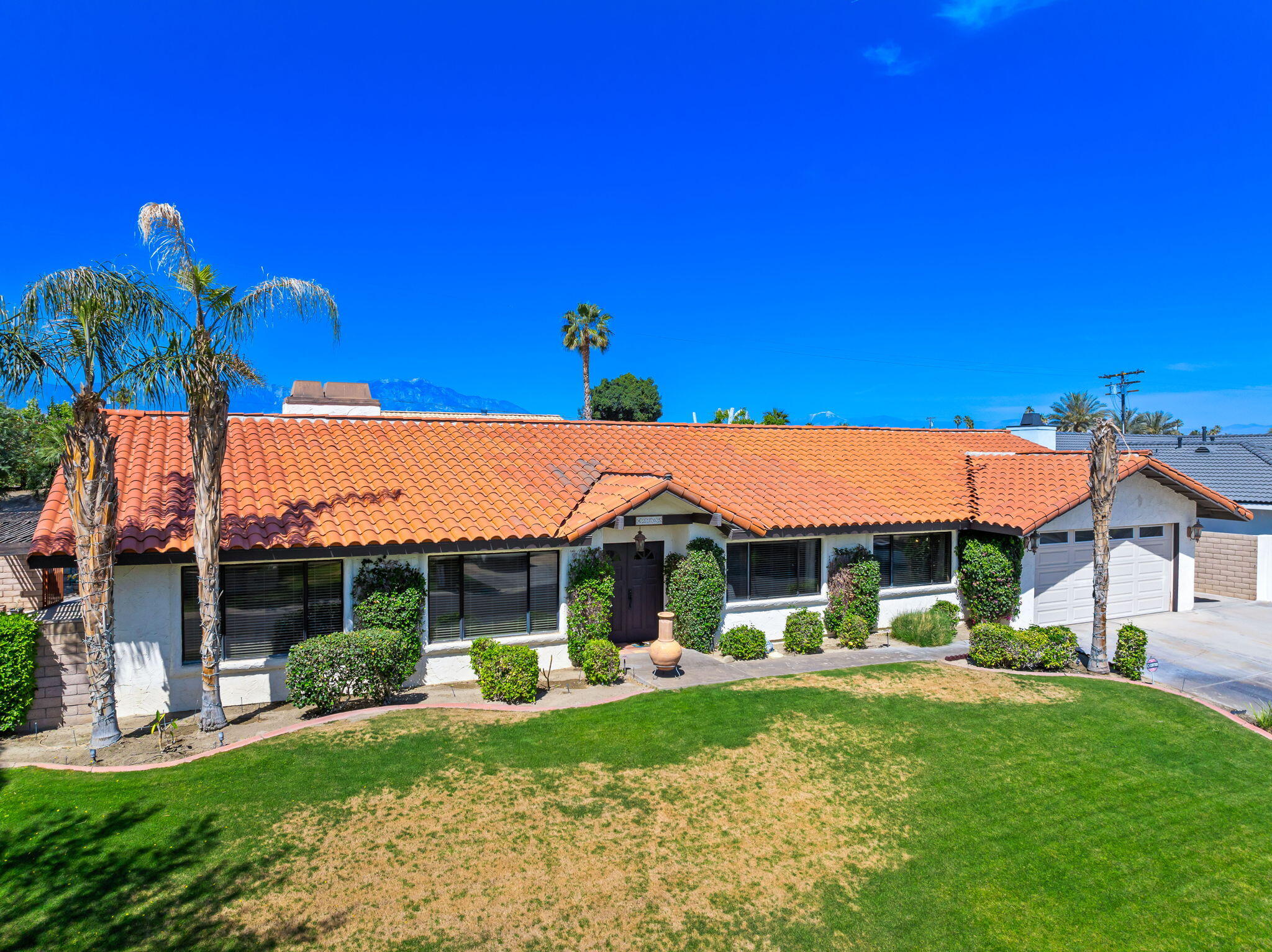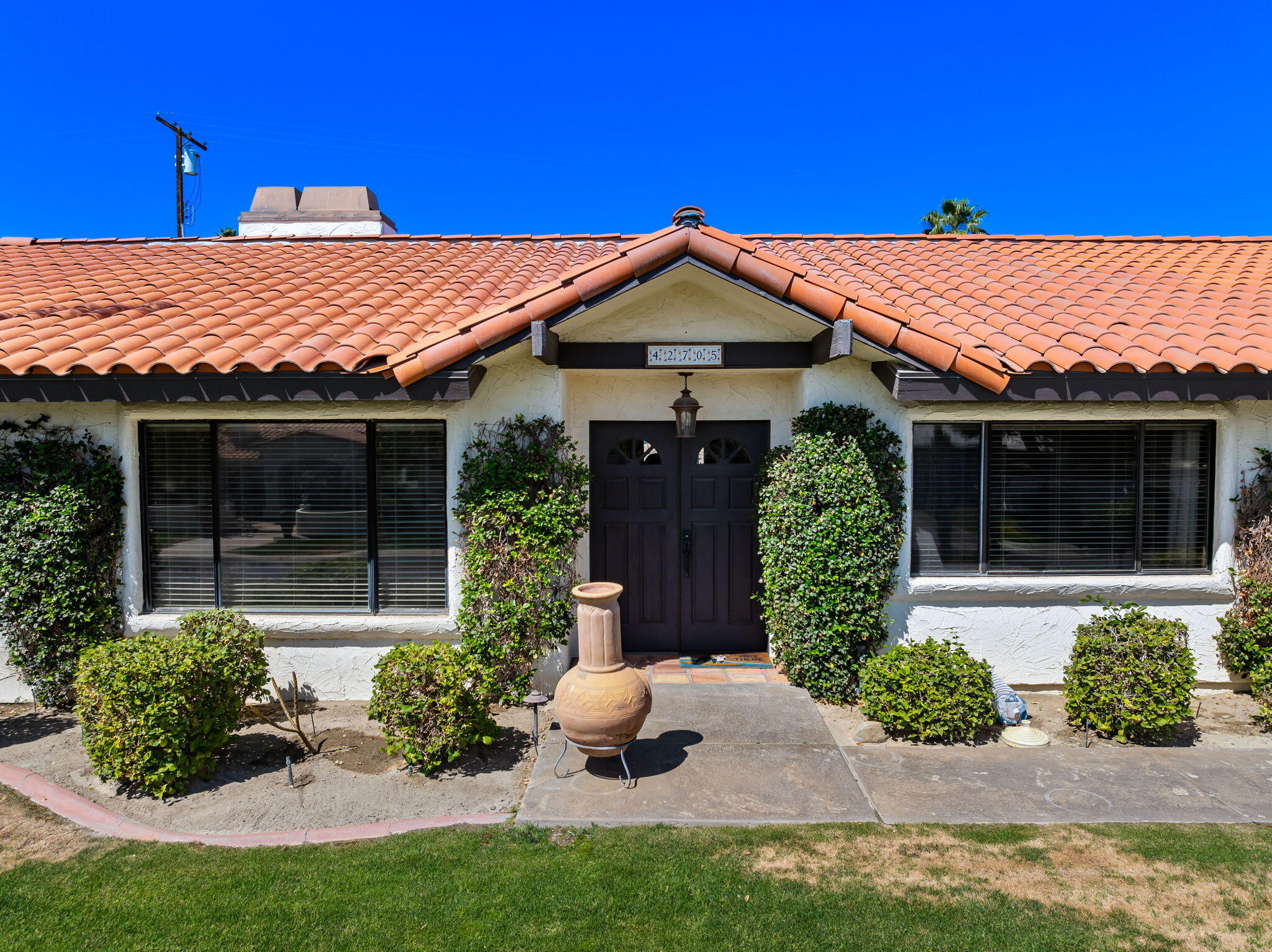 Welcome to Bermuda Dunes Country Club!!! This beautiful custom built home resides on the desirable street of Saint George within the club. Featuring 3 large bedrooms, 2 1/2 baths, 2,253 square feet of living space, 3 car attached tandem garage, additional parking on the side of the home, and a swimming pool and jacuzzi is just some of the features that makes this a must see. As you enter the double door entrance you are immediately welcomed into your living room featuring polished concrete floors, huge 10 foot slider which paves the way to a large private side patio, two large bay windows, custom bar, vaulted ceilings and fireplace. The gourmet kitchen features stainless steel appliances, walk in pantry, large picture box window and plenty of cabinet storage space. Perfect for entertaining the dining room leads off to the expansive backyard through the two french doors. The gorgeous private pool and jacuzzi is large for the family, but with this huge lot there is still plenty of room for other activities. The side yard is large and serene with its vast patio cover providing shade for outdoor meals or a secondary entertaining area. The primary suite features a fireplace, 3 large sliding glass doors, vaulted ceilings, walk in closet, double sink vanity, and a large shower with entrance to the backyard. This home is an oasis within the desert with it's quiet country club location yet close to all the best activities the desert offers from tennis tournaments, golfing, concerts, ice hockey games and hiking to name a few.Interested in this Listing?