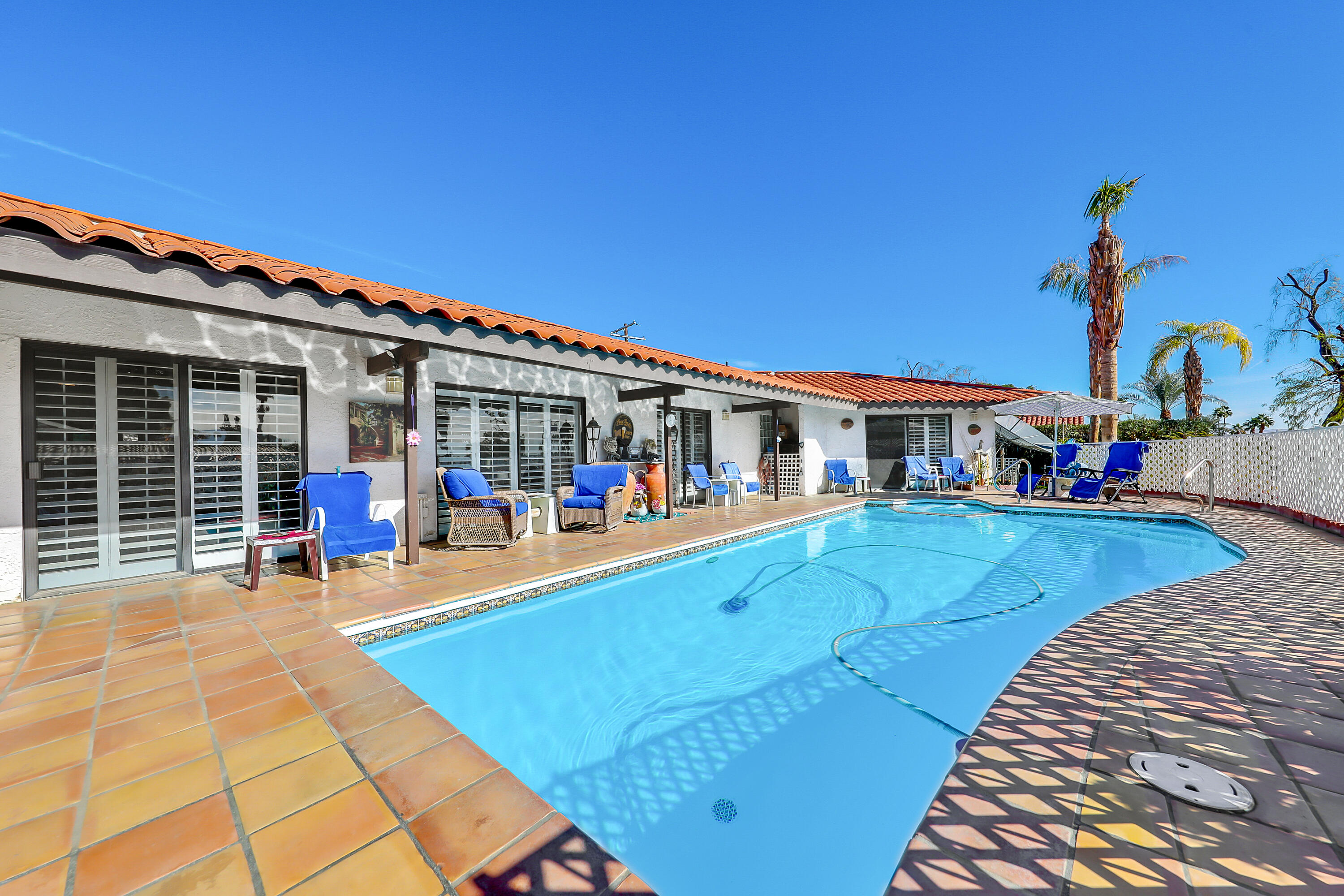 Escape to Elevated Elegance: Your Desert Oasis Awaits!Nestled on a sprawling, elevated corner lot in the prestigious Bermuda Dunes Country Club, this pristine 2,505 sq. ft. residence offers a lifestyle of refined comfort and breathtaking mountain views. Step into a world of thoughtful upgrades and meticulous attention to detail, where every corner exudes charm and sophistication. Imagine culinary adventures in the remodeled kitchen, boasting sleek Quartz countertops and newer appliances, nestled up to the expansive family room, warmed by a cozy fireplace. Sunlight streams through skylights in the dining room, illuminating the elegant Stanfield wood shutters that adorn the windows.This home is designed for effortless living, with a varly recent updated A/C system for the front zone and back system , ensuring year-round comfort. The Texas-sized master suite, a true sanctuary, features a private slider to the sparkling, renovated pool and spa, where you can soak in the panoramic mountain vistas. The master bath is a spa-like retreat, with a remodeled shower featuring dual shower heads and a glass block window.Guests will feel right at home in the oversized second bedroom with its private patio, or in the comfort of the second bathroom's Safe Step Jacuzzi walk-in tub. The third bedroom, currently a stylish office, also offers direct access to the pool area, perfect for seamless indoor-outdoor living.The outdoor space is a true desert paradise, with a recently redone pool and spa, and low-maintenance landscaping that allows you to fully enjoy the stunning surroundings. The inlarged attached 2 car garage, with its dedicated golf cart parking, provides ample storage and convenience.Enjoy the benefits of a low HOA of just $213 a month, which includes cable TV with Showtime and HBO, and internet! Plus, IID for lower electric bills! This home is also offered decorator furnished, ready for you to move in and start living your desert dream.Don't miss the opportunity to expeInterested in this Listing?