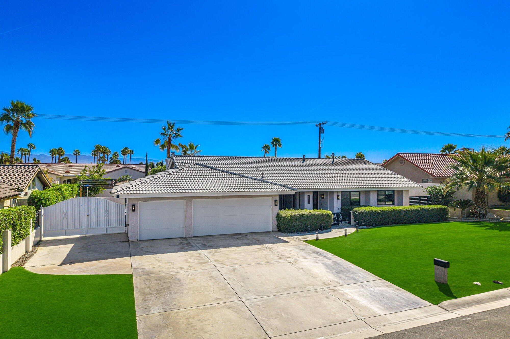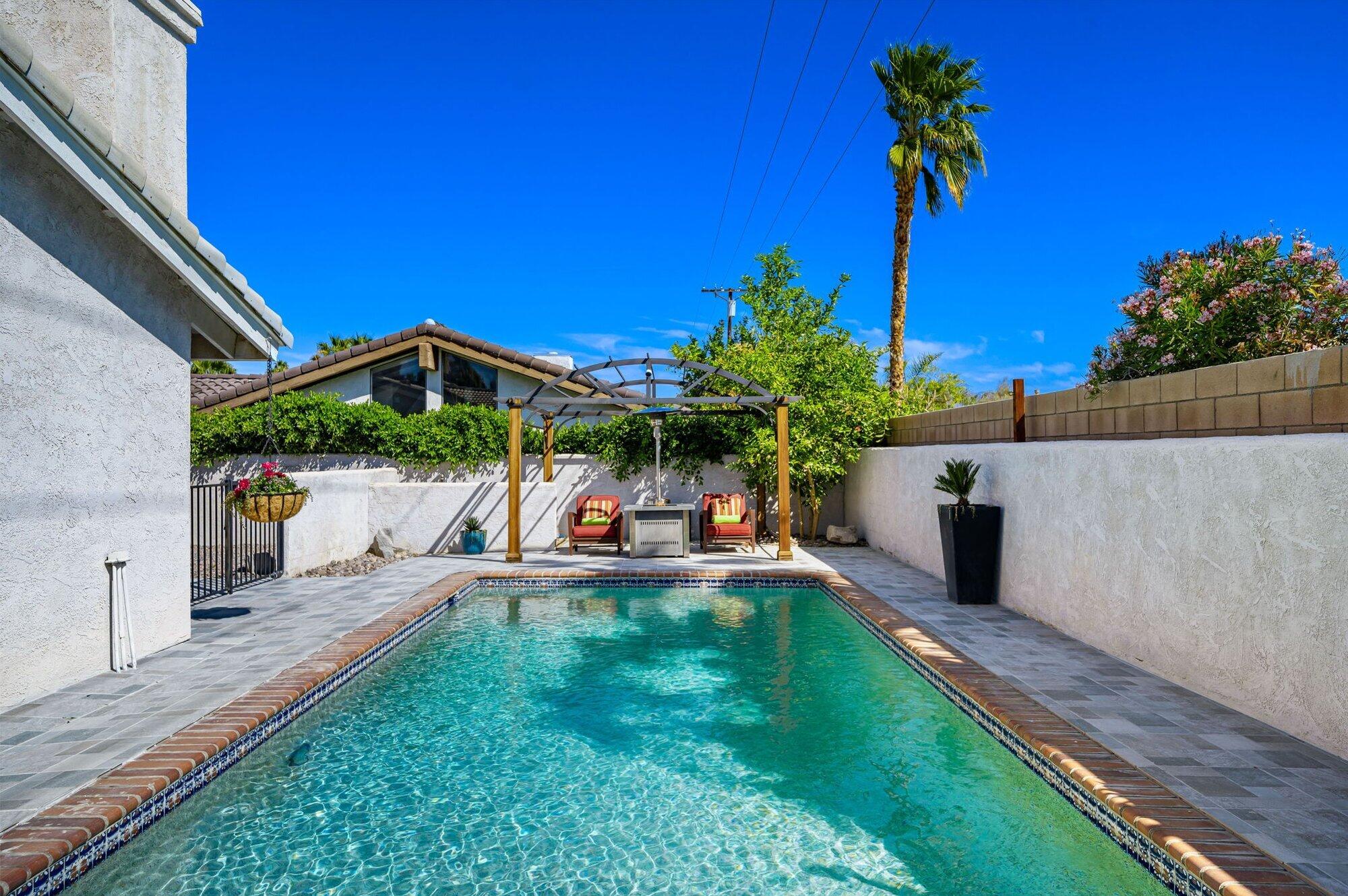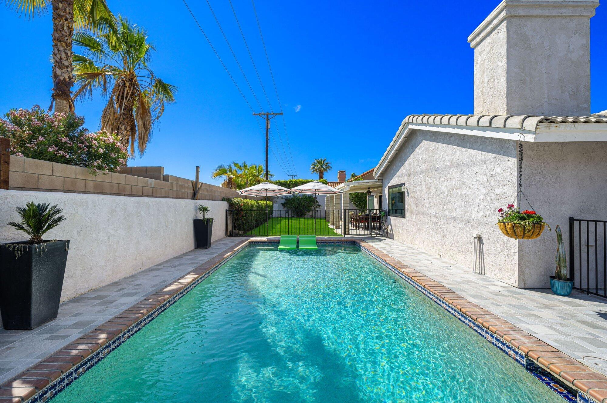 Welcome to this stunningly remodeled home, where contemporary elegance meets effortless comfort. Bathed in natural light and featuring bright, sophisticated finishes, this exquisite residence is offered furnished or unfurnished to suit your lifestyle.Set on a generous quarter-acre lot, the home boasts a spacious three-car garage and a seamless blend of modern upgrades, including a just-installed new septic tank. The all-new kitchen is a showpiece, with quartz countertops that extend into a sleek backsplash and a dramatic waterfall edge. Perfect for entertaining, the second living area features a custom dry bar complete with a beverage and wine fridge. Outside, the newly tiled, non-slip pool surround and back patio create an inviting space for relaxation and outdoor gatherings. The three well-appointed bedrooms provide comfort and privacy, with the primary suite offering direct access to the patio for a private retreat.Located just across from the lush fairways of the Lake Course's second hole, this home is nestled in the historic Bermuda Dunes Country Club--a paradise for golf enthusiasts and socialites alike. With a recently remodeled clubhouse and bar, the community offers an array of activities, with memberships available but not required. Perfectly positioned near the Acrisure Arena, premier shopping, dining, and world-class pickleball and tennis facilities, this exceptional property offers the best of desert living.Interested in this Listing?