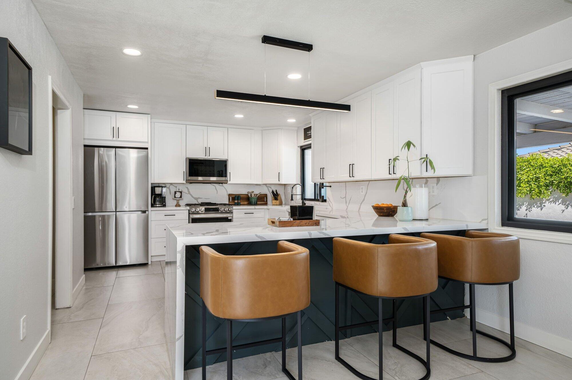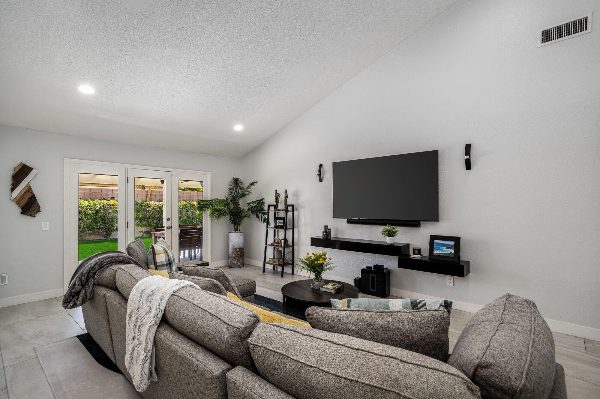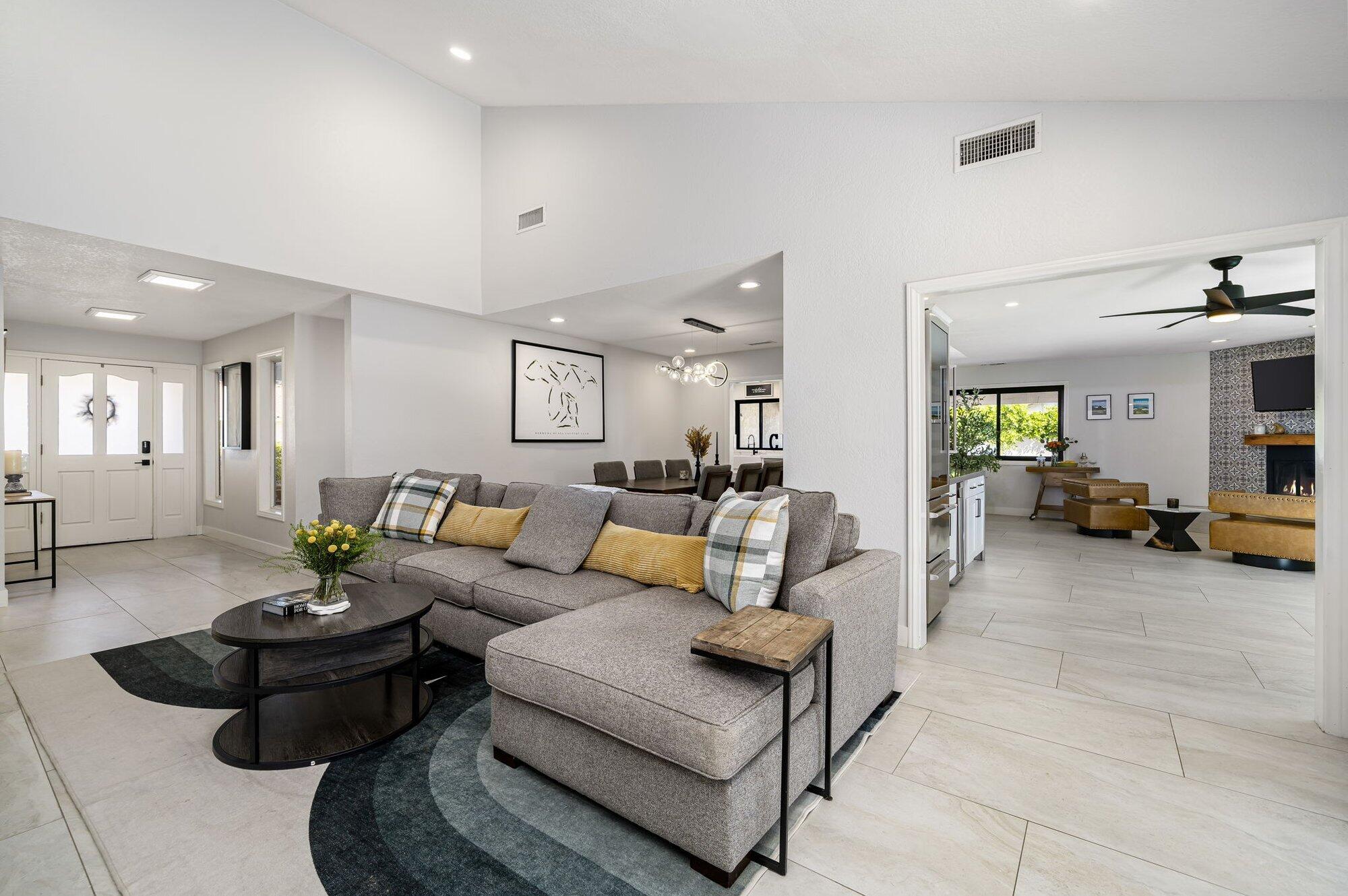 Welcome to this stunningly remodeled home, where contemporary elegance meets effortless comfort. Bathed in natural light and featuring bright, sophisticated finishes, this exquisite residence is offered furnished or unfurnished to suit your lifestyle.Set on a generous quarter-acre lot, the home boasts a spacious three-car garage and a seamless blend of modern upgrades, including a just-installed new septic tank. The all-new kitchen is a showpiece, with quartz countertops that extend into a sleek backsplash and a dramatic waterfall edge. Perfect for entertaining, the second living area features a custom dry bar complete with a beverage and wine fridge. Outside, the newly tiled, non-slip pool surround and back patio create an inviting space for relaxation and outdoor gatherings. The three well-appointed bedrooms provide comfort and privacy, with the primary suite offering direct access to the patio for a private retreat.Located just across from the lush fairways of the Lake Course's second hole, this home is nestled in the historic Bermuda Dunes Country Club--a paradise for golf enthusiasts and socialites alike. With a recently remodeled clubhouse and bar, the community offers an array of activities, with memberships available but not required. Perfectly positioned near the Acrisure Arena, premier shopping, dining, and world-class pickleball and tennis facilities, this exceptional property offers the best of desert living.Interested in this Listing?
