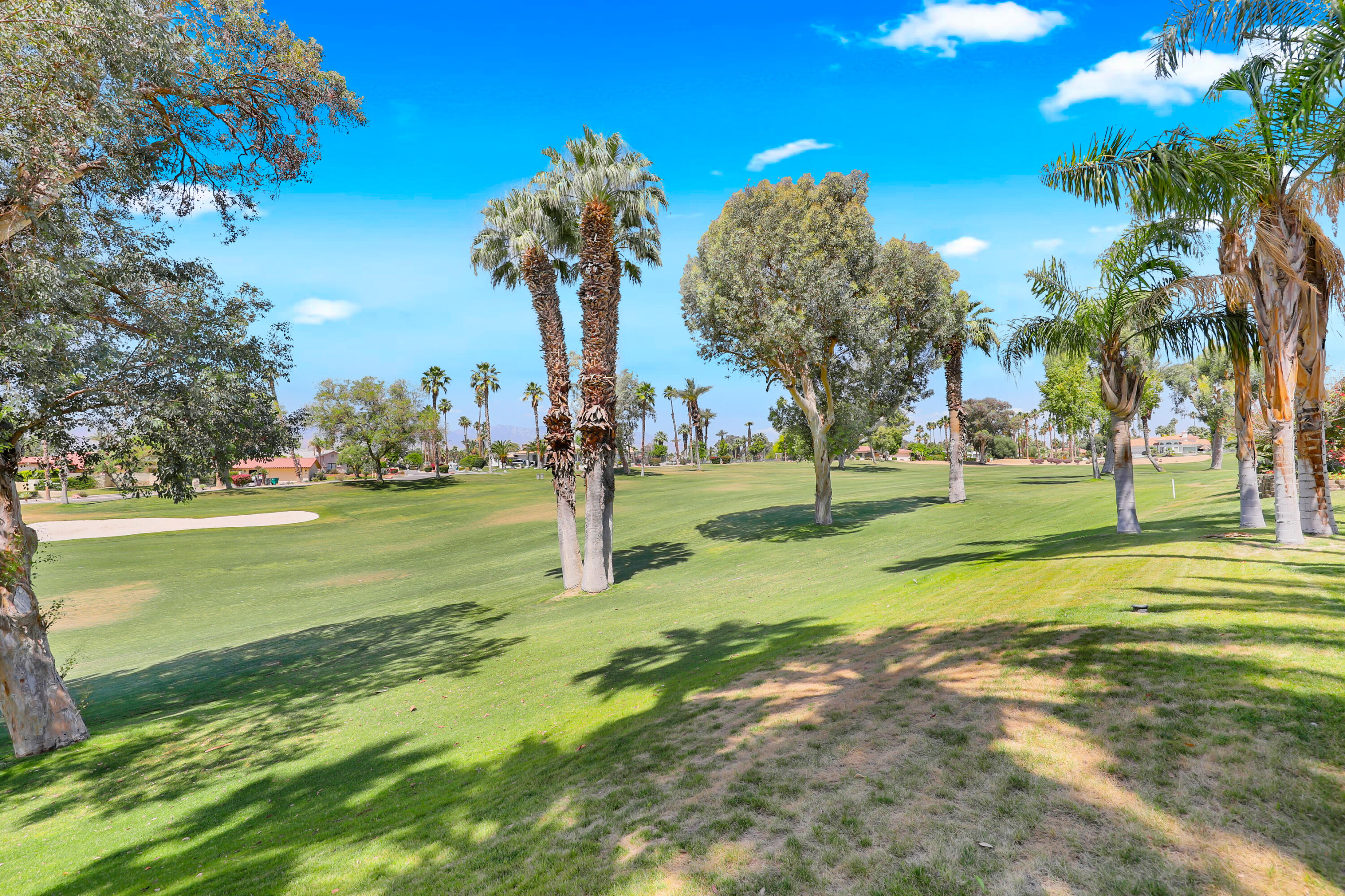 One of a kind residence located on a 13,503 sq.ft. lot with Southern views over the 3rd fairway of the Eisenhower Course. Enter through impressive metal doors to an inner Atrium that leads to stunning massive glass doors with panoramic views of the floor to ceiling windows highlighting the tropical foliage and sparkling pool/spa leading to the golf course. Wonderful use of Marble and Granite and Travertine throughout adds to the superb quality of this special home. The primary suite, with fireplace and tons of built-ins, is on one side of the home boasting a separate soaking tub and spacious shower. The other two bedrooms (one is being used as an office) have their own bathrooms.. There is also a Texas sized billiard room with granite bar that can seat at least six people. The bar is equipped with a refrigerator and a stand alone ice maker - great for entertaining and taking in the views!! The home is U-Shaped and built around the sparkling pool & spa - There is also a 1/2 bath and shower outside adjacent to the built-in BBQ. Three car garage on one side of the home plus another one-car garage on the opposite side. Low HOA of only $214 a month includes cable TV & internet with Spectrum plus 24-hour guard gated Security. IID for lower electric.Interested in this Listing?