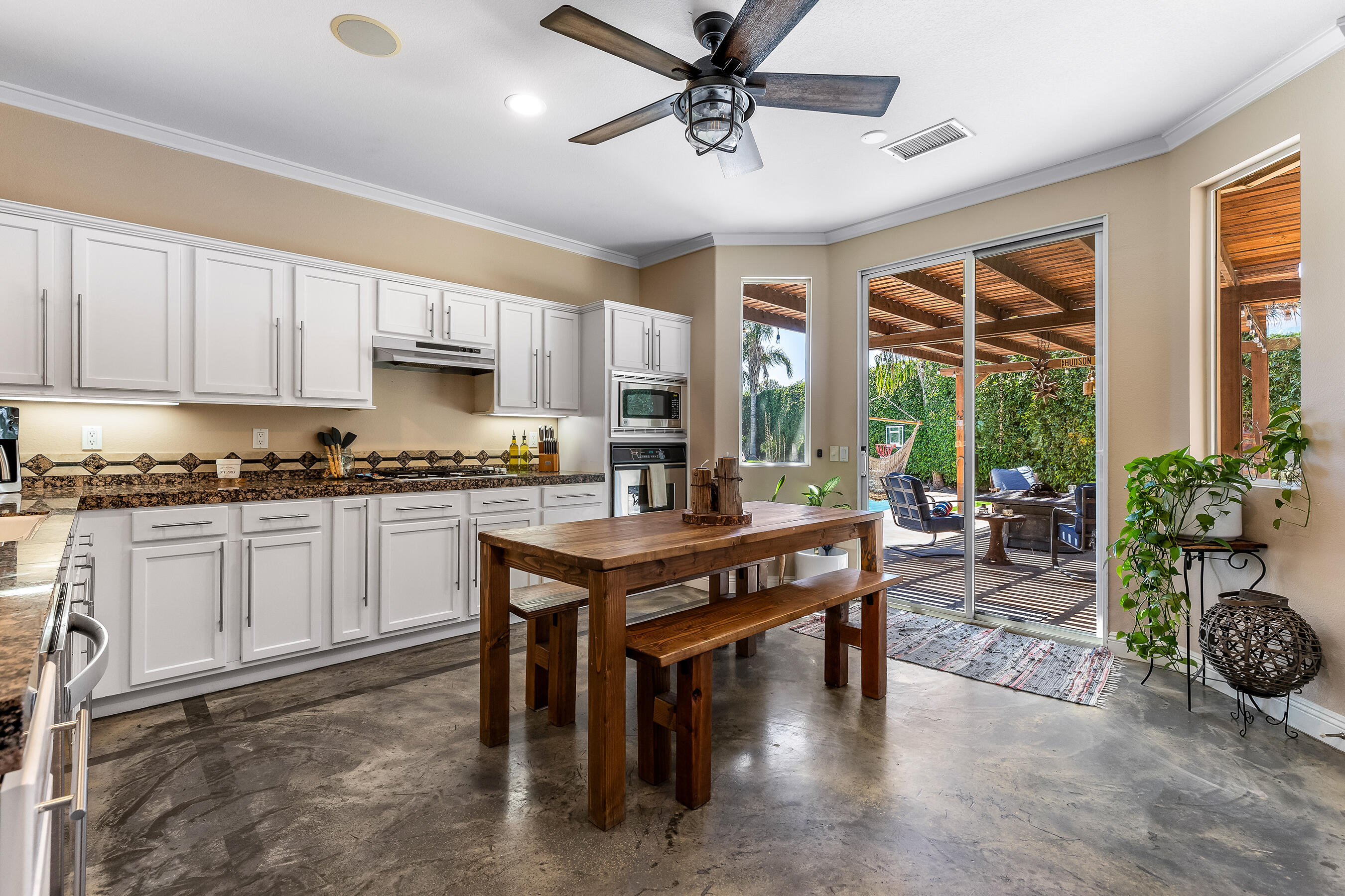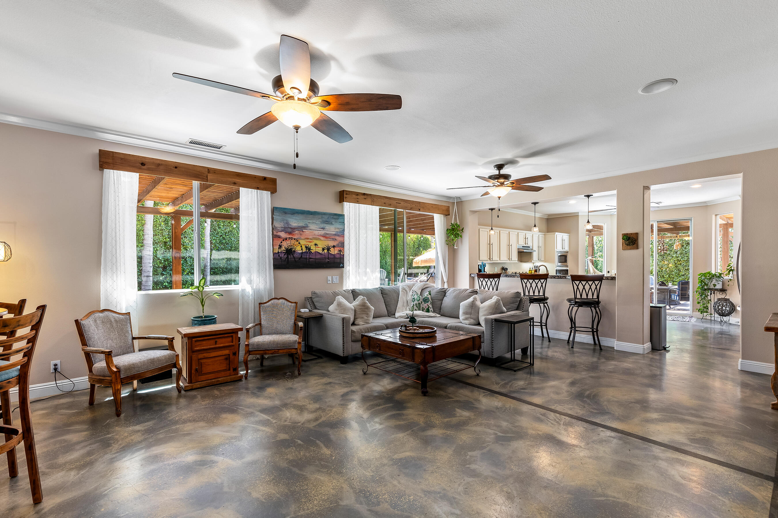 Welcome to your dream home situated on a quiet cul-de-sac! Enjoy the seamless flow of space that makes every gathering feel special and comfortable while experiencing the perfect blend of style and functionality! This lovely residence features a great room with stunning stained concrete floors, custom wall treatments and exquisite finishes throughout! The inviting and welcoming floorplan is perfect for both entertaining guests and accommodating your growing family. Step into the heart of this home, where the open kitchen awaits with stunning granite countertops, stainless steel appliances, breakfast bar seating and a walk-in pantry complemented by loads of cabinet space to keep everything organized. This kitchen is not only functional but also a perfect place to create lasting memories! The home boasts four beautifully designed bedrooms*, including a spacious primary retreat complete with dual vanities, soaking tub, step-in shower and a large walk-in closet. The guest rooms afford plenty of room, excellent closet space and the guest bathroom features dual vanities. Step outside to discover an expansive pie-shaped yard complete with an oversized private pool and spa featuring soothing waterfalls/features. Enjoy cozy evenings by the built-in firepit or let the kids explore their very own playhouse. Great location in close proximity to shopping, dining, Indian Wells Tennis Gardens, Acrisure Arena and Stagecoach/Coachella music festivals! Don't delay!Interested in this Listing?