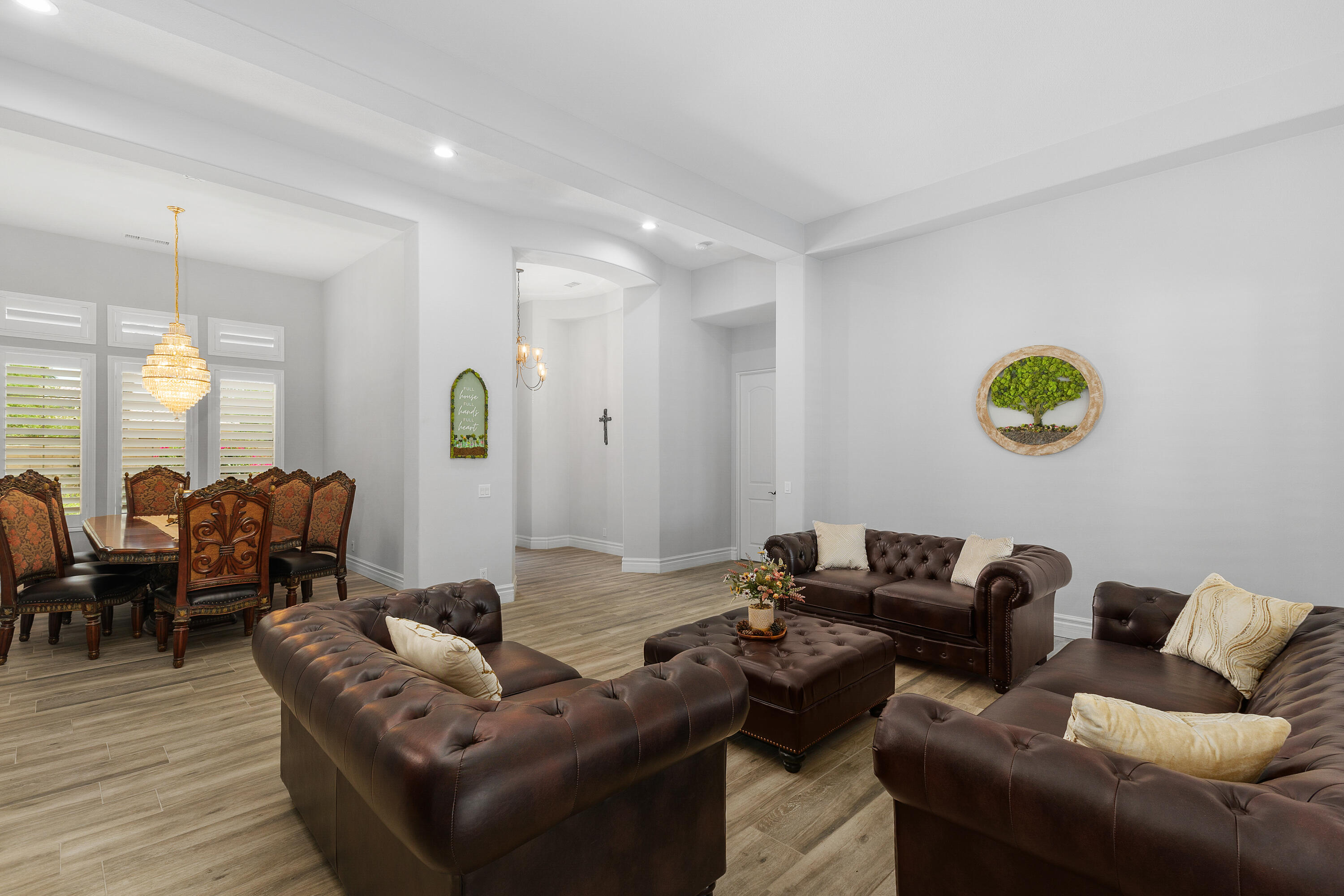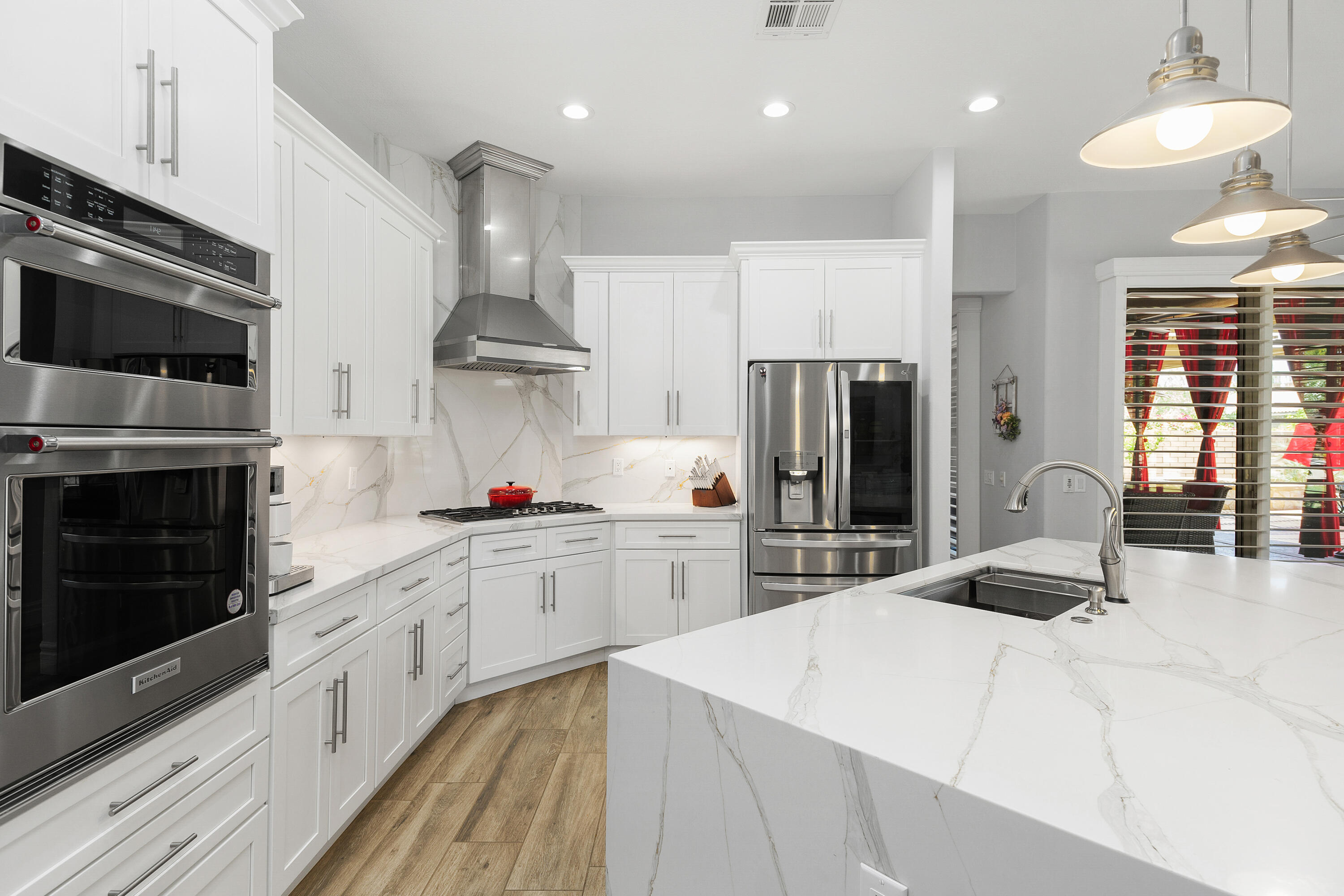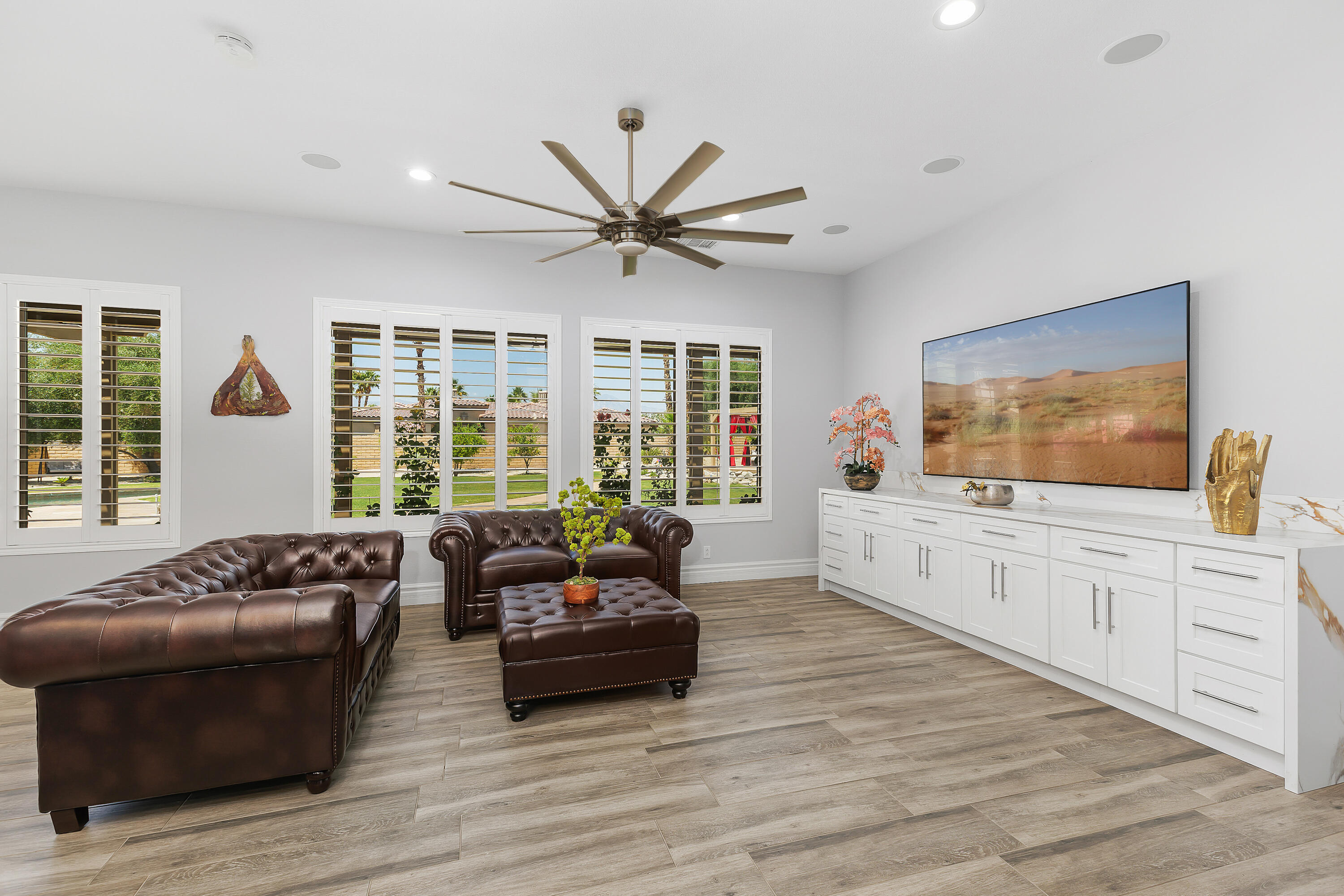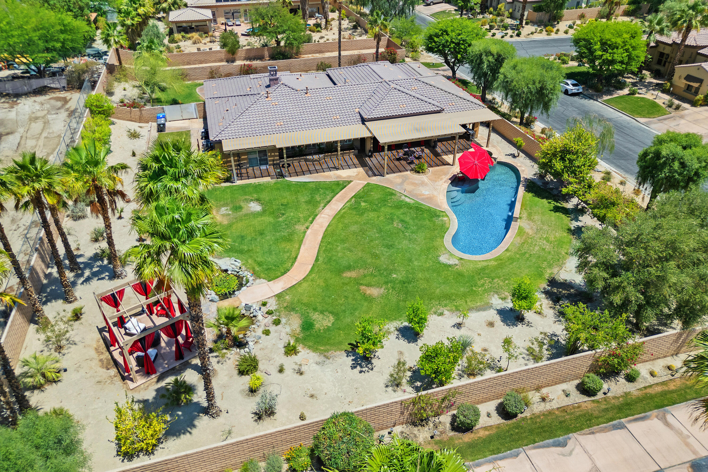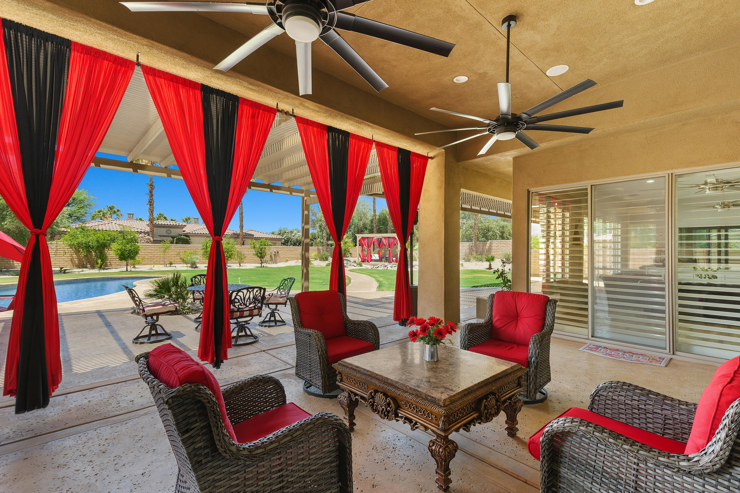 Discover refined desert living in the exclusive gated community of Stone Gate, where luxury meets functionality on a sprawling 27,443 sq ft presidential estate lot--perfect for entertaining, relaxing, and enjoying the best of the Coachella Valley lifestyle. This 4-bedroom, 5-bathroom remodeled residence features 3,240 sq ft of open-concept living space, designed with sophistication and comfort in mind. From the moment you enter, soaring ceilings welcome you, wood-like tile floors throughout, shutters, and recessed lighting that create a bright and airy atmosphere. Enjoy formal living and dining spaces, two tile gas fireplaces, and a spacious family room with a built-in entertainment center. The heart of the home is the gourmet kitchen, fully remodeled with quartz countertops, a quartz waterfall breakfast bar, stainless steel appliances, a gas cooktop, a chef's range hood, and custom cabinetry--ideal for both daily use and special gatherings. The primary suite is a serene retreat, featuring a walk-in closet, a luxurious bathroom with a standalone soaking tub, his-and-hers vanities, quartz counters, custom cabinets, and a large walk-in tile shower. Step outside to a private resort-style backyard, complete with a large pool and spa, a shaded pergola with a koi pond, and ample space for entertaining under the stars. The expansive driveway easily accommodates large vehicles, boats, toys, or an RV, and the cooled 3-car garage adds an extra layer of comfort. Located just minutes from golf courses, fine dining, shopping centers, grocery stores, and entertainment venues, this home offers both seclusion and convenience in one of Bermuda Dunes' most desirable neighborhoods. This is your chance to own a truly exceptional property on a presidential estate lot in the heart of the desert.Interested in this Listing?