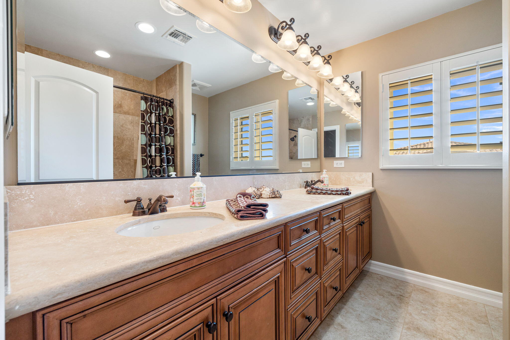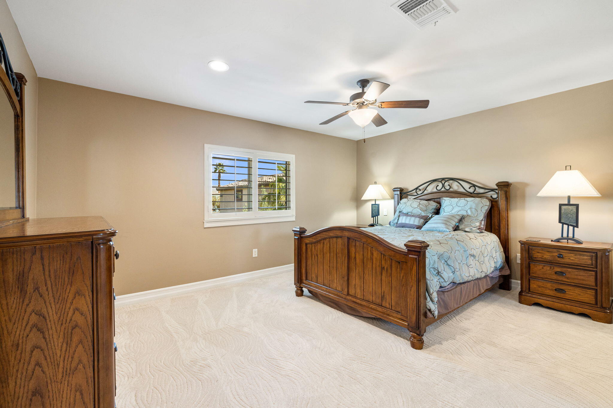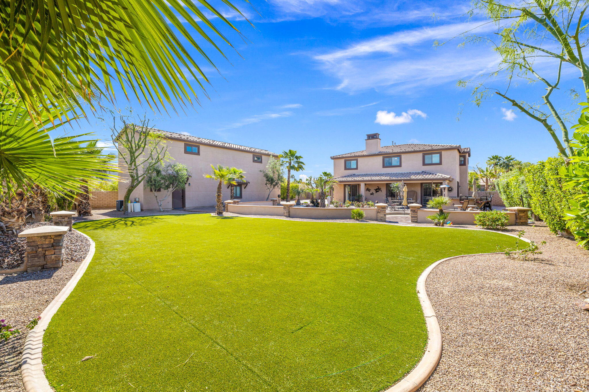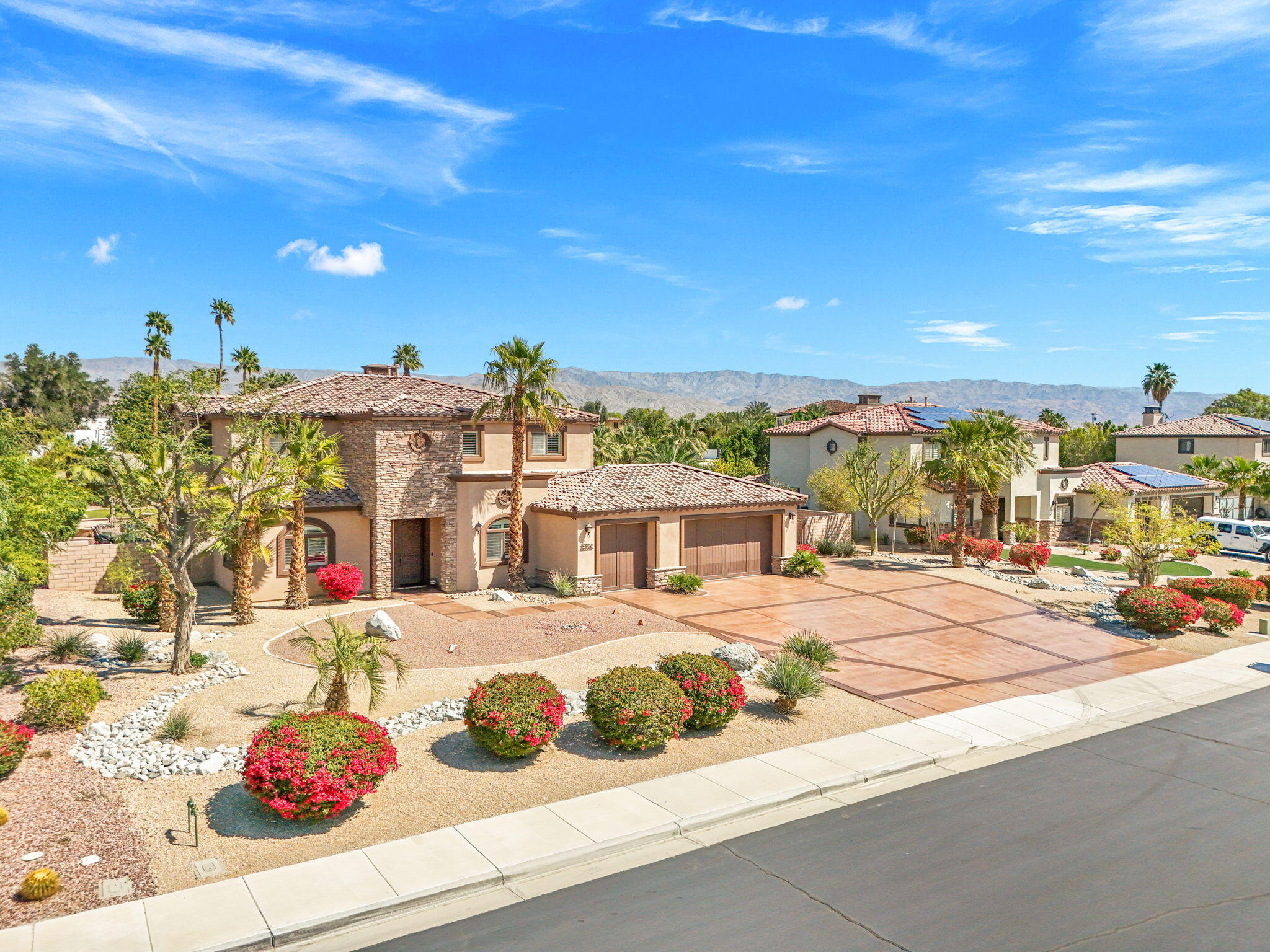 Nestled in an exclusive gated community of just 11 homes, this stunning 6-bedroom, 6-bathroom estate offers a rare blend of luxury, space, and functionality on an over half-acre lot. Designed for those who love to entertain and need room for all their toys, this home boasts an enormous 16' x 56' RV garage complete with a mezzanine, private bathroom, individual A/C, 50 amp and clean out. Plus, the spacious side yard provides even more parking options alongside the 3-car attached garage. Inside, you'll find an elegant layout with a main-floor master suite, formal dining room, dedicated office, and an upstairs bonus room with a dry bar and mini-fridge--perfect for additional entertainment space with upgraded tile flooring and custom plantation shutters throughout. The gourmet eat-in kitchen is a chef's dream, featuring rich wood cabinetry with custom pull-out storage drawers, granite countertops, a built-in stainless steel refrigerator, dual ovens, a gas range, a microwave, and a walk-in pantry. The upstairs is thoughtfully designed with two bedrooms featuring private en-suites on one wing, while the remaining three bedrooms share a spacious bathroom with dual sinks on another. The main-floor master suite offers breathtaking views of the backyard oasis and a luxurious en-suite with dual vanities, a jetted tub, a makeup station, a massive walk-in shower with bench seating, and a huge walk-in closet. Step outside to your private resort-style backyard, complete with a Pebble Tec pool and spa, a built-in gas fire pit, and an expansive outdoor kitchen equipped with granite countertops, gas BBQ, sink, refrigerator, and ample seating--ideal for hosting gatherings. Additional upgrades include stamped concrete throughout front and rear yards and driveway, epoxy-coated garage flooring, and low-maintenance artificial turf. This exceptional home is truly one of a kind--offering the perfect blend of luxury, convenience, and space in a highly desirable Bermuda Dunes location with loInterested in this Listing?