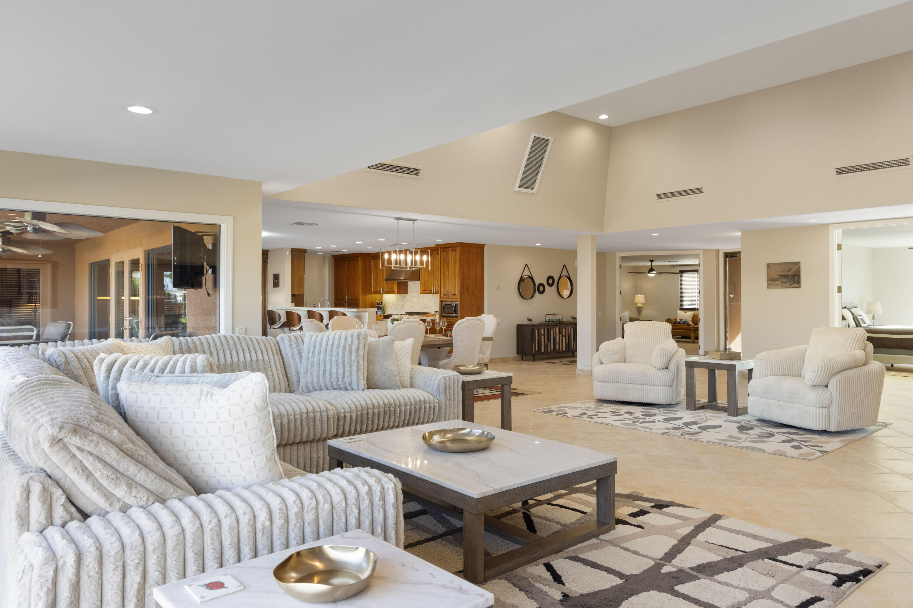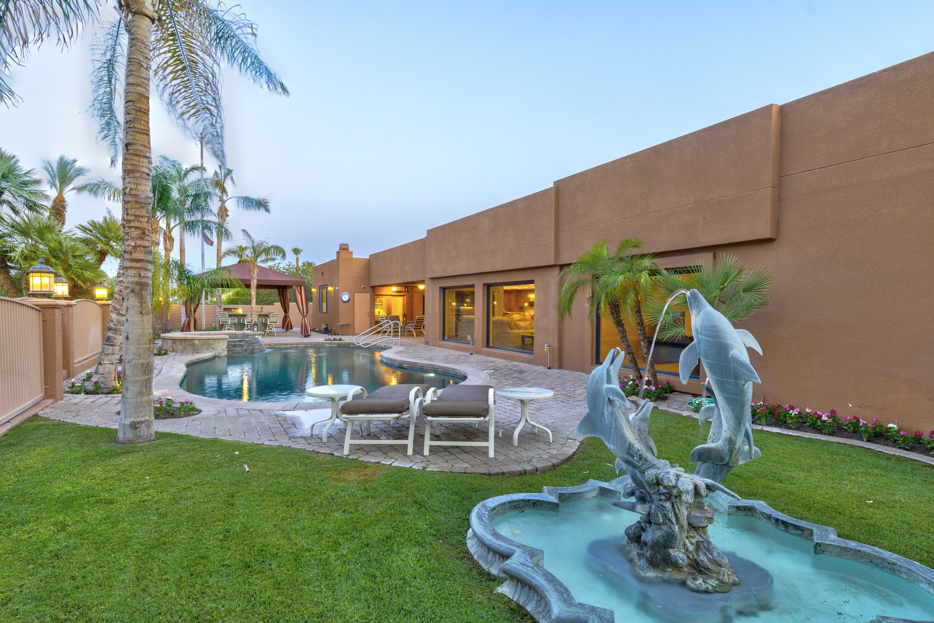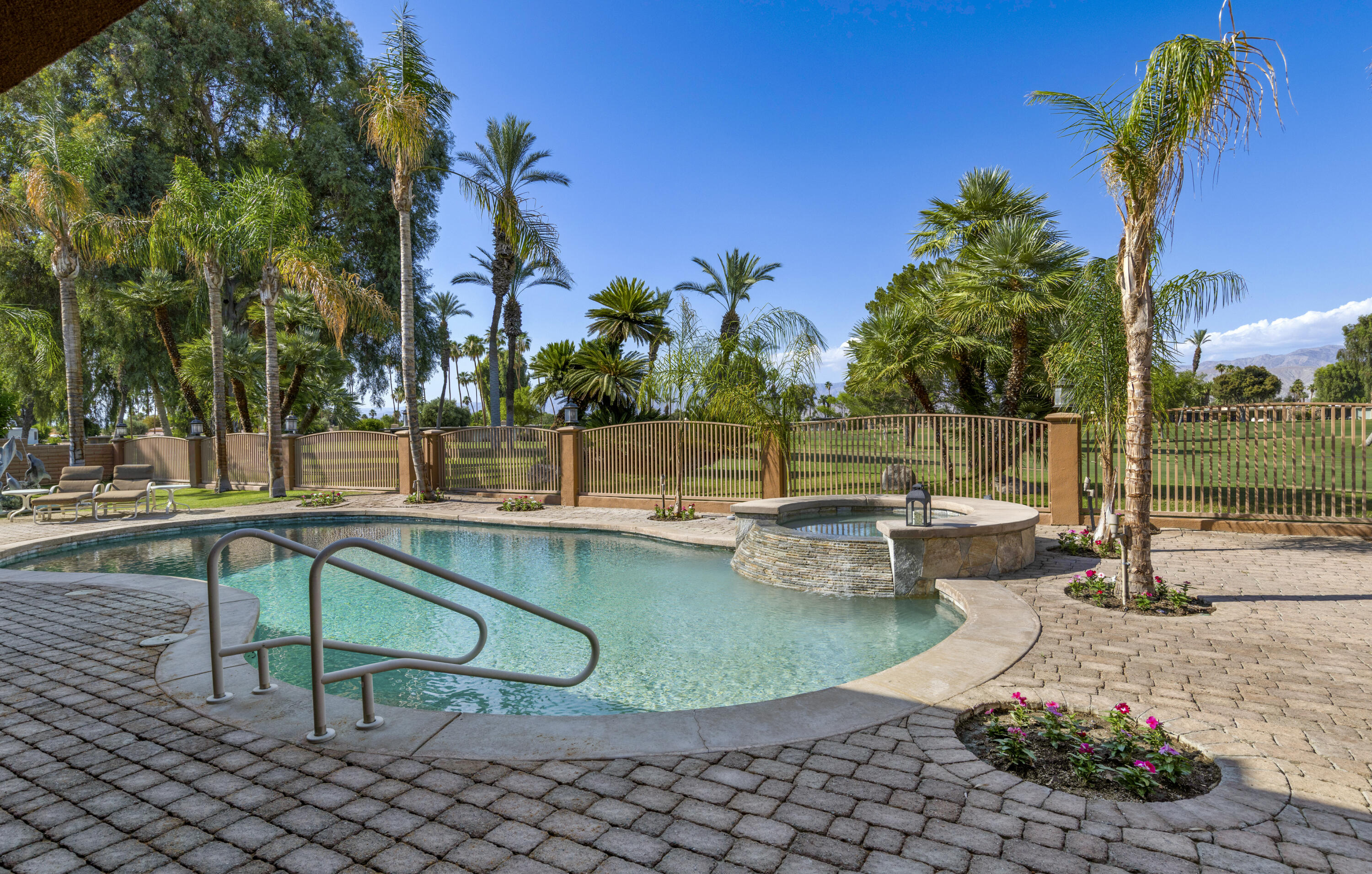 Nestled against the picturesque backdrop of the Bob Hope Classic Golf Course, this exquisite home boasts mesmerizing views of the 18th and 1st fairways alongside breathtaking mountain views. Designed with a thoughtful split floor plan, this property is ideal for a large family or those who love to entertain. The impressive double-glass door entry flows to a spacious great room featuring a cozy fireplace, which seamlessly connects the open-concept design to the dining area and kitchen, creating the perfect environment for gathering. The home features three oversized primary bedrooms with their own ensuite bathrooms and walk-in closets offering both privacy and comfort. A fourth bedroom provides flexibility, doubling as an office or study. The family room or den is a true multifunctional space--it can serve as a fifth bedroom with a half bath or be easily transformed into a second two-car garage. This home truly shines in its outdoor offerings with a covered patio, saltwater pool and spa, a soothing fountain, and a covered cabana outfitted with BBQ, sink, and granite bar. It's not just a home, it is a lifestyle. Partially Furnished and move-in ready.Interested in this Listing?