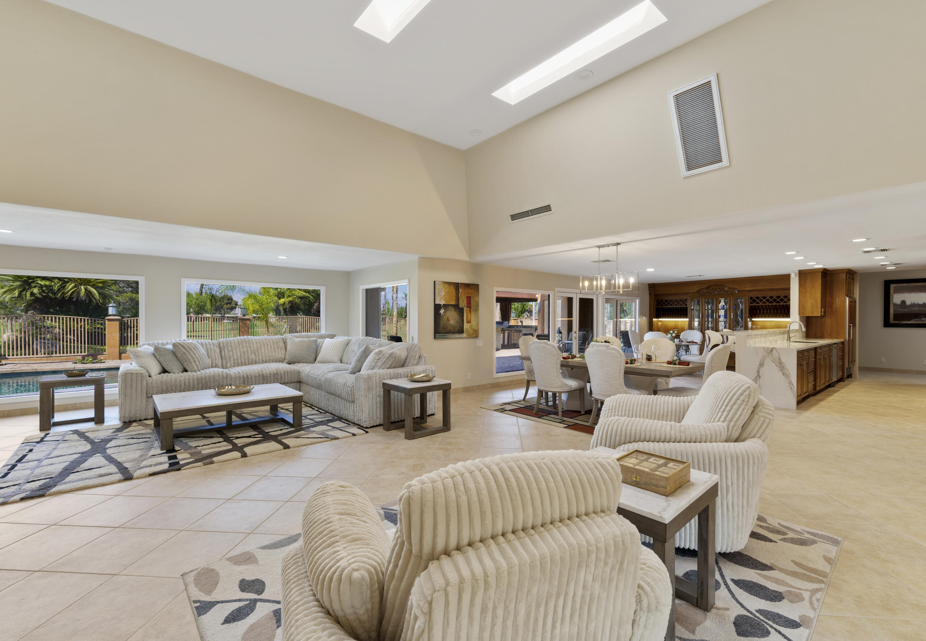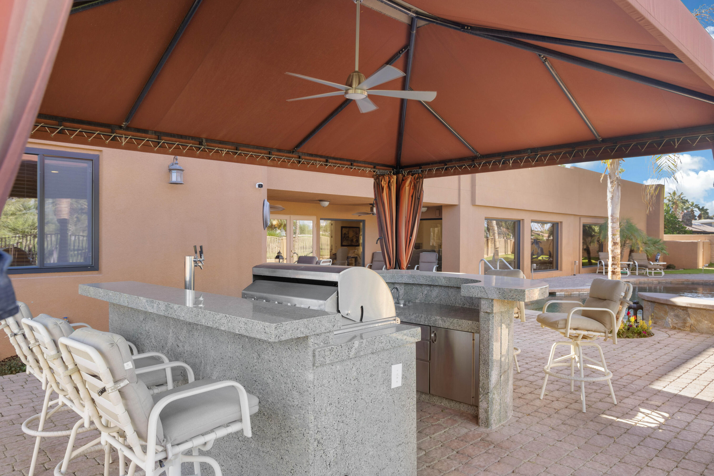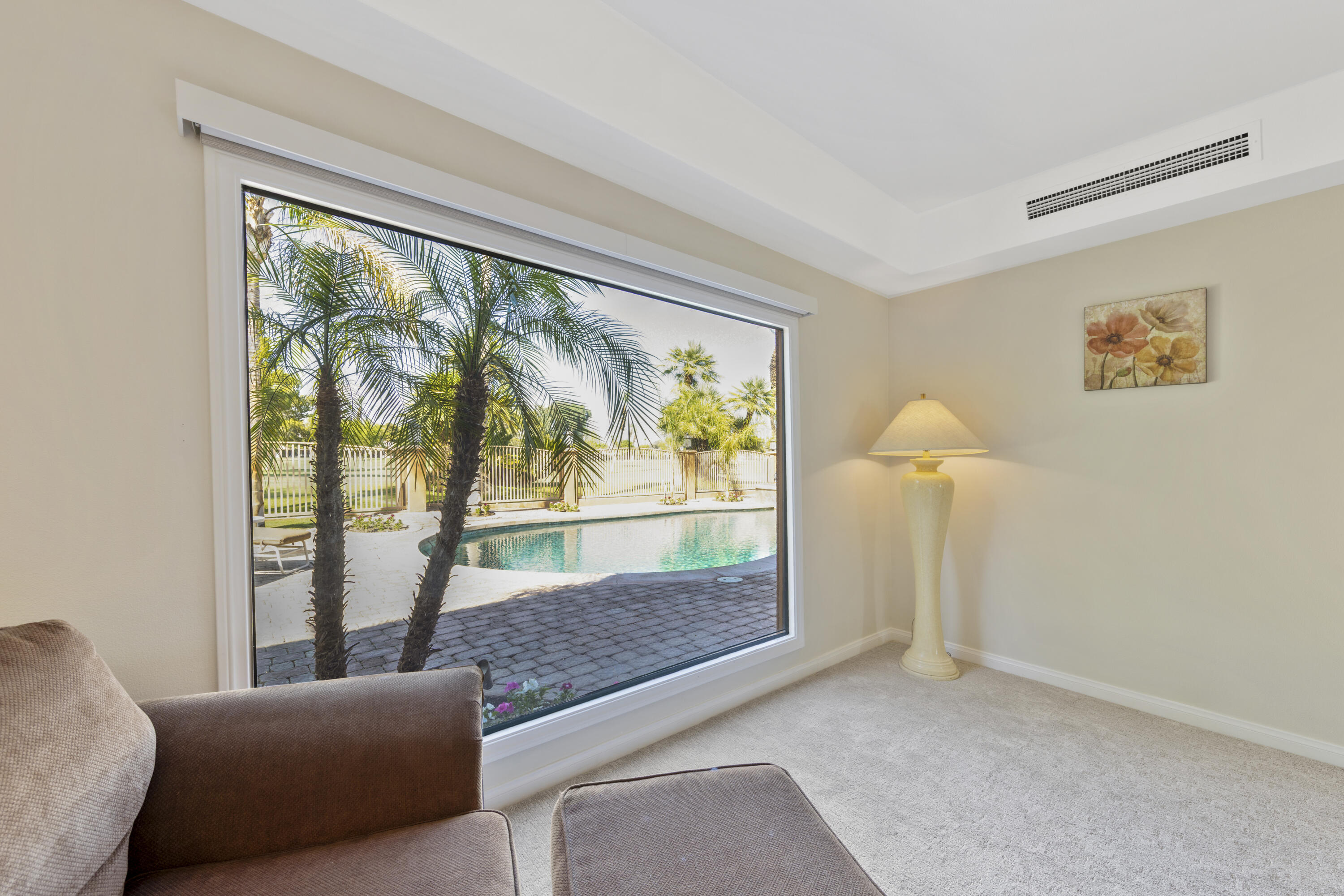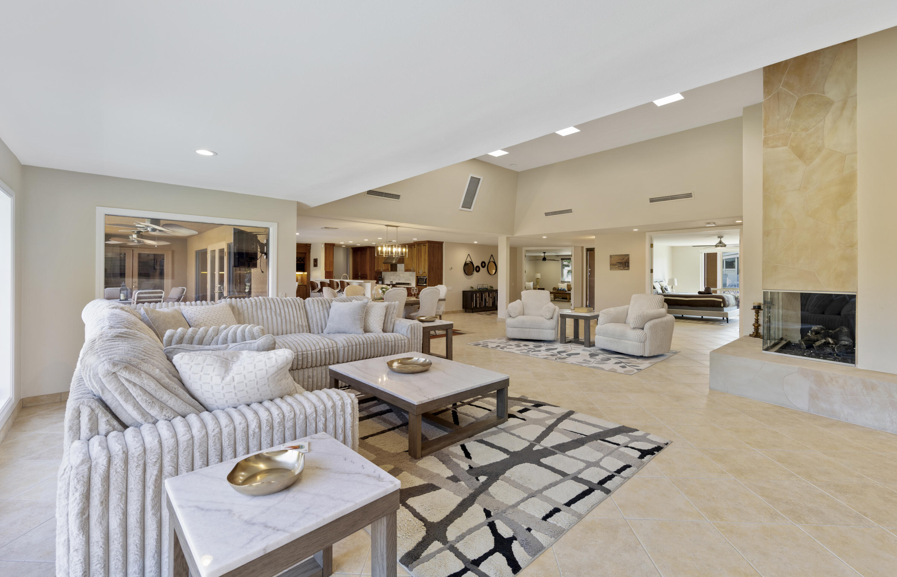 Nestled against the picturesque backdrop of the Bob Hope Classic Golf Course, this exquisite home boasts mesmerizing views of the 18th and 1st fairways alongside breathtaking mountain views. Designed with a thoughtful split floor plan, this property is ideal for a large family or those who love to entertain. The impressive double-glass door entry flows to a spacious great room featuring a cozy fireplace, which seamlessly connects the open-concept design to the dining area and kitchen, creating the perfect environment for gathering. The home features three oversized primary bedrooms with their own ensuite bathrooms and walk-in closets offering both privacy and comfort. A fourth bedroom provides flexibility, doubling as an office or study. The family room or den is a true multifunctional space--it can serve as a fifth bedroom with a half bath or be easily transformed into a second two-car garage. This home truly shines in its outdoor offerings with a covered patio, saltwater pool and spa, a soothing fountain, and a covered cabana outfitted with BBQ, sink, and granite bar. It's not just a home, it is a lifestyle. Partially Furnished and move-in ready.Interested in this Listing?