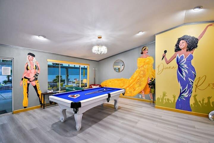 The Enchanted Home of Rock 'n Royalty - A Proven Income-Producing Investment with Unmatched Character!Welcome to one of the Coachella Valley's most iconic and high-performing short-term rental opportunities--The Enchanted Home of Rock 'n Royalty. Located in the unincorporated area of Bermuda Dunes, this corner-lot gem sits at the end of a peaceful cul-de-sac with minimal traffic, beautiful mountain views, RV parking, and ample space for multiple vehicles--all key features that appeal to today's STR guests.This one-of-a-kind themed property has already earned solid gross income year-to-date, with June & July bookings already secured and transferrable to the new owner--delivering immediate, reliable cash flow. The home is being sold fully furnished and operational, making it truly turnkey from day one. Outdoors you have a huge pool, spa with beautiful mountain views, firepit, huge covered patio and with enough room to spare to add any amenities you can imagine!Inside, guests are welcomed via a red carpet entrance that sets the stage for the unforgettable experience that awaits. Walls adorned with hand-painted murals celebrating the women of Rock 'n Roll like Beyonce, Cher, Miley Cyrus, Jennifer Lopez & Britney Spears to name a few to create a visually stunning, immersive experience that generates consistent 5-star reviews and strong repeat bookings. There is simply no other property like it in the market.Beyond its existing performance, this property also offers value-add potential:✅ The basketball court can easily be converted into a highly desirable pickleball court, a top-rated amenity that appeals to a wide guest demographic.✅ An outdoor room is ready to be transformed into a game room or entertainment space, increasing future revenue and guest satisfaction. Whether you're a savvy investor looking to diversify your portfolio, capitalize on a 1031 exchange, or own one of the most memorable properties in the desert, this is your unicorn. Opportunities l