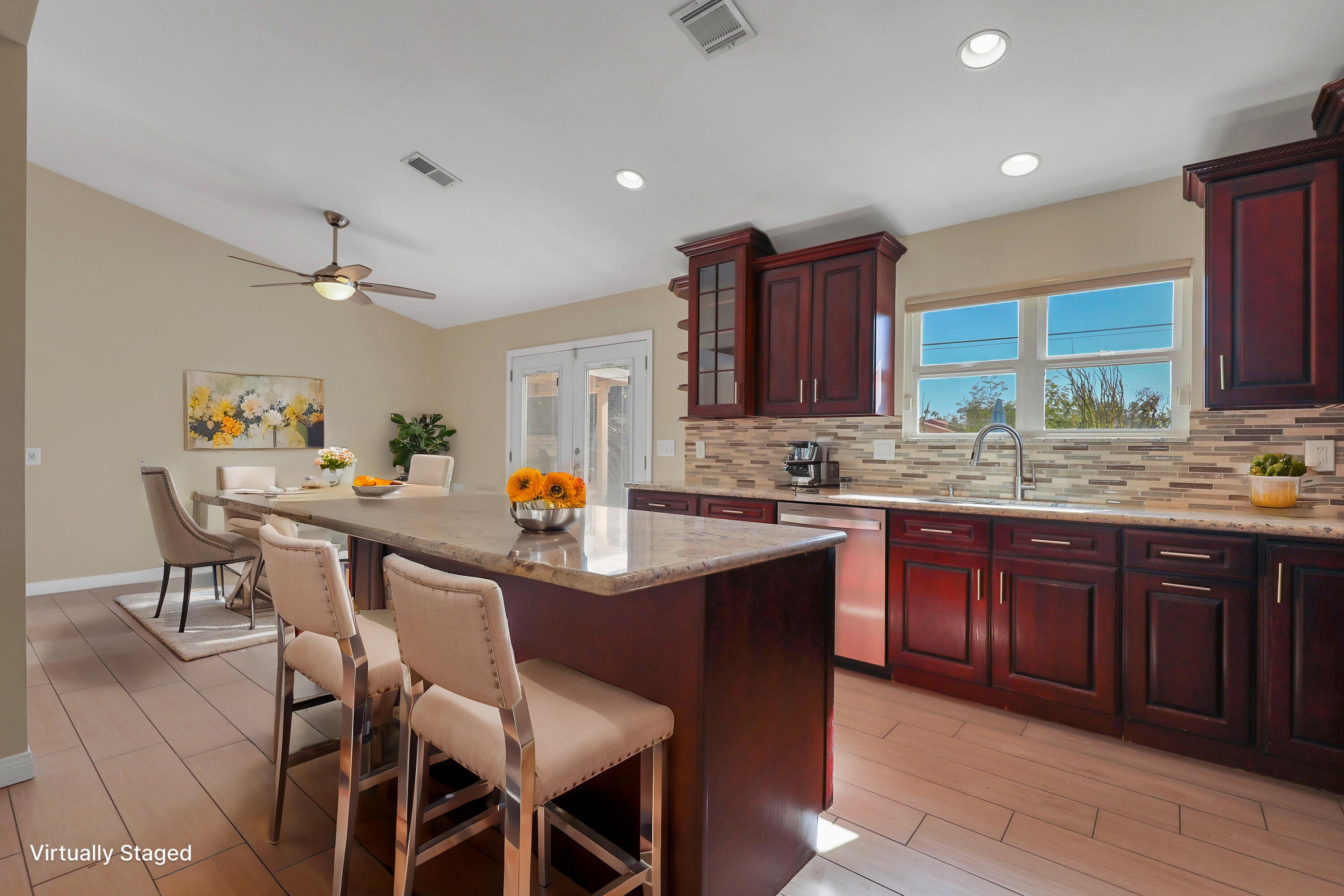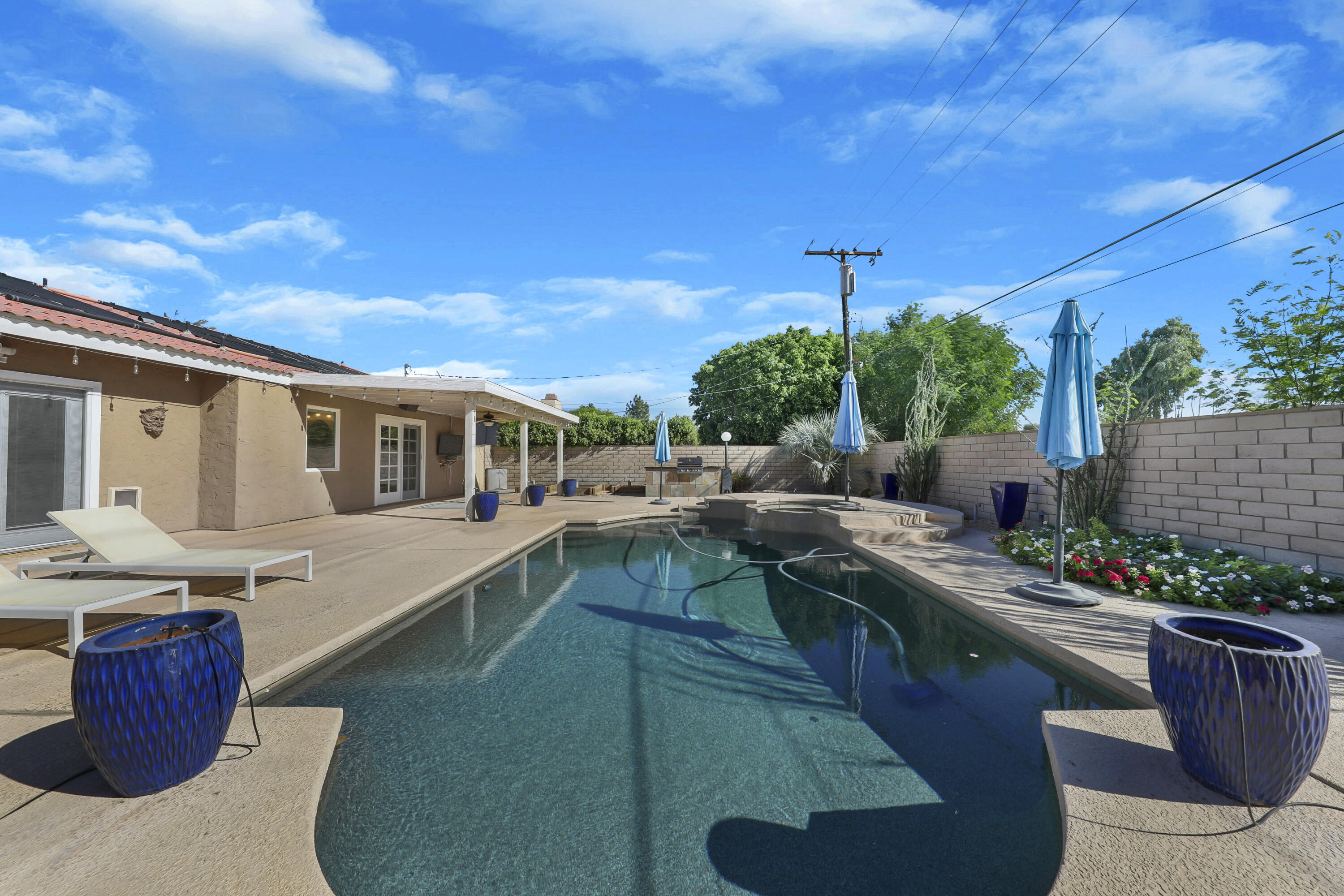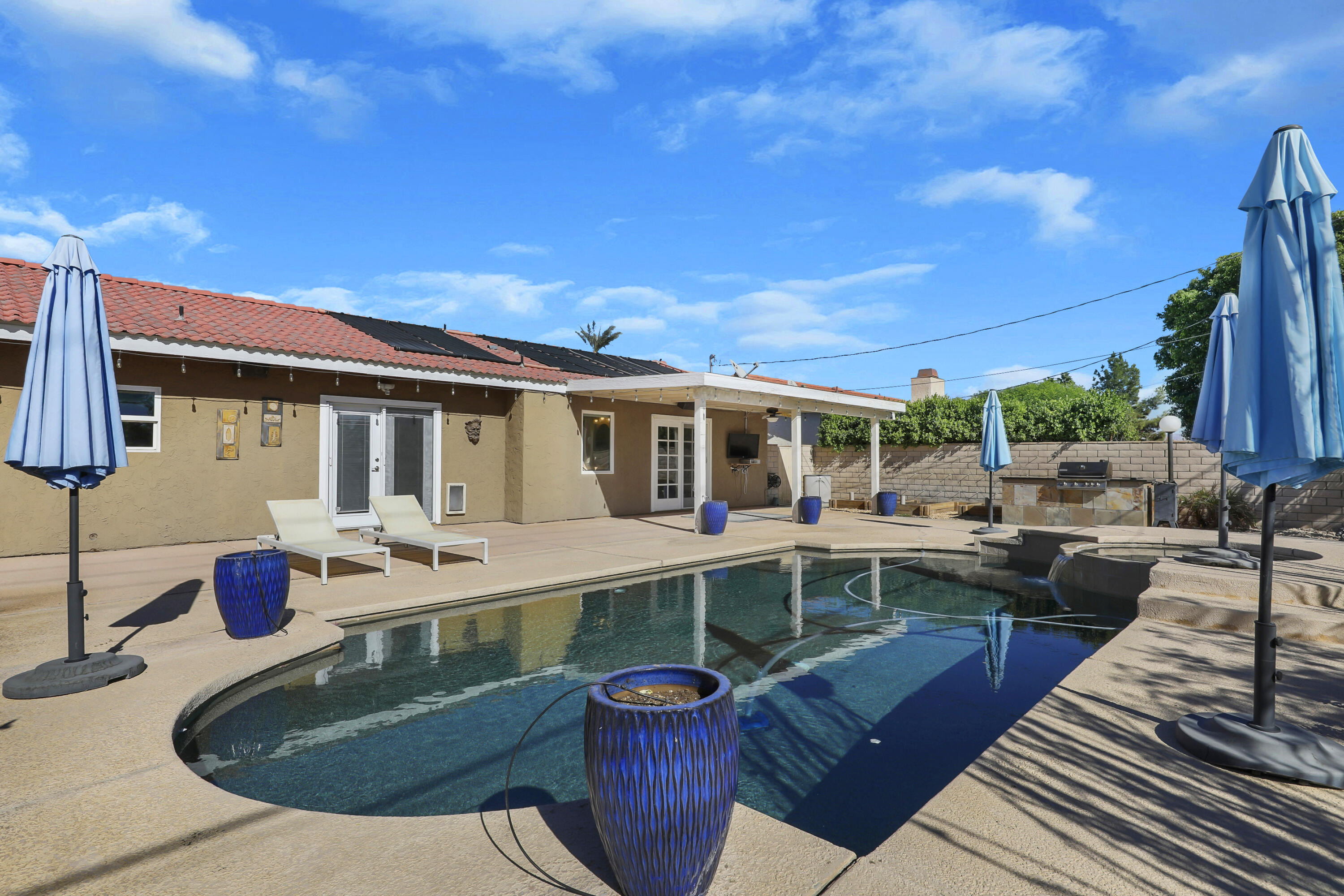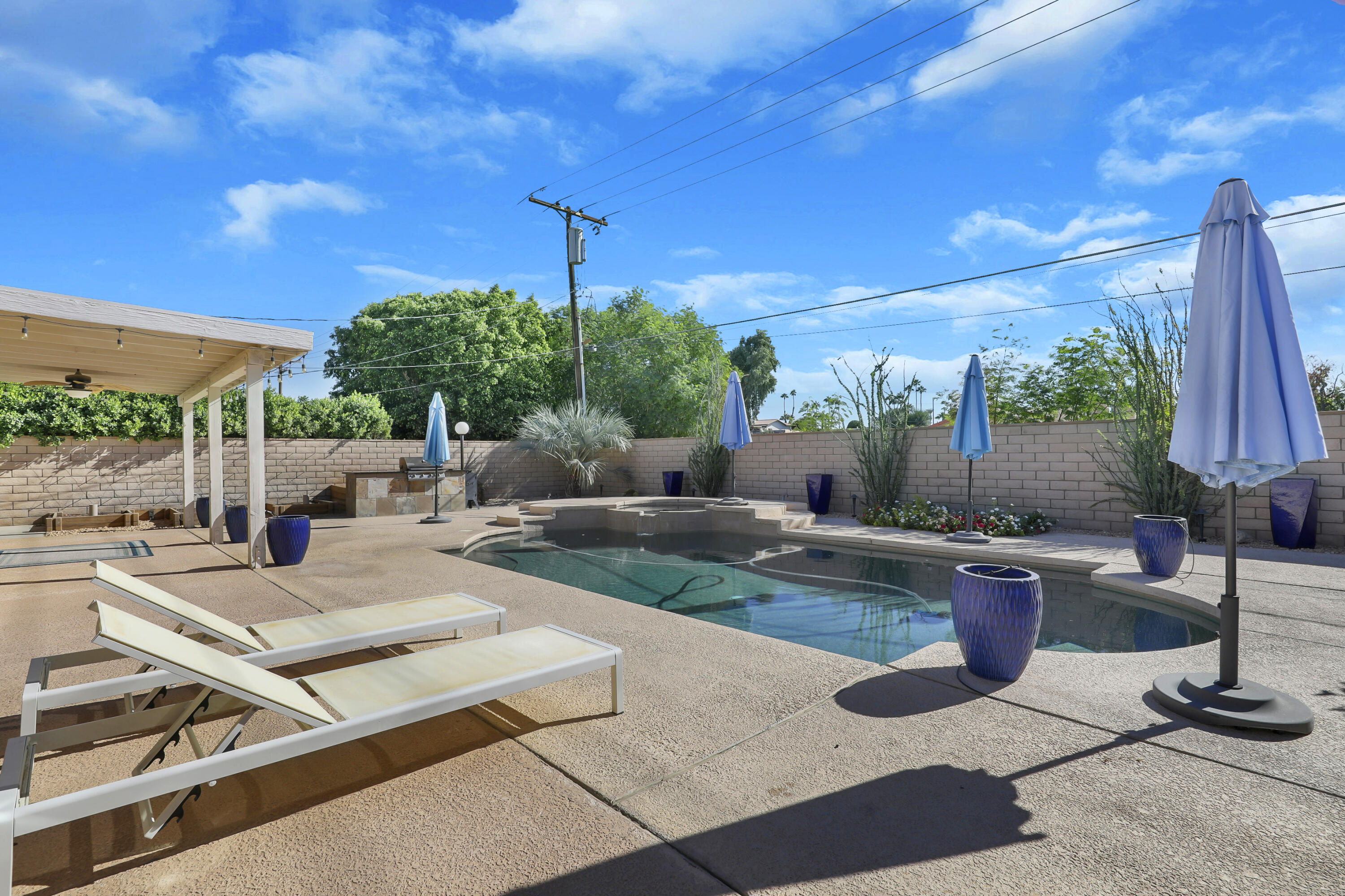 Welcome to 79221 Port Royal, a beautifully updated 3-bedroom, 2-bathroom home that offers modern upgrades, energy efficiency, and timeless charm. The kitchen has been completely renovated with cherry cabinets, slab granite countertops, and stainless steel appliances. Both bathrooms feature elegant travertine showers and contemporary finishes, while the living room boasts a cozy brick fireplace and newer tile flooring.A bright and versatile sunroom, accessible through French doors off the kitchen, provides extra space for a family room, office, or playroom. This home also includes energy-efficient upgrades, including a newer Lenox HVAC system, an upgraded 200 Amp electrical panel, and a Pentair variable-speed pool and spa pump with easy-touch controls to save on electricity.Outside, the large backyard is a private retreat with a pebble tech pool and spa, raised planter boxes for gardening, and side yards offering space to store toys, boats, or jet skis. The front yard is beautifully landscaped with Malibu lighting and a flower-lined walkway, adding to its curb appeal.With no HOA fees and the benefit of lower electricity costs through the Imperial Irrigation District, this home is as practical as it is stunning. Pride of ownership shines throughout, making it truly move-in ready. Schedule your private showing today and see all this charming property has to offer!Interested in this Listing?