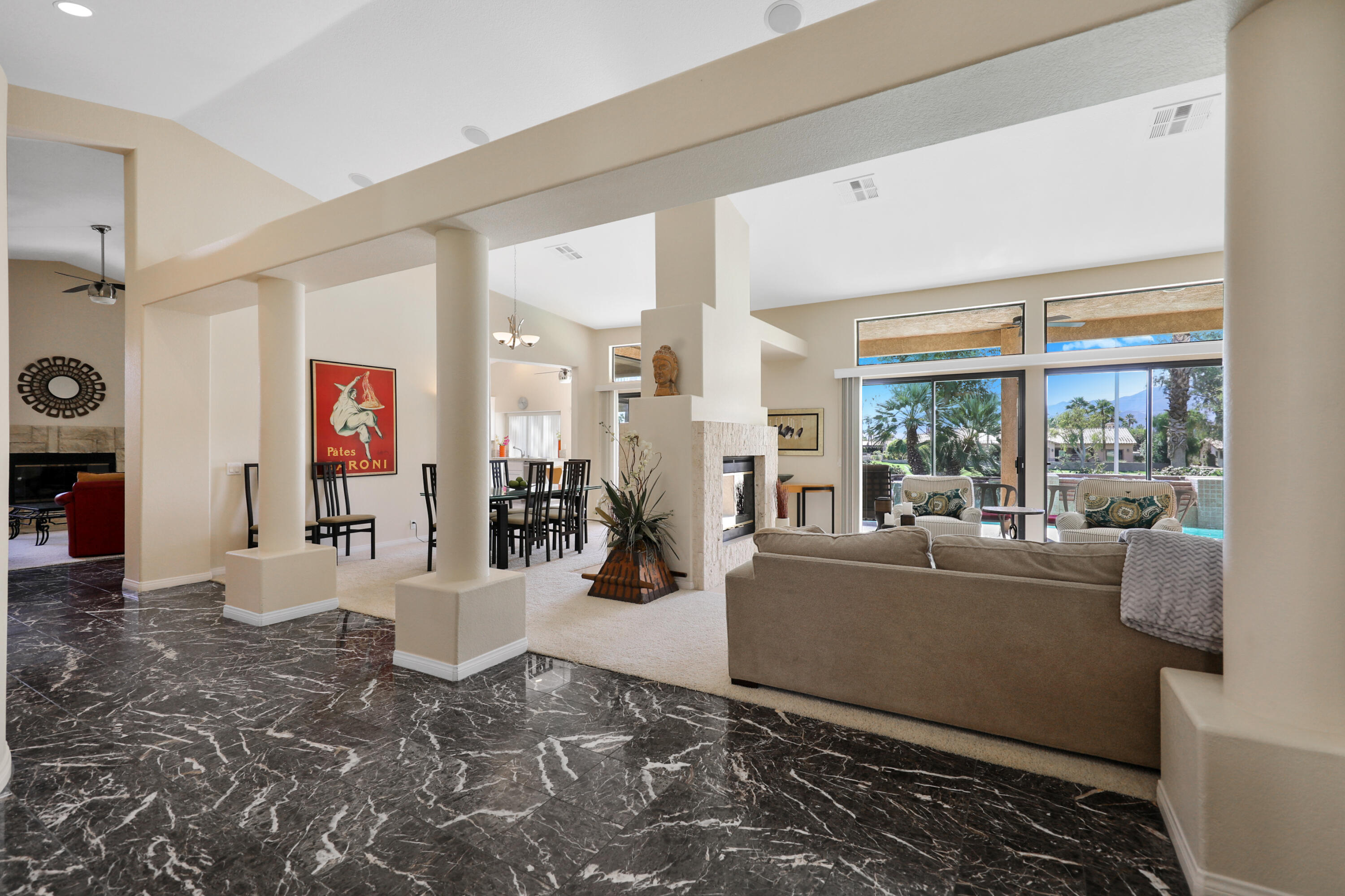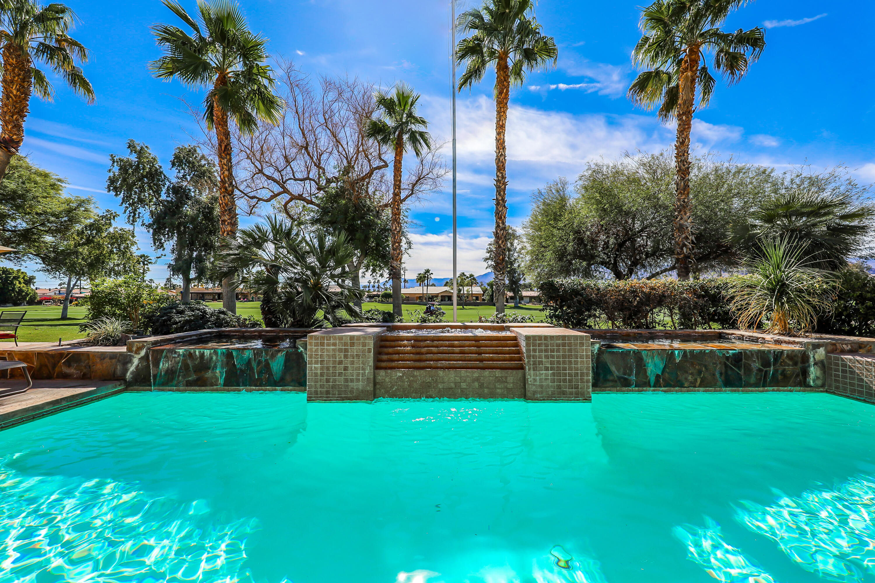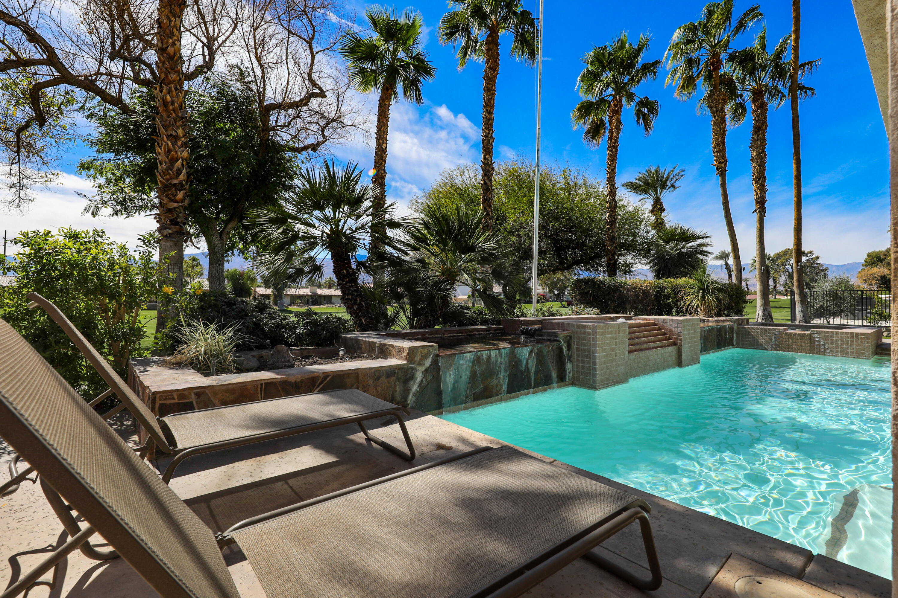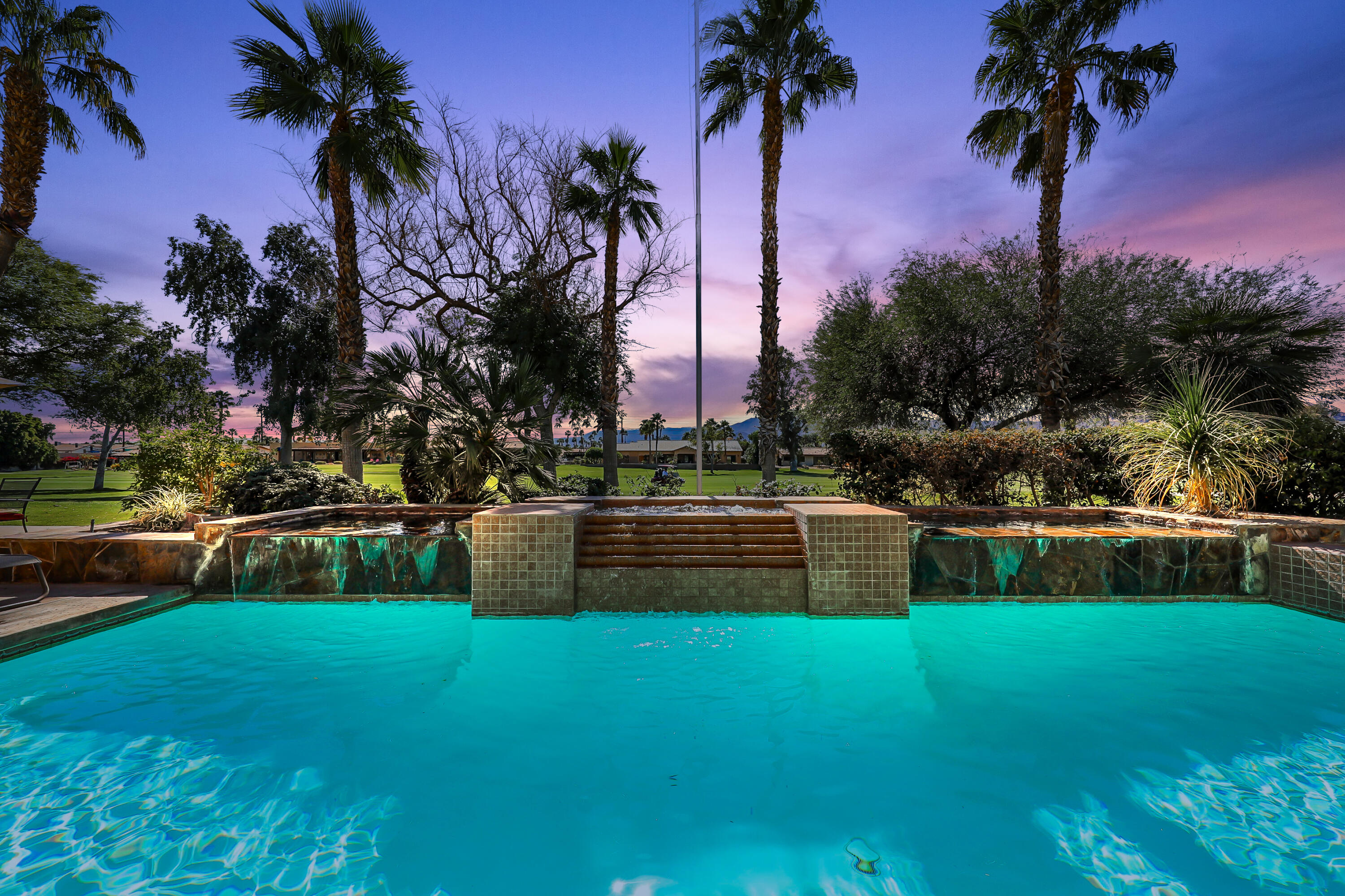 Custom home located on the par 5, 4th hole, of the Lake Nine at prestigious Bermuda Dunes Country Club. This home features three spacious bedrooms, three full bathrooms, striking marble flooring, and a three-car garage. The primary suite, with a two-way fireplace and Texas-sized closet, is located at one side of the home for privacy and boasts a separate spa tub and shower, as well as a slider to the pool area. The other two bedrooms are located off the den/family room (with another fireplace!), and have two full bathrooms. The kitchen with slab granite countertops has a breakfast area and large window as well as slider to the pool area - it is light and bright!!! The living/great room has a two-way fireplace and an inviting area for dining and entertaining with stunning views of the pool/spa and golf course. Enjoy the outdoors with the pool/spa and cascading water feature, as well as a large built-in BBQ area. The three-car garage with direct access completes the package. Home is offered tastefully furnished and ready for occupancy. Owners replaced both A/C systems in 2018 and then in 2024 another compressor. The BDCC has a 30-day rental minimum, and is in the IID electric district. The low HOA of only $214 a month includes Internet and cable TV with two boxes with Showtime/HBO/Cinemax with Spectrum and 24-hour security.Interested in this Listing?