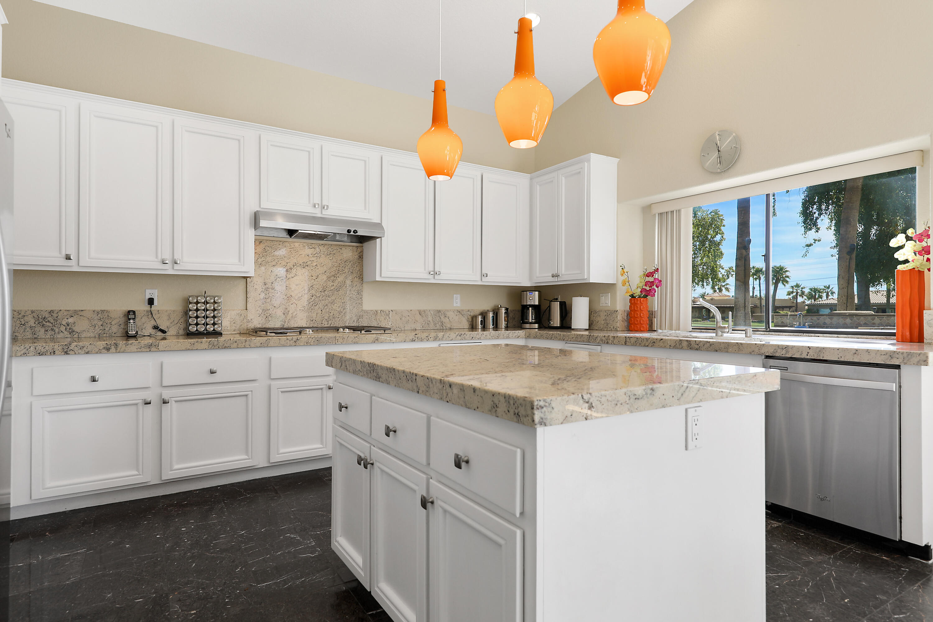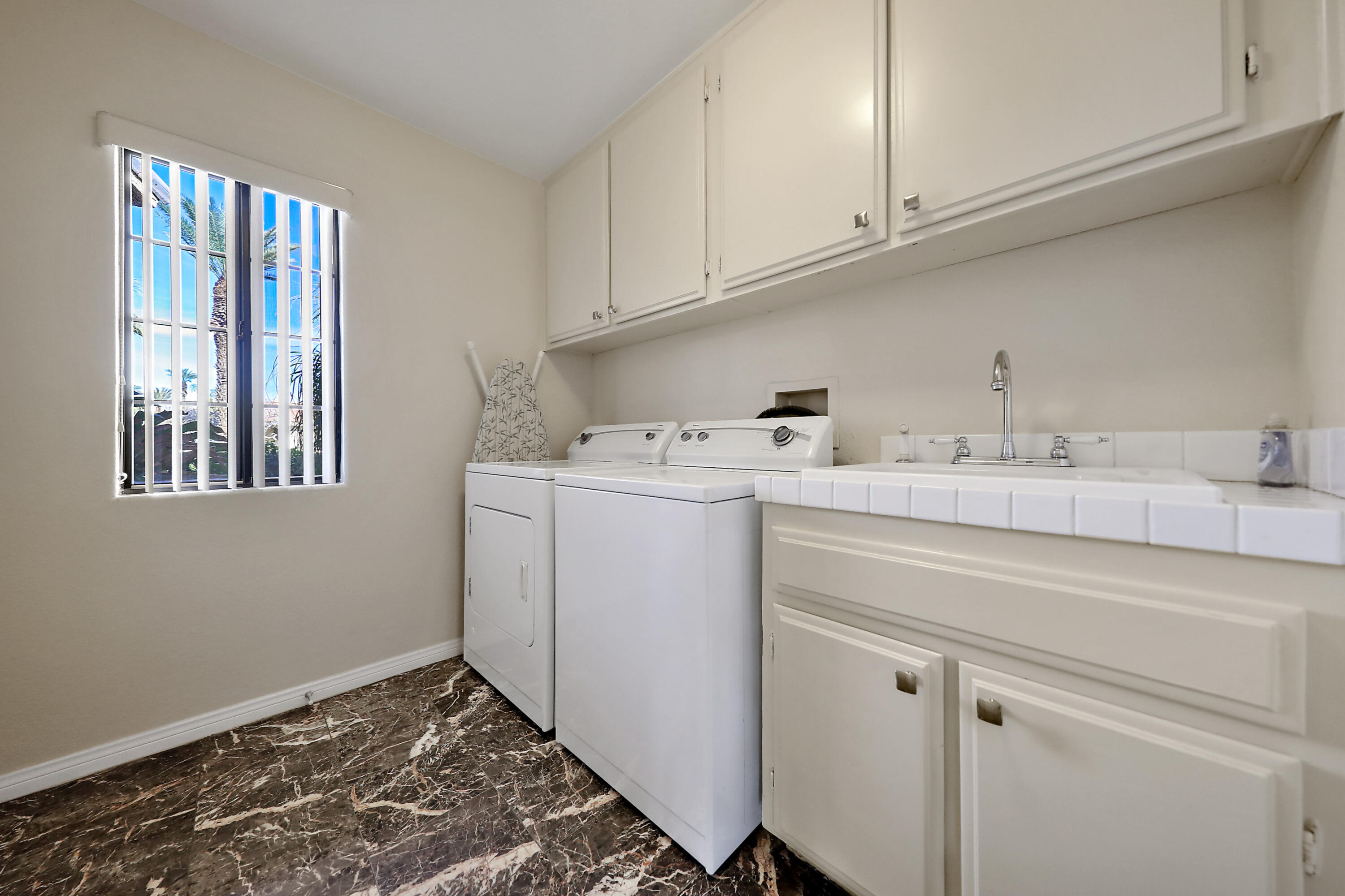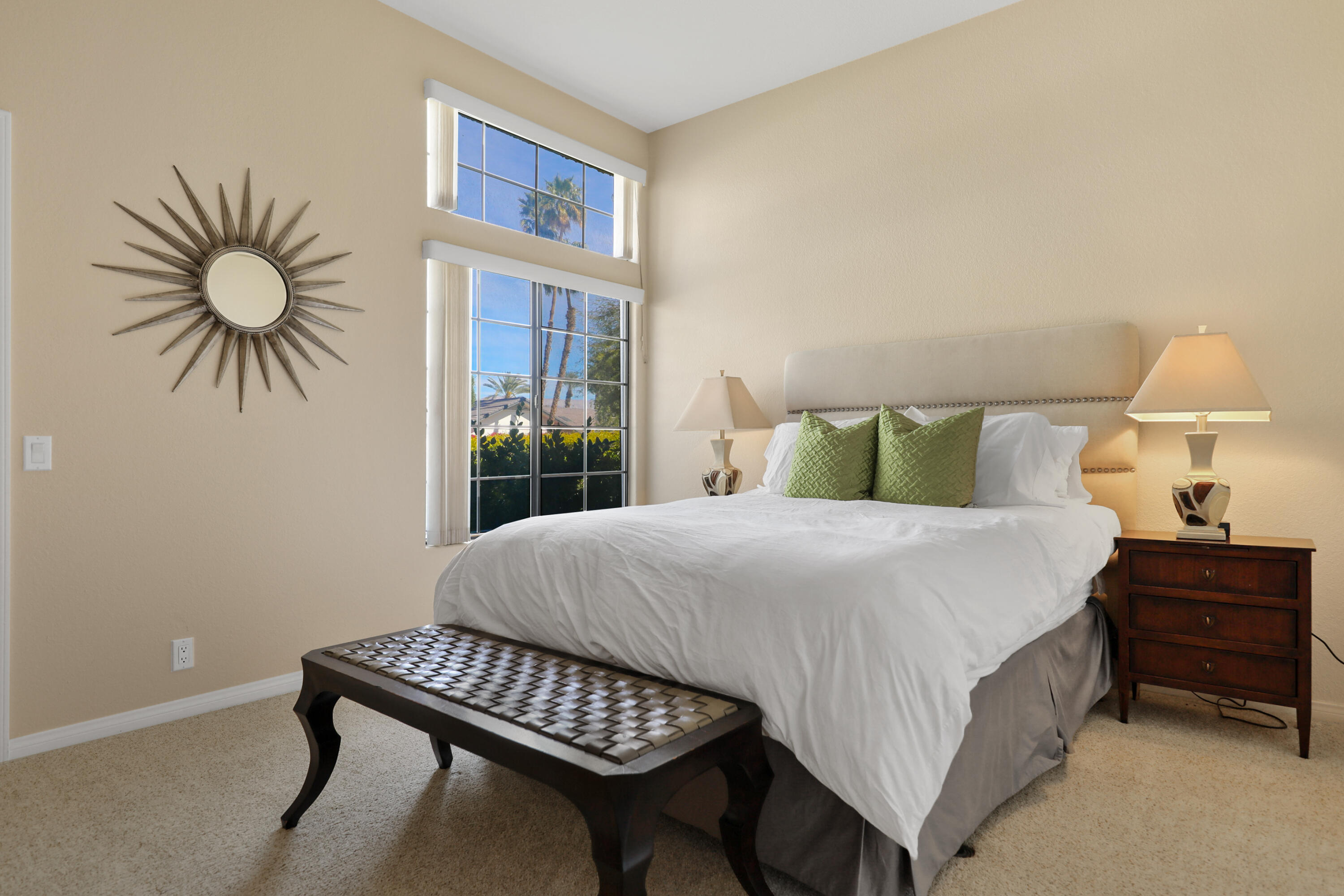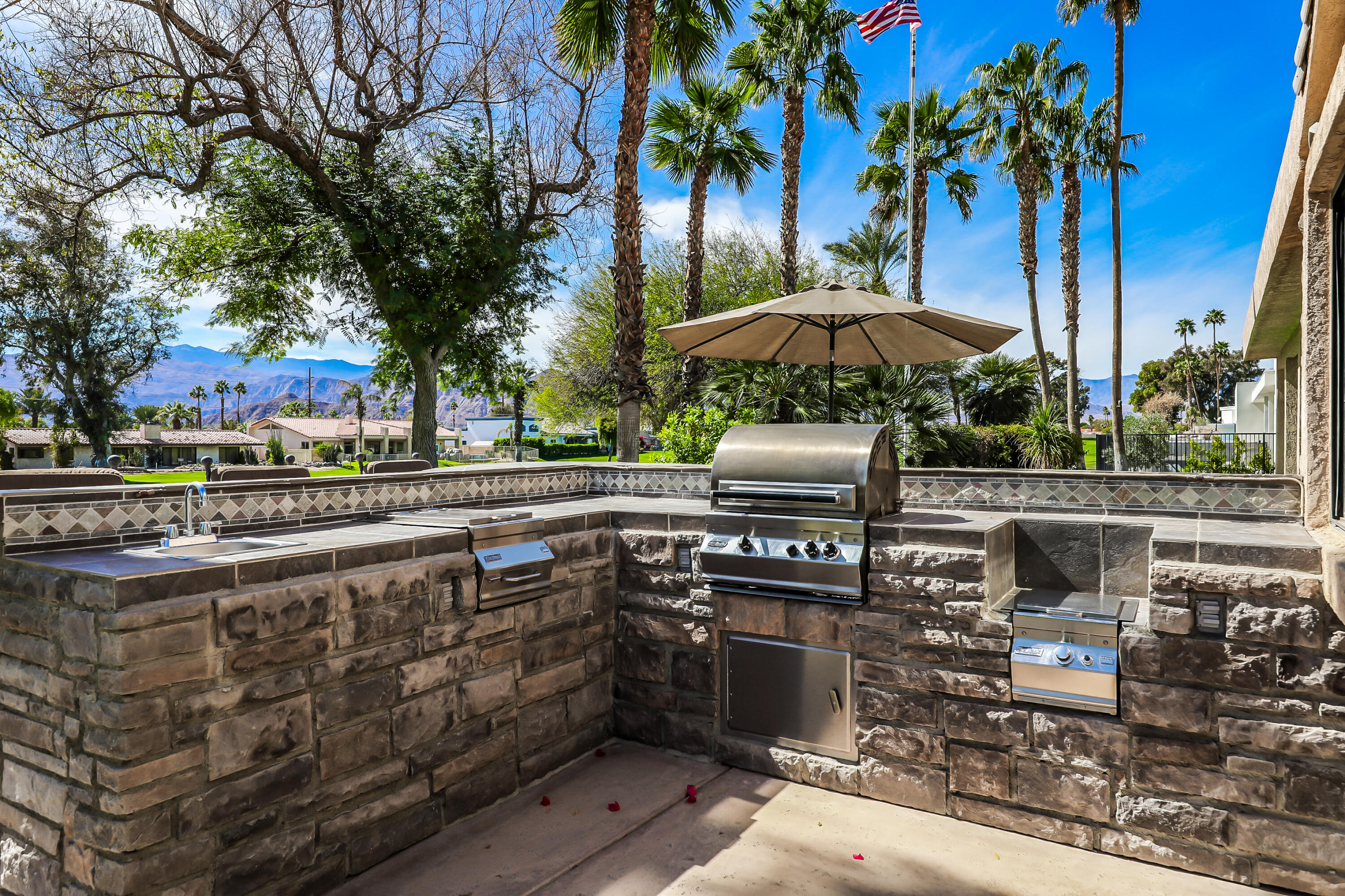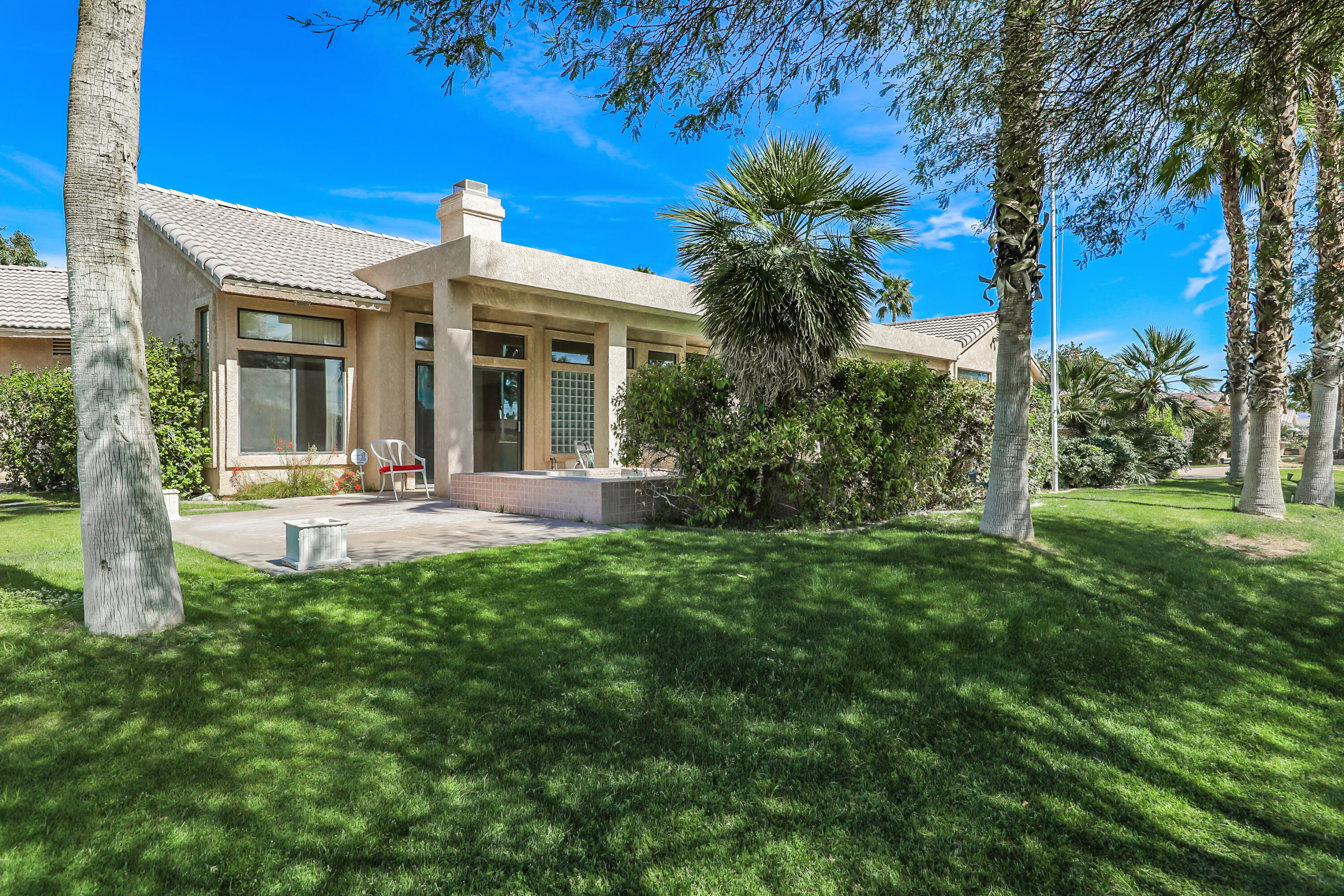 Custom home located on the par 5, 4th hole, of the Lake Nine at prestigious Bermuda Dunes Country Club. This home features three spacious bedrooms, three full bathrooms, striking marble flooring, and a three-car garage. The primary suite, with a two-way fireplace and Texas-sized closet, is located at one side of the home for privacy and boasts a separate spa tub and shower, as well as a slider to the pool area. The other two bedrooms are located off the den/family room (with another fireplace!), and have two full bathrooms. The kitchen with slab granite countertops has a breakfast area and large window as well as slider to the pool area - it is light and bright!!! The living/great room has a two-way fireplace and an inviting area for dining and entertaining with stunning views of the pool/spa and golf course. Enjoy the outdoors with the pool/spa and cascading water feature, as well as a large built-in BBQ area. The three-car garage with direct access completes the package. Home is offered tastefully furnished and ready for occupancy. Owners replaced both A/C systems in 2018 and then in 2024 another compressor. The BDCC has a 30-day rental minimum, and is in the IID electric district. The low HOA of only $214 a month includes Internet and cable TV with two boxes with Showtime/HBO/Cinemax with Spectrum and 24-hour security.Interested in this Listing?