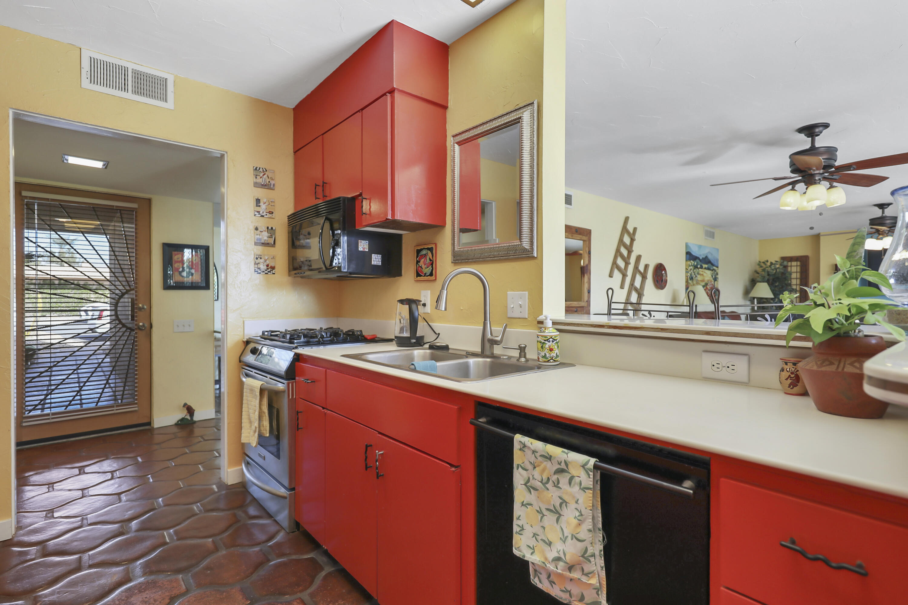 Welcome to Bermuda Dunes Colonies, a small enclave of mid-century condos developed by the Wexler-Harrison team in 1961. This special condo is unique in that the mid-century design is complimented by a Spanish flare with a warm melody of Southwest colors and flowing Sautillo tile floors. The colorful kitchen with a gas range is open to a true GREAT ROOM with a cozy fireplace for those cooler evenings and walls of glass to let in plenty of light and views. This is an end unit and has an expansive back patio to view the Southern Mountains and spacious greenbelt. Just steps to the first fairway and the community pool.There is also a front patio to enjoy with a colorful fireplace. The primary bedroom has a walk-in closet and combination tub/shower (with Terrazzo tiles). The second bedroom is adjacent to a 3/4 bath. There is a one-car detached garage just steps away, as well as plenty of on-street parking. IID for lower electric. BD Security HOA of only $214 includes 24-hour guard gated security and cable TV with two boxes with Showtime/HBO/Cinemax and internet with Spectrum. Colonies HOA of $600 includes trash, pools, gardening, and insurance (bare wall coverage).Interested in this Listing?