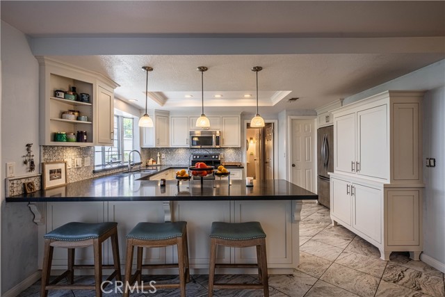 This beautifully updated 3 BEDROOM PLUS DEN/OFFICE home features tile and upgraded custom cabinetry throughout the home. A formal living room greets you with vaulted ceilings and a nearby powder room. The ample modern kitchen features upgraded cabinets, light filled bay window, and quartz countertops. The central dining room sits between the kitchen and living areas for easy entertaining. Adjacent to the kitchen is a cozy family room with modern fireplace. The primary suite is spacious and features a large closet with built-ins and a luxurious bath with soaking tub, walk-in shower and plenty of cabinet room. The two extra bedrooms are perfect size and conveniently located nearby is the secondary bath upgraded with stone and tile. There is also a den that could be converted to a 4th bedroom. A total of 2 1/2 baths, a walk-in laundry room and spacious 3 CAR GARAGE make this the perfect home. This home's interior has some steps within. Canyon Lake is a GATED COMMUNITY with a recreational lake for boating, skiing and fishing, an 18 hole golf course, country club, waterfront lodge, tennis, pickleball, basketball, baseball fields, equestrian center, senior center, 2 restaurants and numerous waterfront parks throughout the community. Don't miss out!Interested in this Listing?