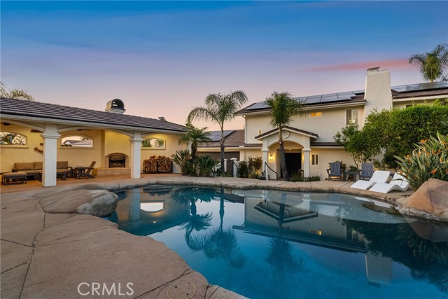 Welcome to 22883 Calcutta Drive, an exquisite retreat nestled on the prestigious golf course in the exclusive Canyon Lake community. This magnificent 3,800 sq. ft. residence, set on a rare double lot, effortlessly combines sophistication and comfort with its four expansive bedrooms and three and a half luxurious bathrooms. The heart of the home, a recently updated kitchen, is a chef s dream with sleek quartz countertops, large island that seats six, high-end stainless steel appliances, ample storage with a walk in pantry, and an elegant wet bar featuring a wine fridge and ice maker. Designed for the ultimate in entertaining, this home boasts a seamless indoor-outdoor flow through pocket doors that open to a spectacular backyard paradise. Revel in the resort-like amenities, where a pristine pool takes center stage alongside an inviting cabana. Lavish guests with culinary delights from the state-of-the-art barbecue area, while evenings promise relaxation and entertainment on the patio, complete with a cozy fireplace and outdoor television for endless enjoyment. Guests will be in complete comfort in the stand alone casita with it's own private entrance. Modern conveniences, such as new Tesla solar panels, enhance the lifestyle experience, complemented by ample parking options including a garage, guest parking, and RV parking. Additional features include a soft water system, filtered water, new roof and access to all the amenities that Canyon Lake has to offer. This exceptional property offers an unparalleled opportunity for those seeking a vibrant lifestyle of luxury and leisure.Interested in this Listing?