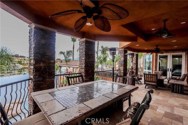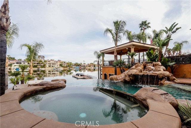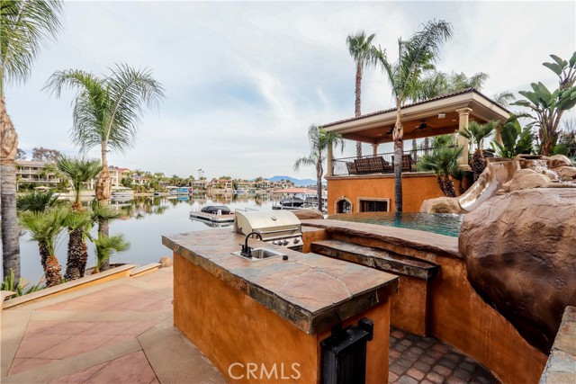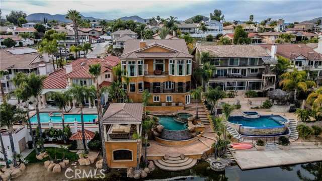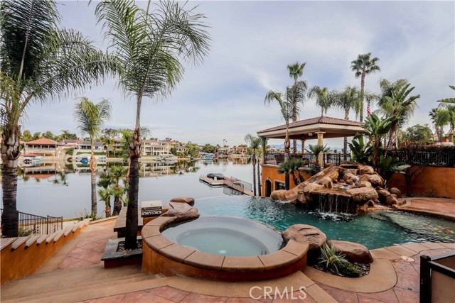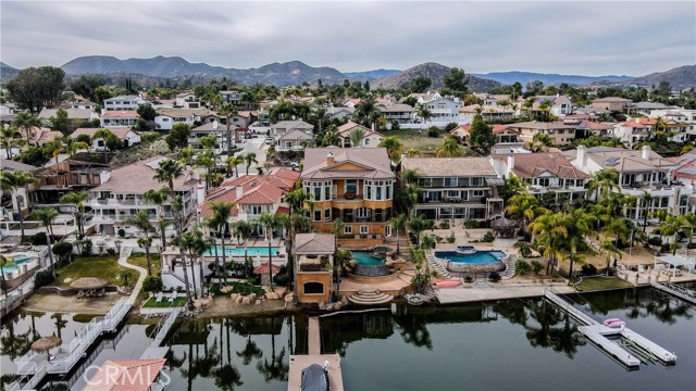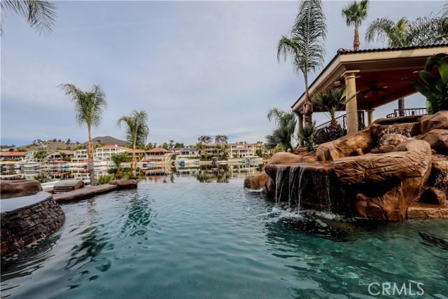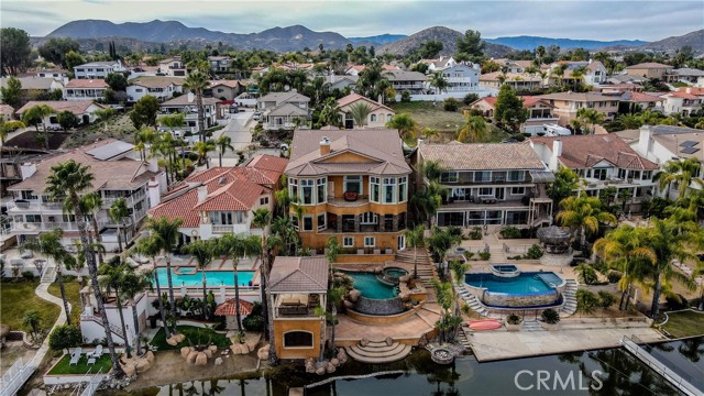 This spectacular and custom-built lake front estate is like no other to ever hit the market in Canyon Lake! The resort-style lot is ideally situated on Canyon Bay offering solitude and privacy from the busier main lake and encompasses a private beach with over sixty-five feet of lake frontage and a boat dock. Lake enthusiasts and boaters cruising by are awed by the magnificent architecture and the grandiose infinity pool, spa, waterslide and scintillating stacked-stone waterfall. The expansive residence spans nearly 9,000 sq ft including six bedrooms, eight bathrooms, two full kitchens, an office, a large loft area, separate guest/maid quarters, two laundry rooms, a pool-house, a massive home theatre with seating for sixteen people, a three-car garage and a separate storage area. Rebuilt in 2009, the property design consists of three spacious levels that provide an open floorplan that can easily accommodate multi-generational living if that is desired. The grand entrance incorporates a travertine walkway framed by stacked-stone leading to an impressive decorative glass door. The main level displays soaring twenty foot ceilings, a chef s kitchen with restaurant-quality Viking appliances including a freestanding range and hood complete with six burners, griddle and a kettle faucet, a separate oven, microwave, warming drawer, three undercounter wine-cellar refrigerators, an oversized island with built-in refrigerated drawer, a walk-in pantry, custom cabinetry and a dumbwaiter that services all three levels. Also found on the main level is the formal living and dining rooms, an office, a powder room for guests and the primary bedroom complete with floor to ceiling windows and private balcony overlooking the lake, a large walk-in closet and a spa-like en-suite bath. The second level includes three large bedrooms with walk-in closets, two bathrooms and a large loft area. Downstairs from the main level is the third level that offers two more bedrooms, two bathrooms, a second kitchen, dining area, family room, a massive home theatre and an impressive balcony offering al fresco dining and a seating area with firepit. The tropical pool area is an entertainer s dream including an oversized spa, waterslide, built-in BBQ area, boat house with outdoor bathroom, roof deck located over the boat house and a guest/maid quarters and storage area. Capture the serenity and soak in the essence of the luxury lake lifestyle with this iconic property.Interested in this Listing?