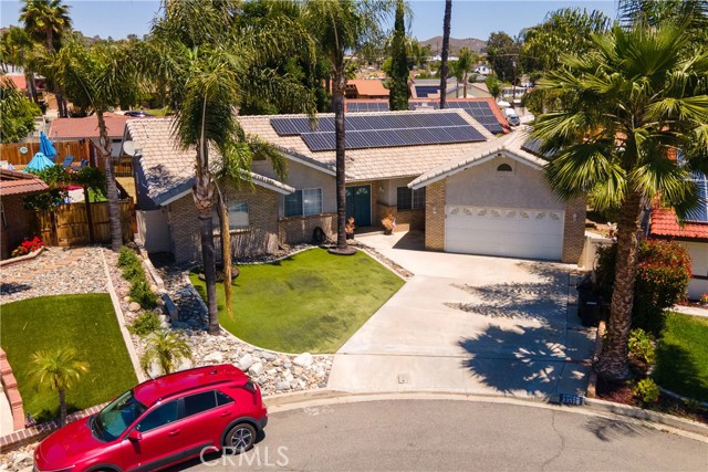 Welcome Home to Canyon Lake "A Little Bit of Paradise" Southern California's hidden gem offering Active Resort Style Living All Year Round for All ages. This charming single story home at the end of a cul de sac, is situated on a flat oversized lot with 2 car garage on the East side of the Lake. You are greeted into this home by a double door entry & open concept living space with family room & dining room with tile floors and a cozy fireplace as the focal point and is conveniently located just off the bright & airy entertainer's kitchen with stainless steel appliances, dark granite countertops, bar seating & an additional eating nook. A large slider leads to your stucco covered patio area offering indoor-outdoor living space all year round with a massive pool sized backyard with plenty of room to run & play. Back inside a wide hallway lined with linen storage cupboards leads you to a guest bathroom bathtub & stand up shower & two guest suites with crown molding. Along with a Private and roomy primary bedroom and luxurious bathroom await you with dual sinks in vanity & a garden tub perfect for soaking away your day. Canyon Lake is situated on a 400 acre lake with activities in the community for all ages. It is a Guarded and gated city offering resort style living year round with Boating & water sports of all kinds, Slalom/Jump Lagoons, Paddleboarding, Basketball, Pickleball, Tennis, Baseball Diamonds, Equestrian facility, Lake is Stocked with Catfish & Bass for Fishing, Marina, Sailing, Pontooning, Golf Course and Country Club Bar & Grill, Hiking, Birdwatching, Biking, Newly renovated lakefront Happy Camp/RV park, Indoor/Outdoor concerts at the amphitheater or Sunset Lounge at the Lodge overlooking the Jr Olympic heated saltwater pool. There are Holiday activities year round for kids and adults, Parades for all occasions, Dozens of Parks & Beaches, Senior Center, Holiday boutiques, Bingo, Car Shows, Clubs, Community Garden, Canyon Lake Fire Department, Amazing 4th of July Fireworks over the Lake and so much more for you to explore. Canyon Lake has three gates for entrance/exit & is conveniently located between the 15 & 215 Freeways which makes for an easy commute to Nearby beaches, airports Ontario & San Diego. In the winter, Mountain High,Big Bear and Mammoth Lakes for skiing & snowboarding season. Come and see what the Lake Life has instore for you! You can learn more & a 360 tour of the amenities on the Canyon Lake Property Owners website.